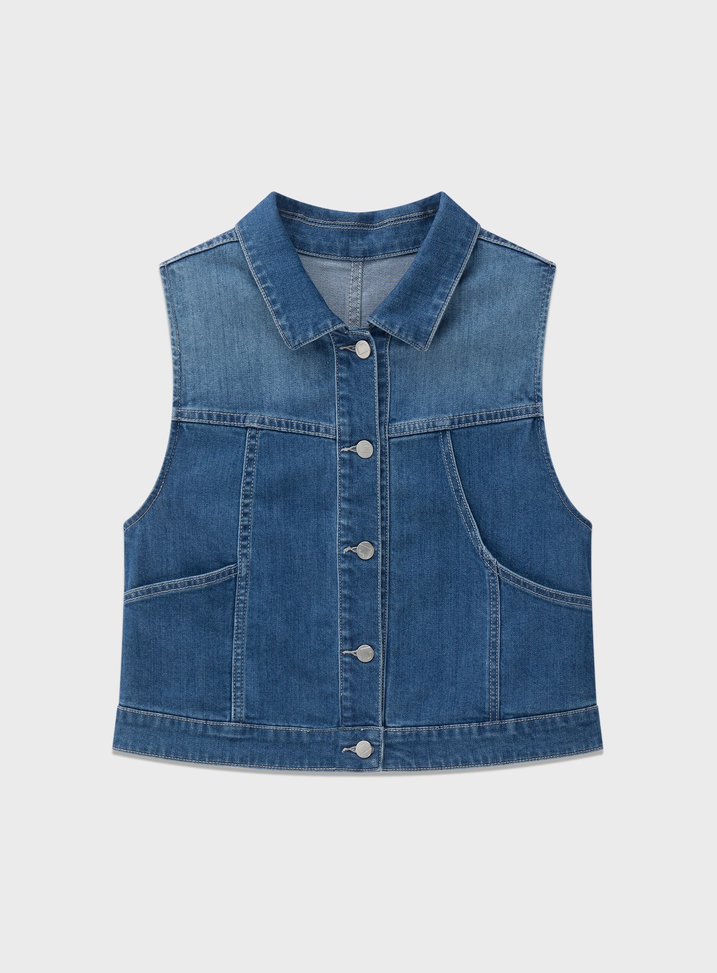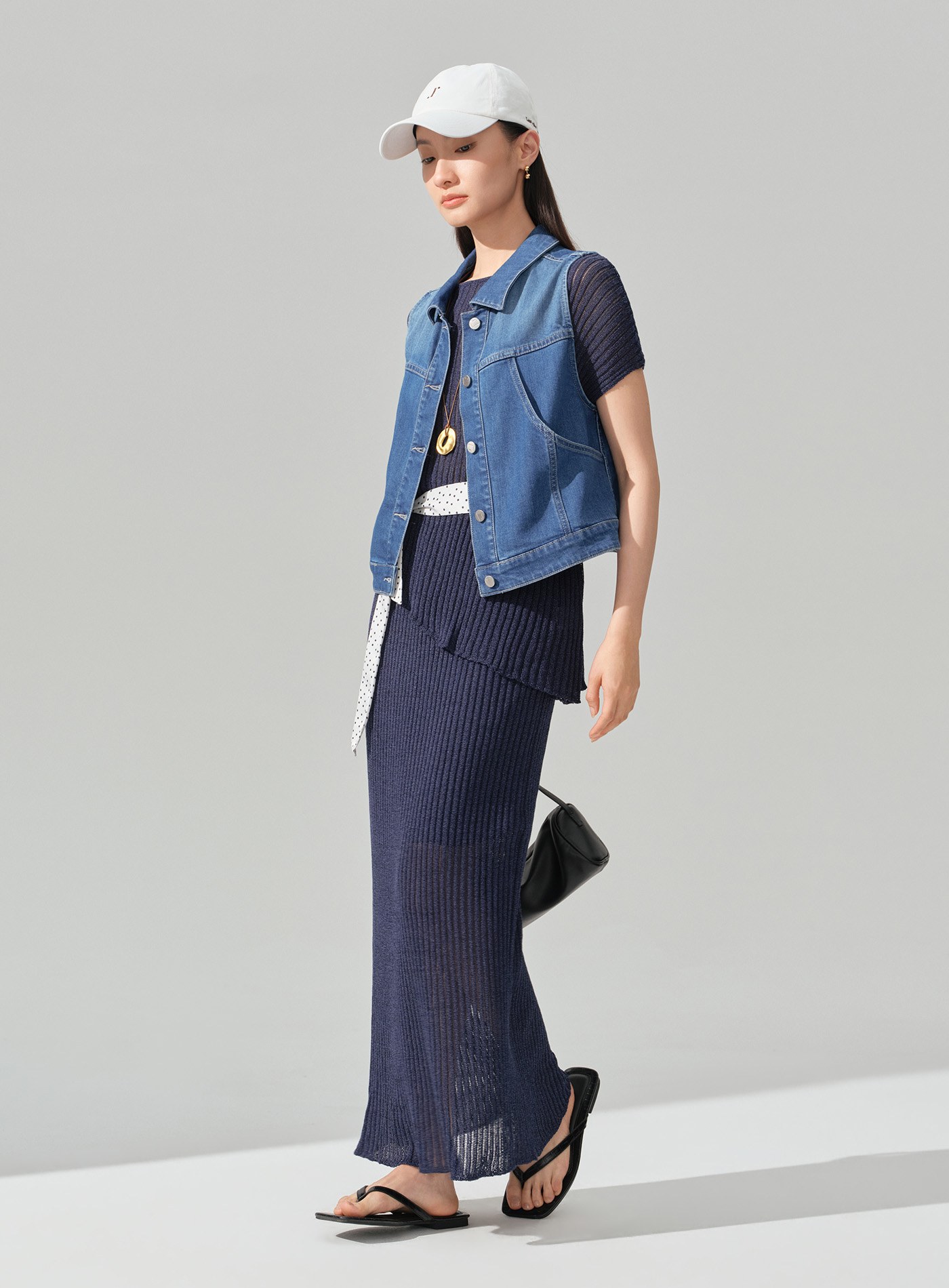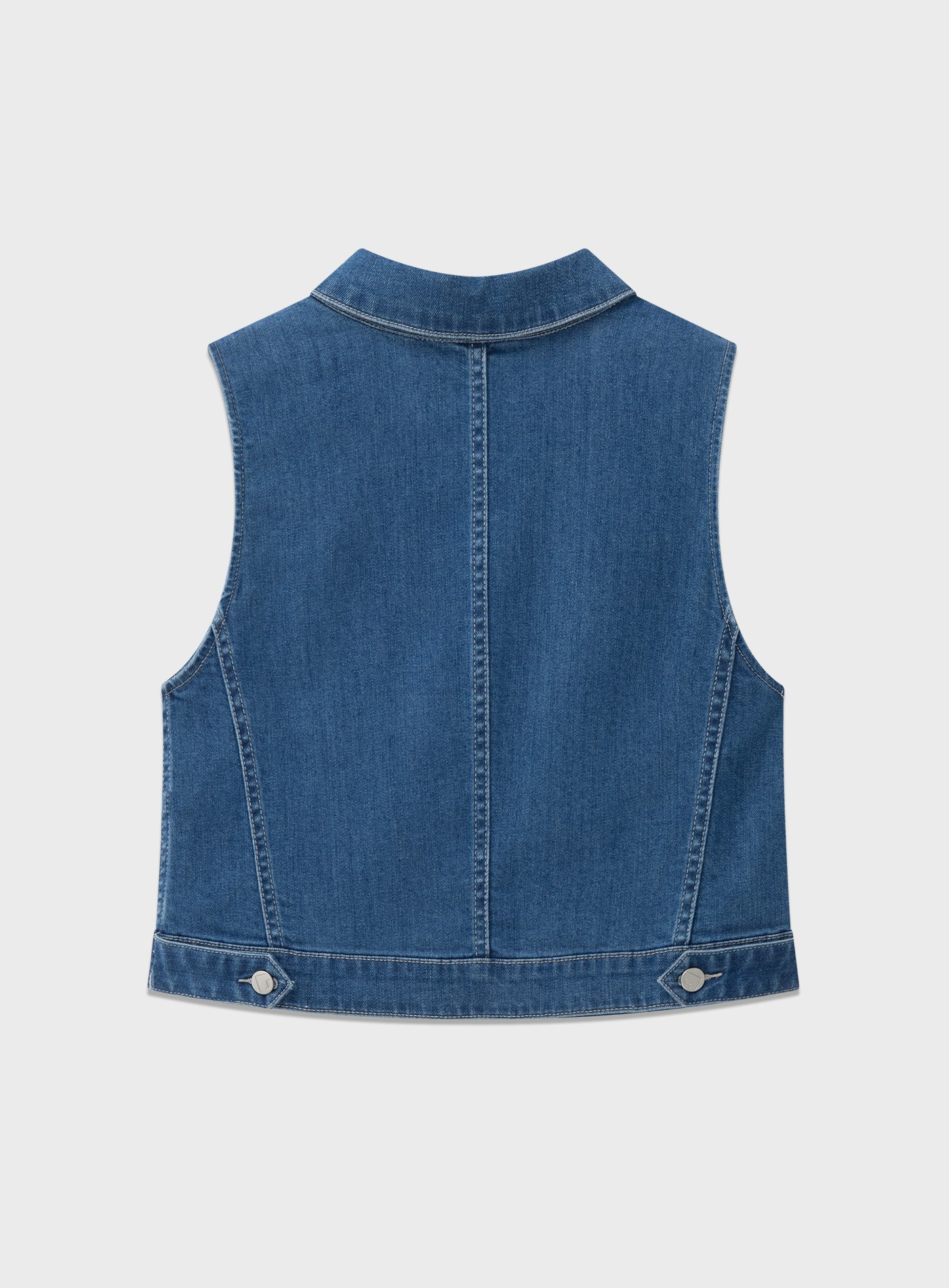 - 以經典牛仔馬甲版型為基礎,透過細節重組與材質升級,呈現俐落幹練卻不厚重的現代丹寧單品