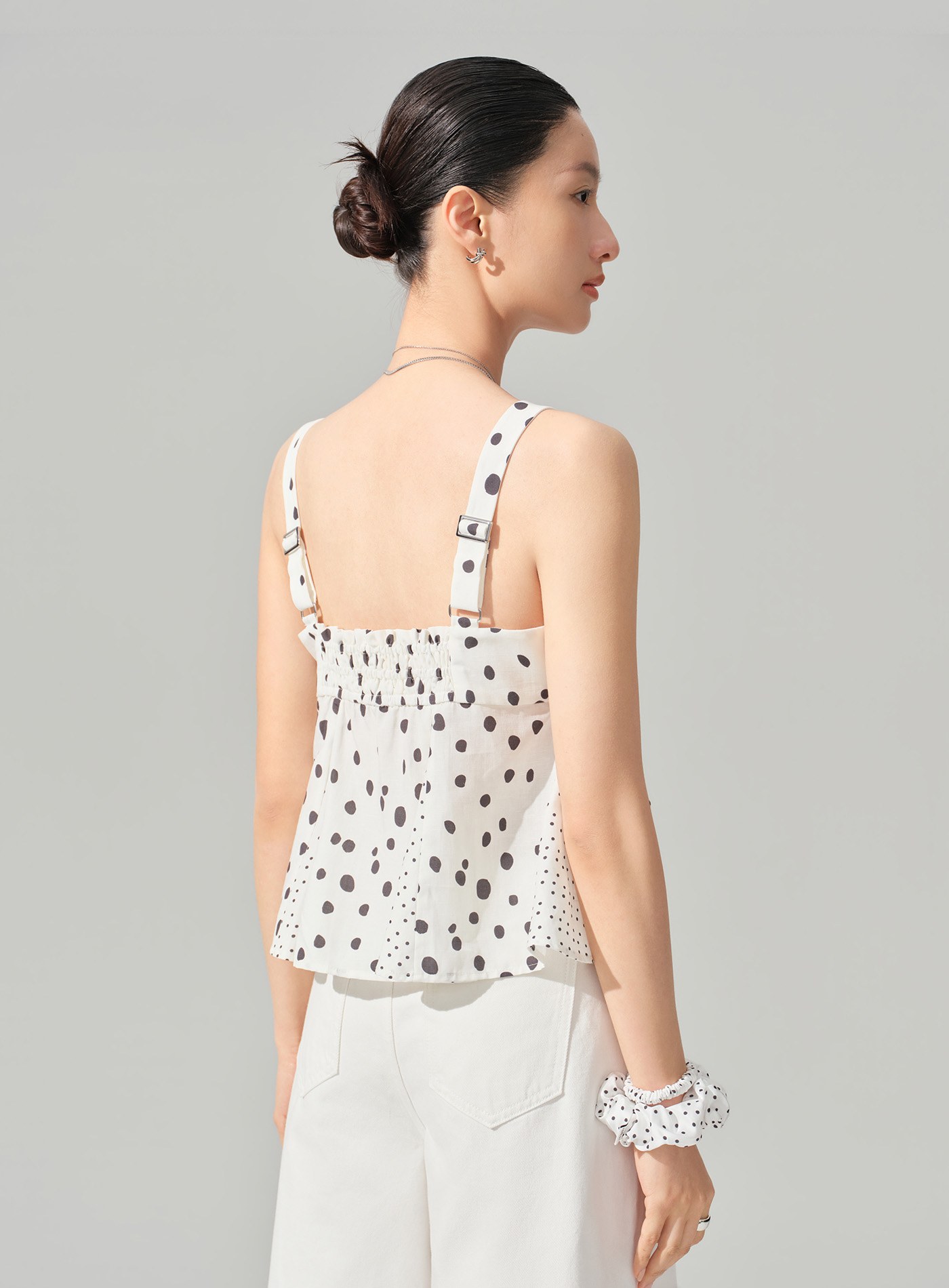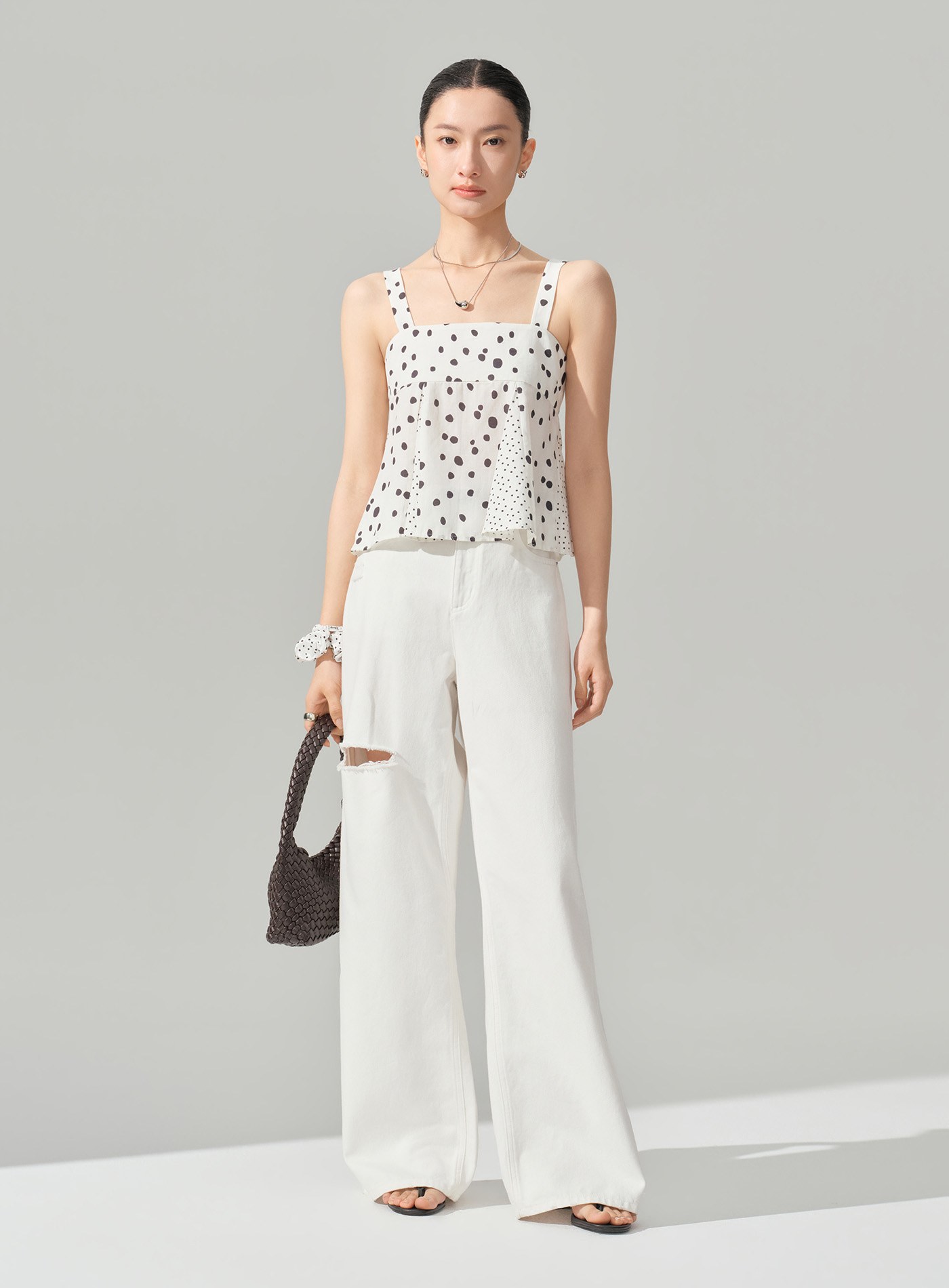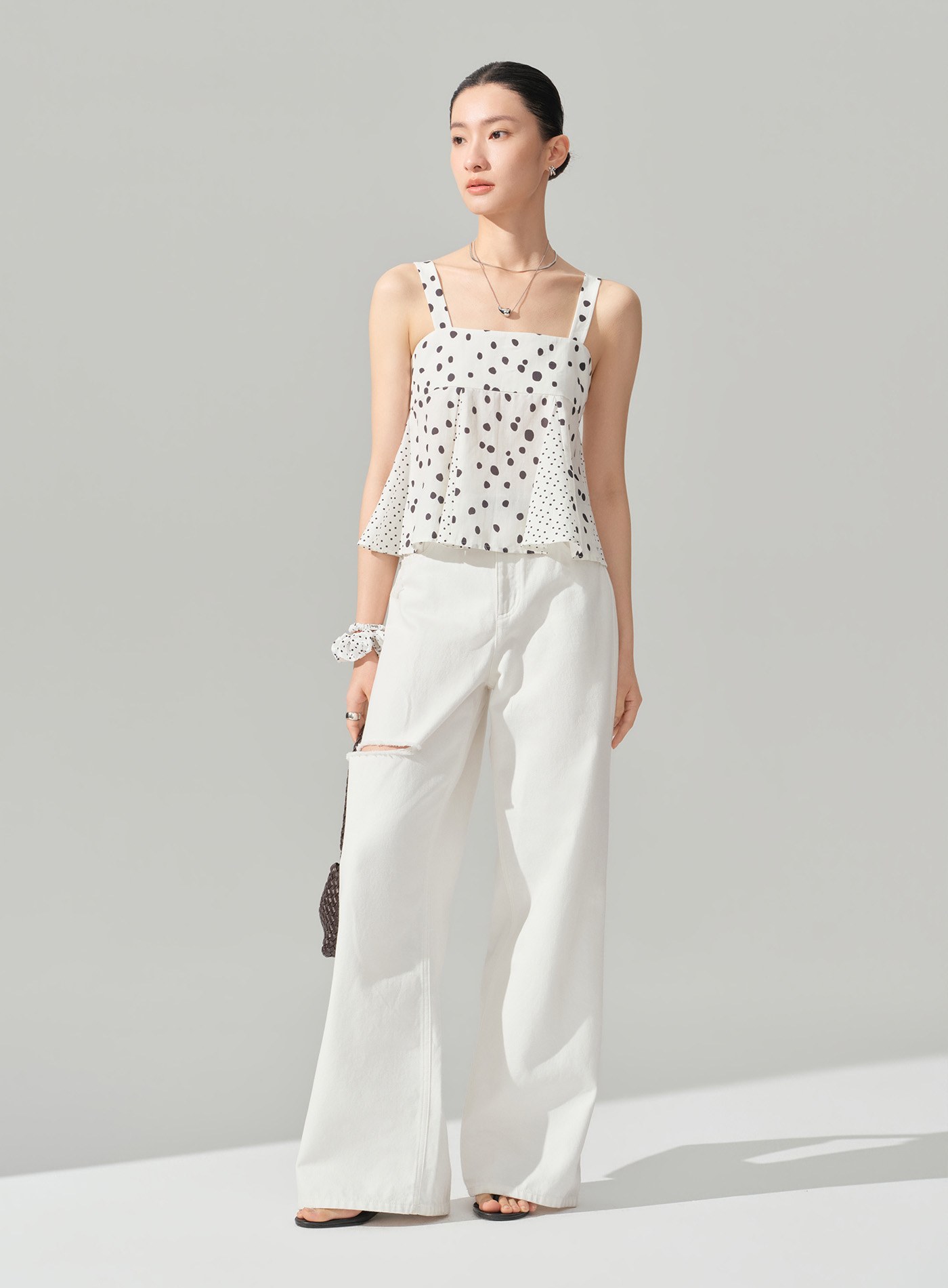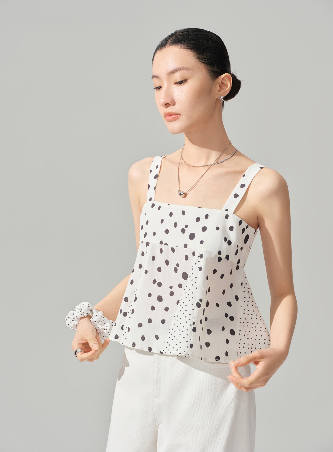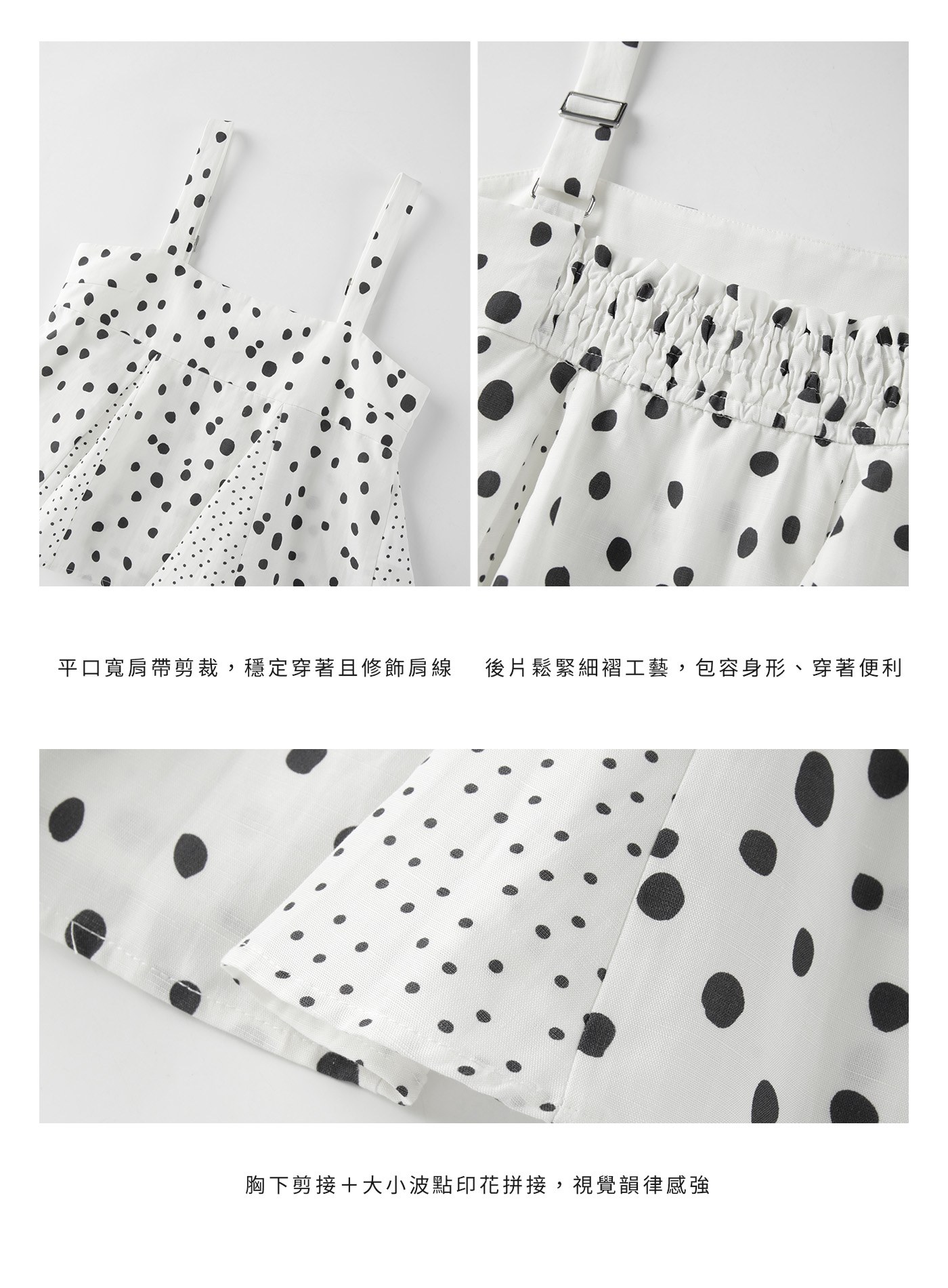 - 由胸下剪接展開,大波點搭配拼接的小波點,形成立體而富動感的視覺韻律