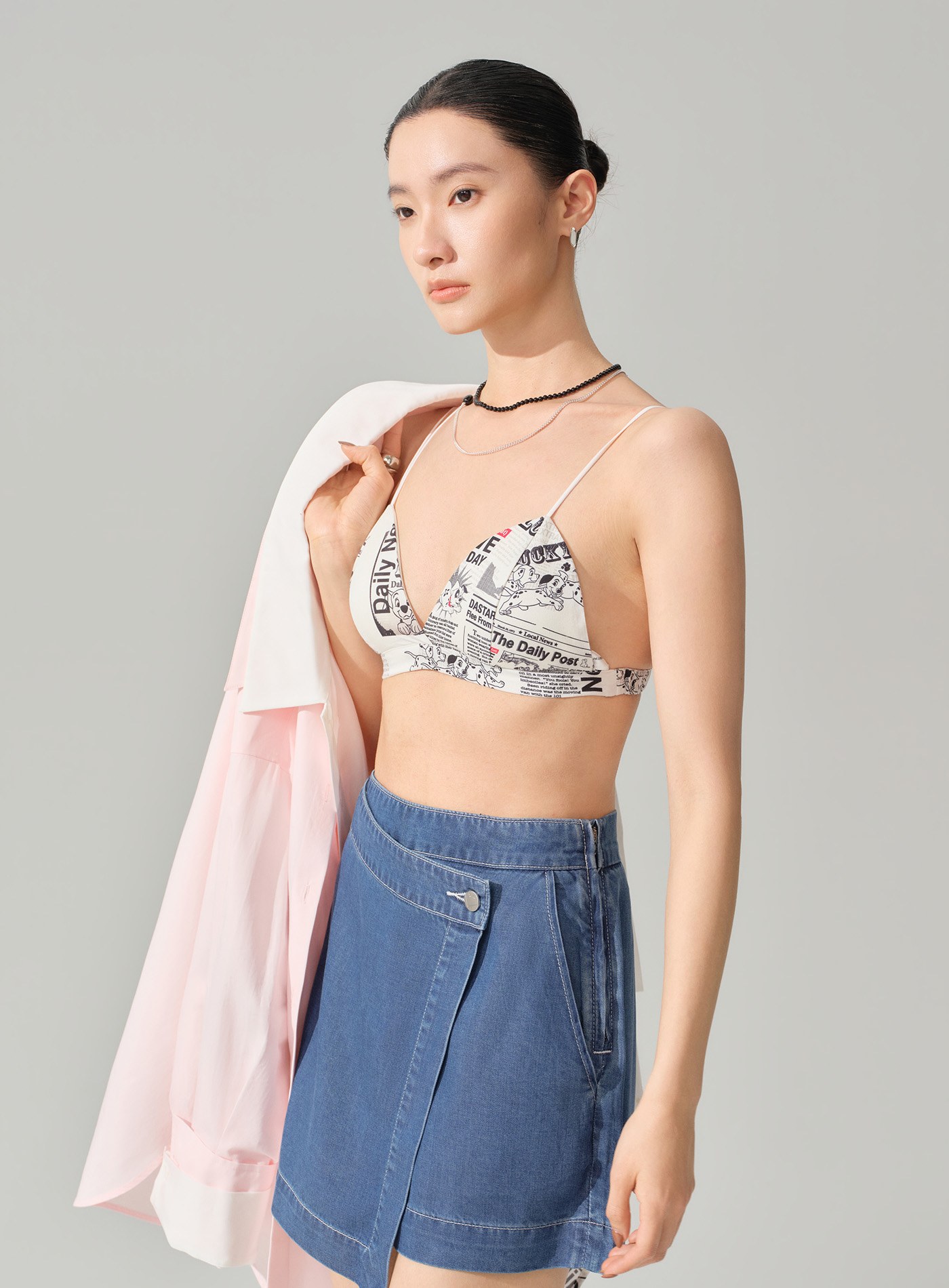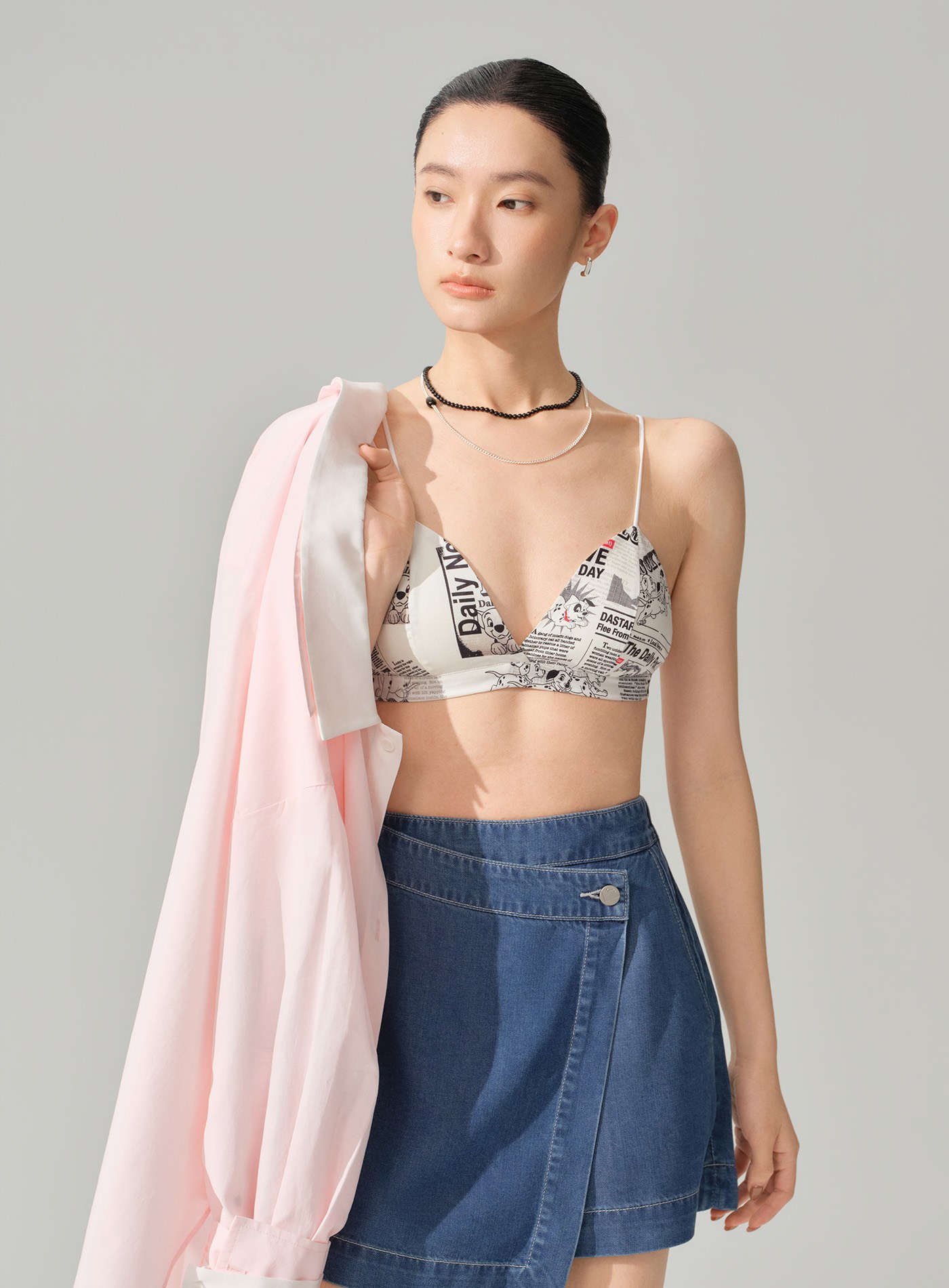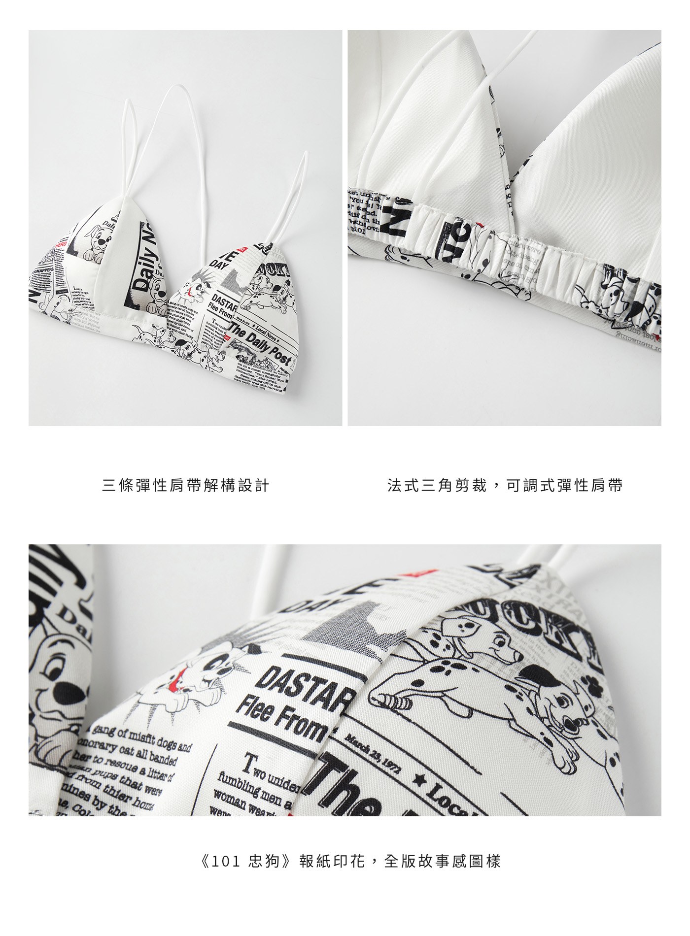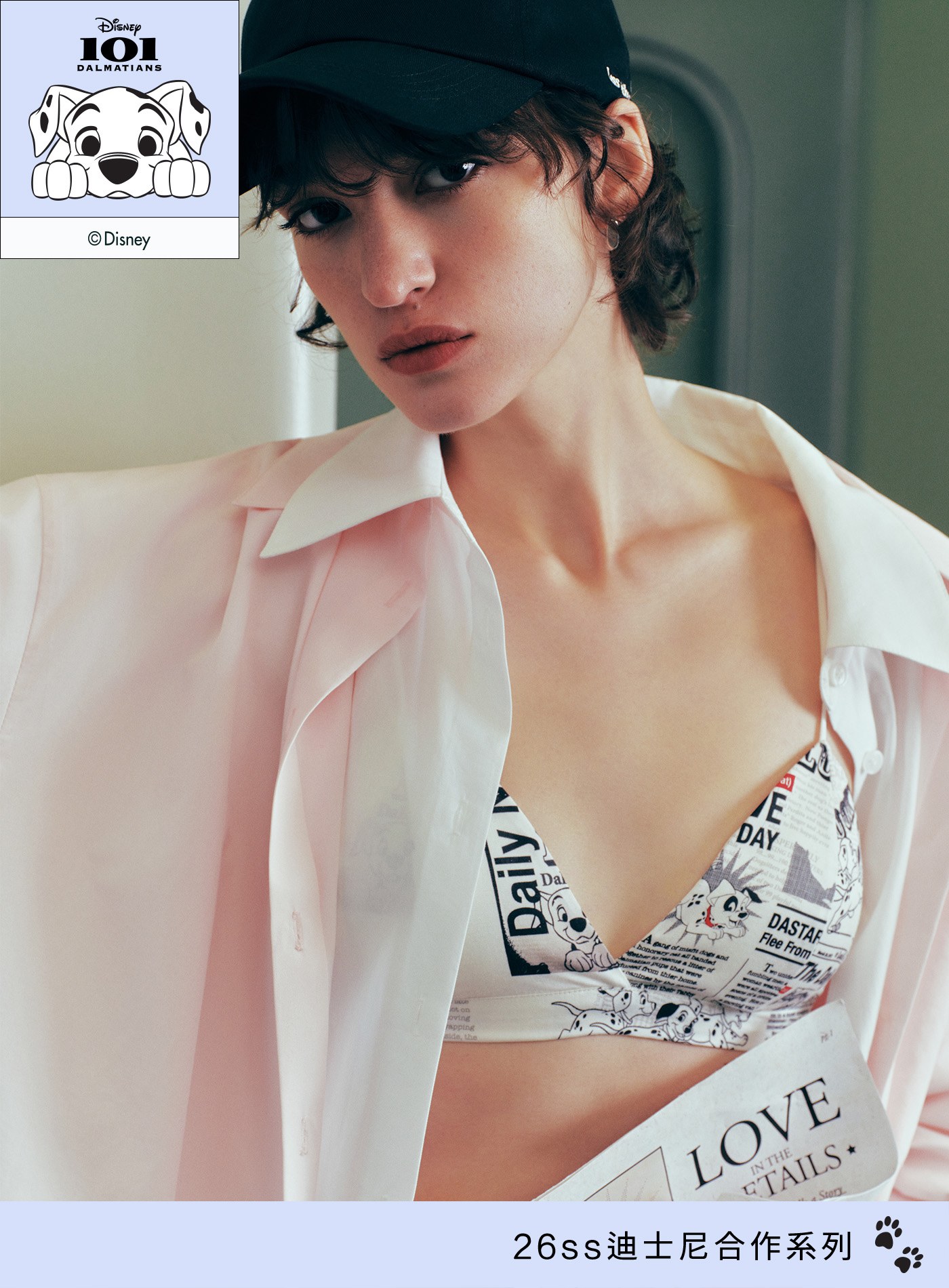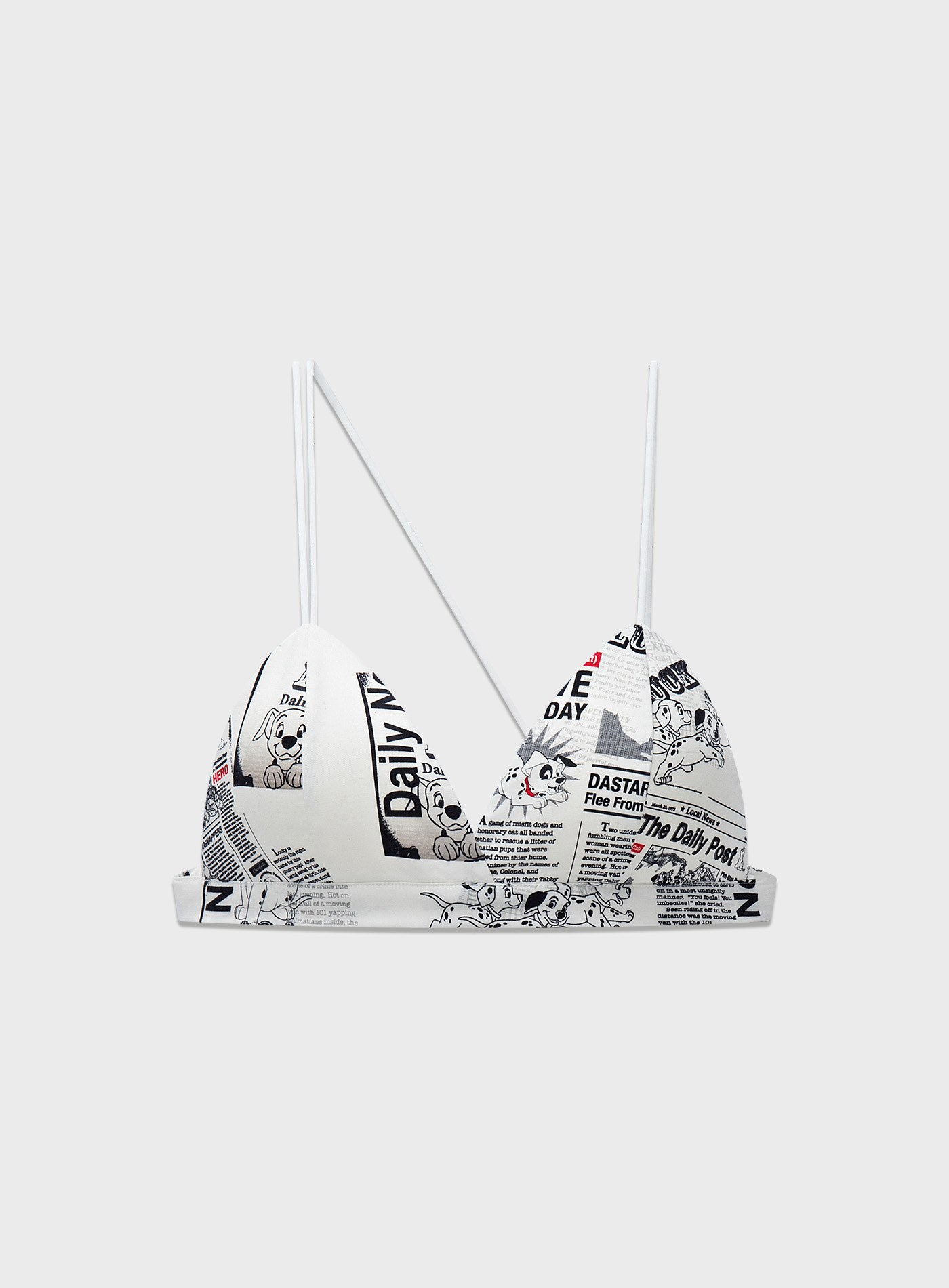 - 滿版 101 小狗報紙印花延續系列敘事主題,將童趣與藝術感注入貼身層次