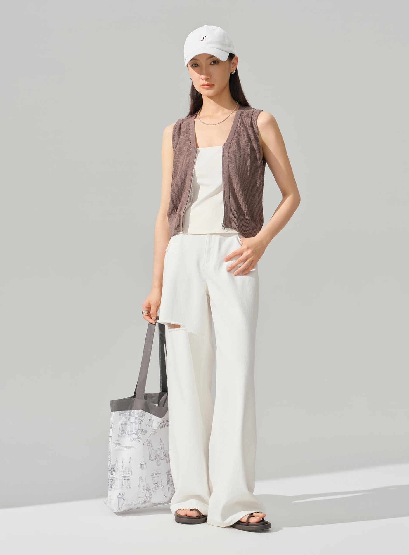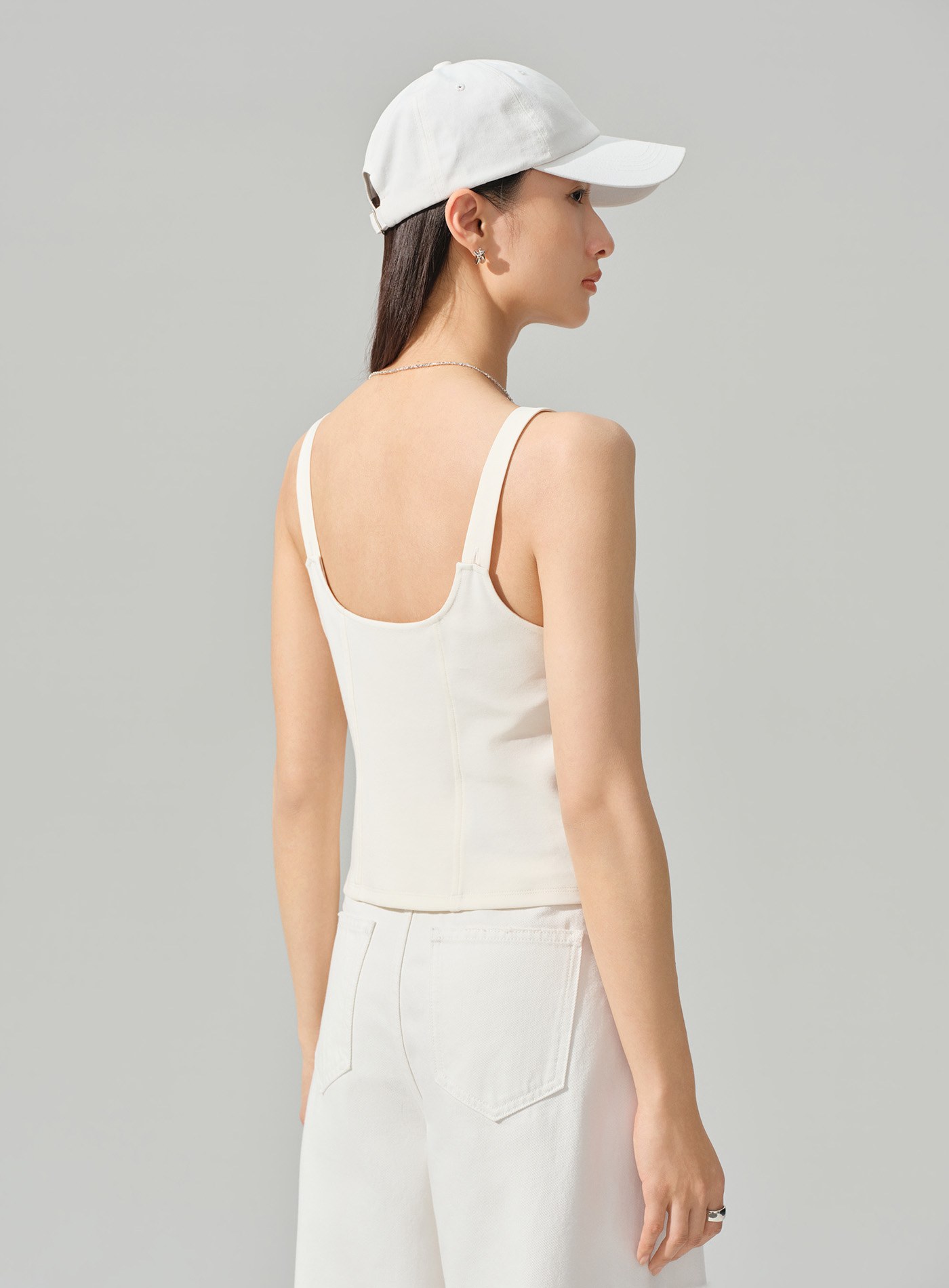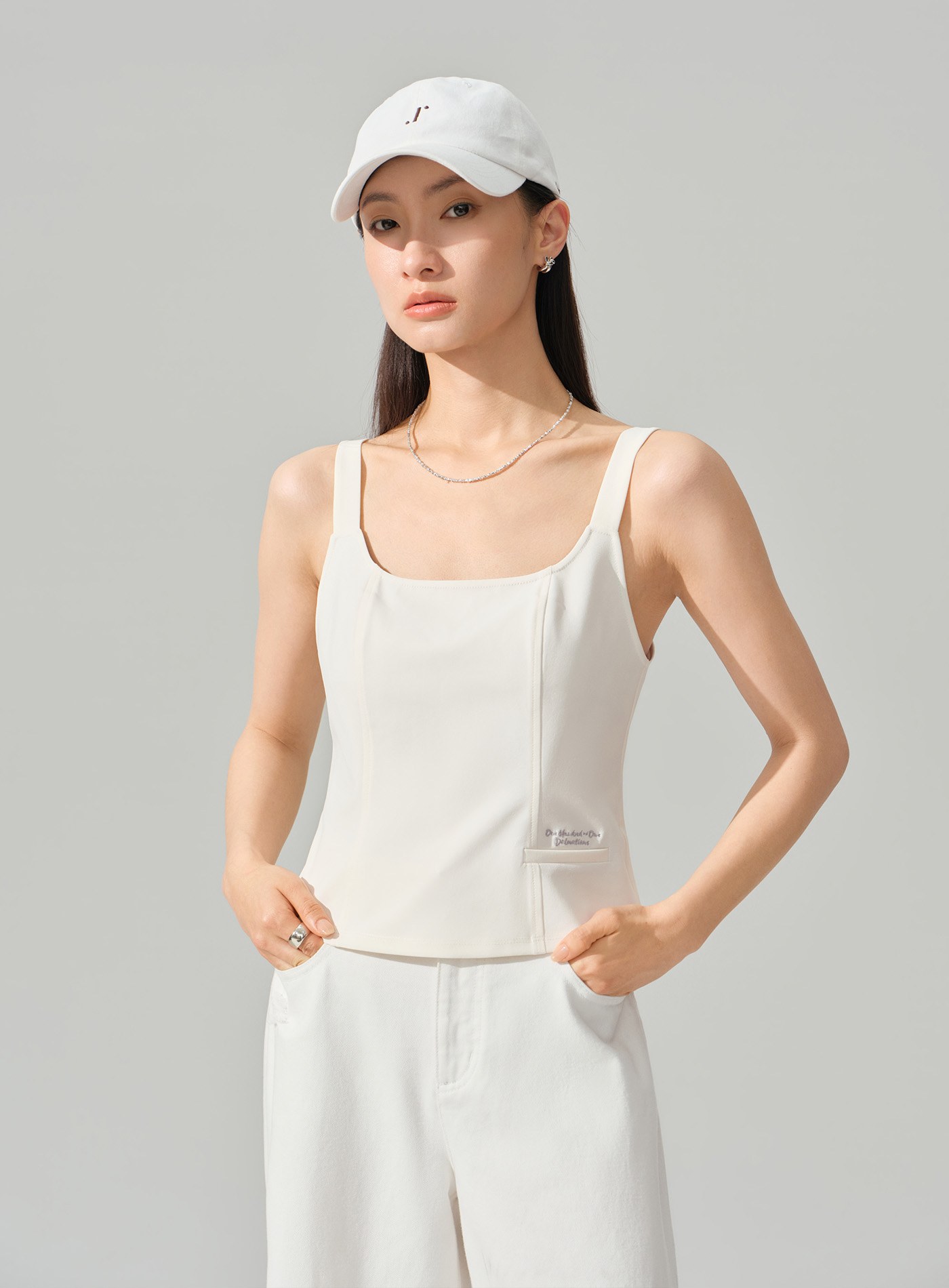 - 正反面採用異材質拼接設計,提升包覆感與穿著舒適度,使簡約上衣在細節中展現層次與實穿性