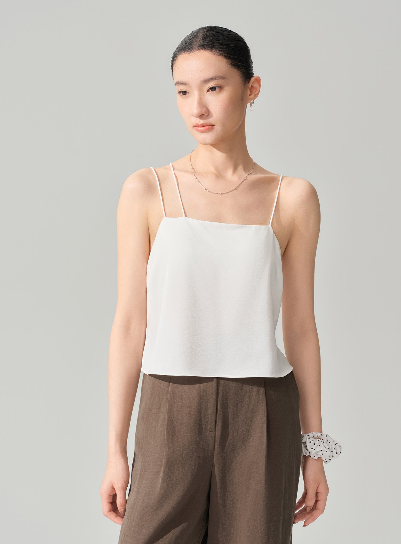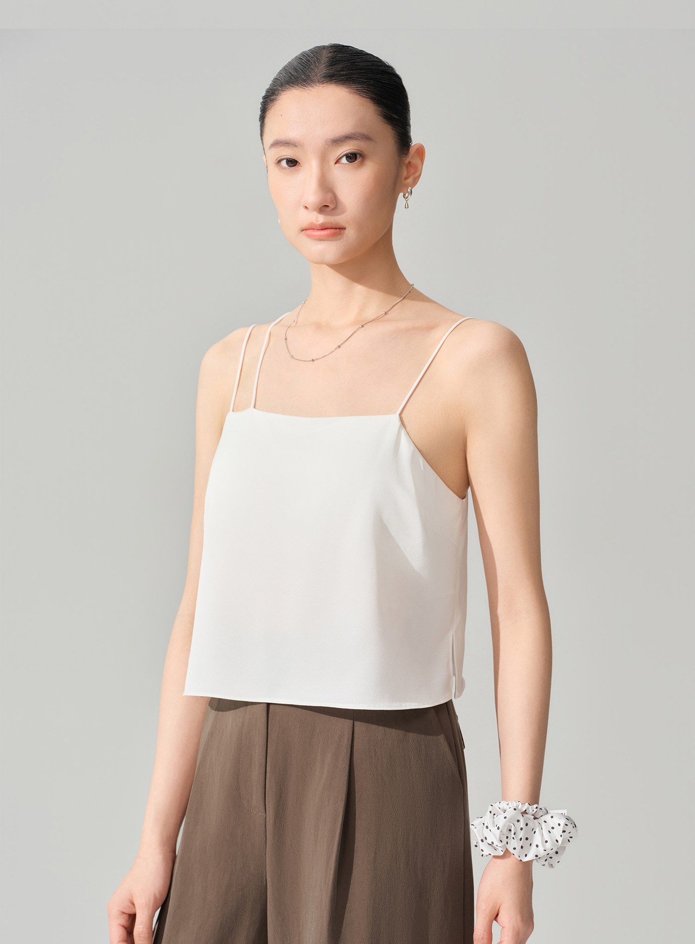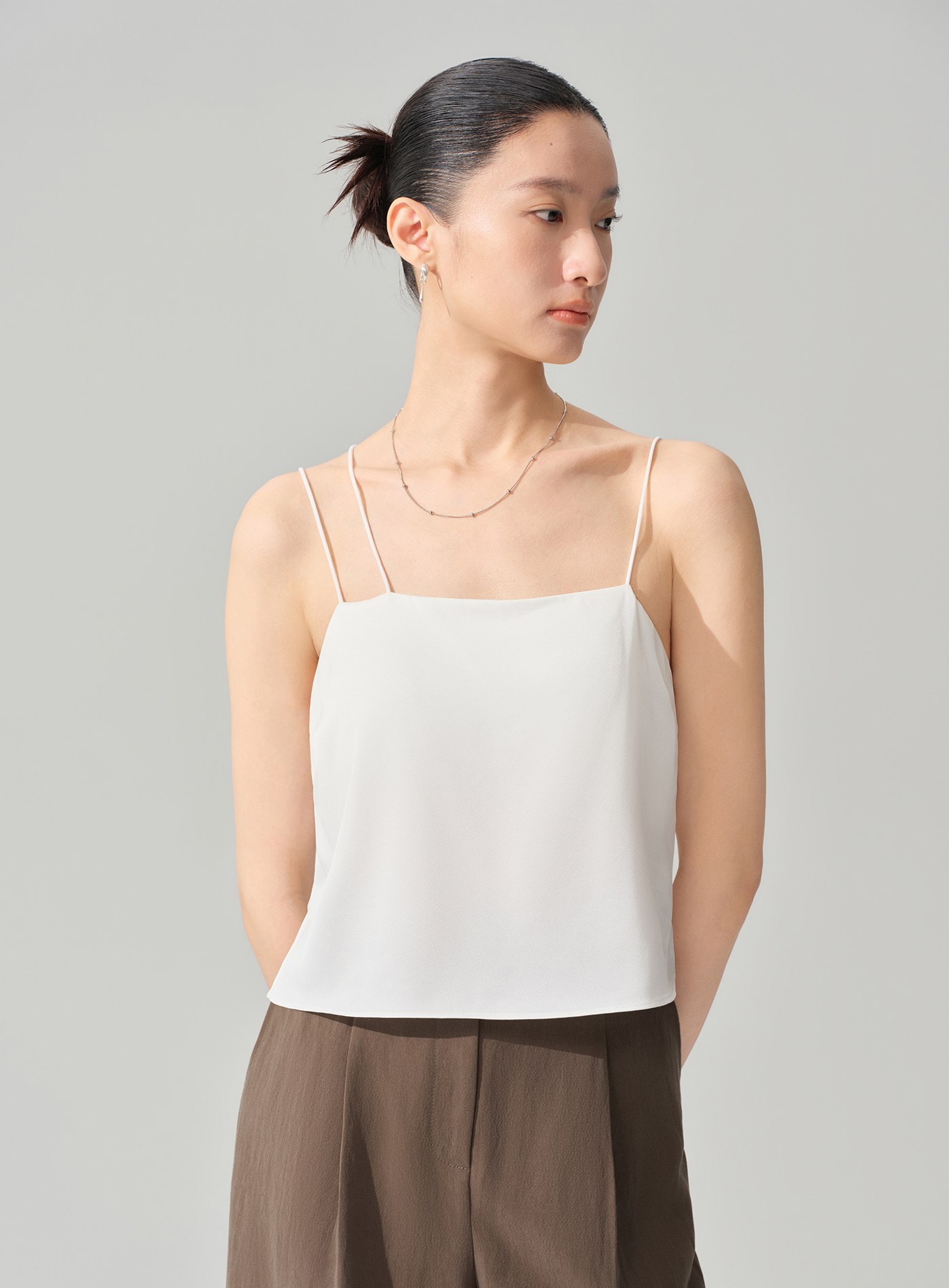 - 平直領口設計線條俐落乾淨,自然展現鎖骨與肩頸比例