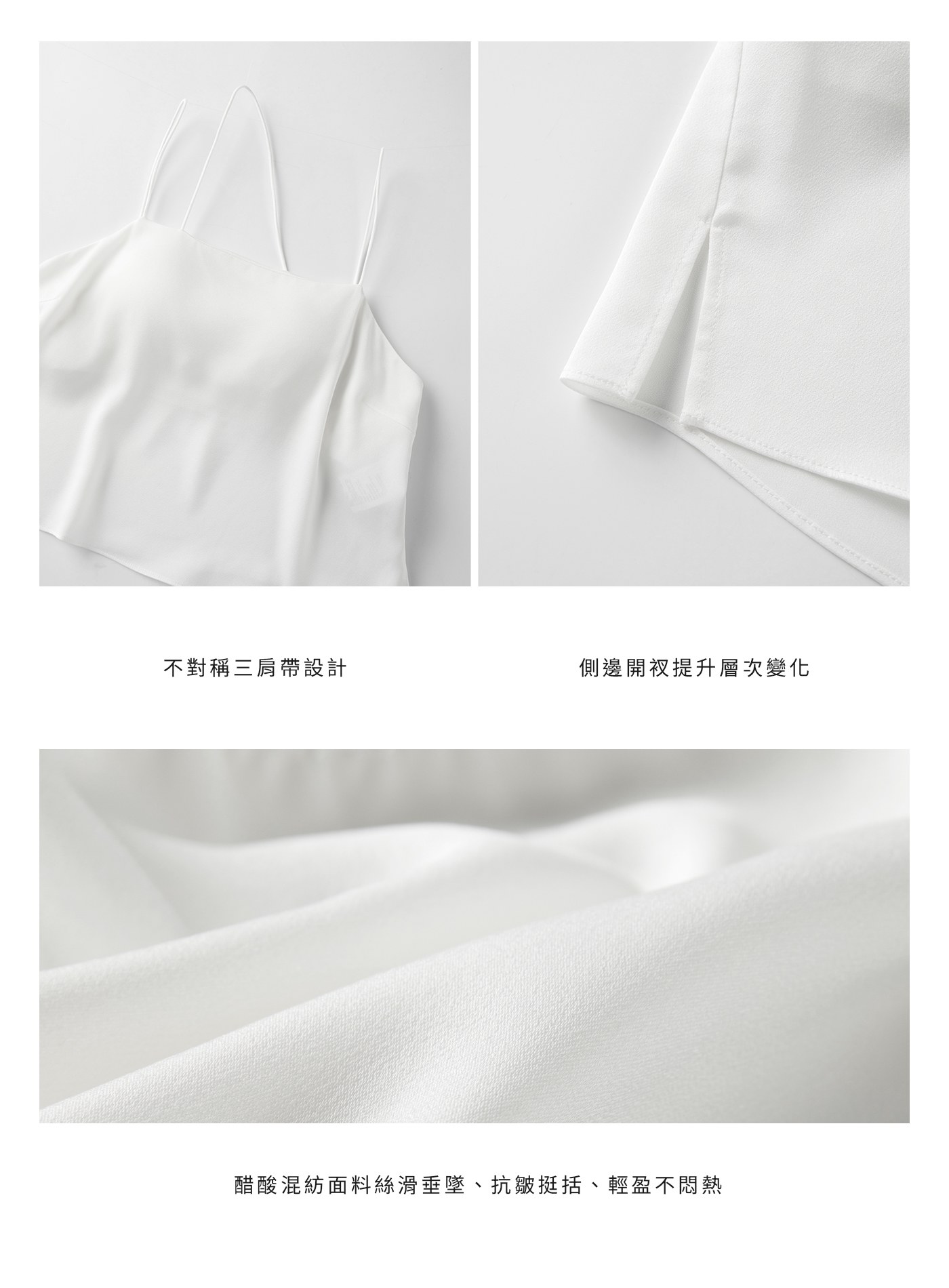 - 不對稱三條肩帶結構打破單一配置,帶出解構感與現代風格