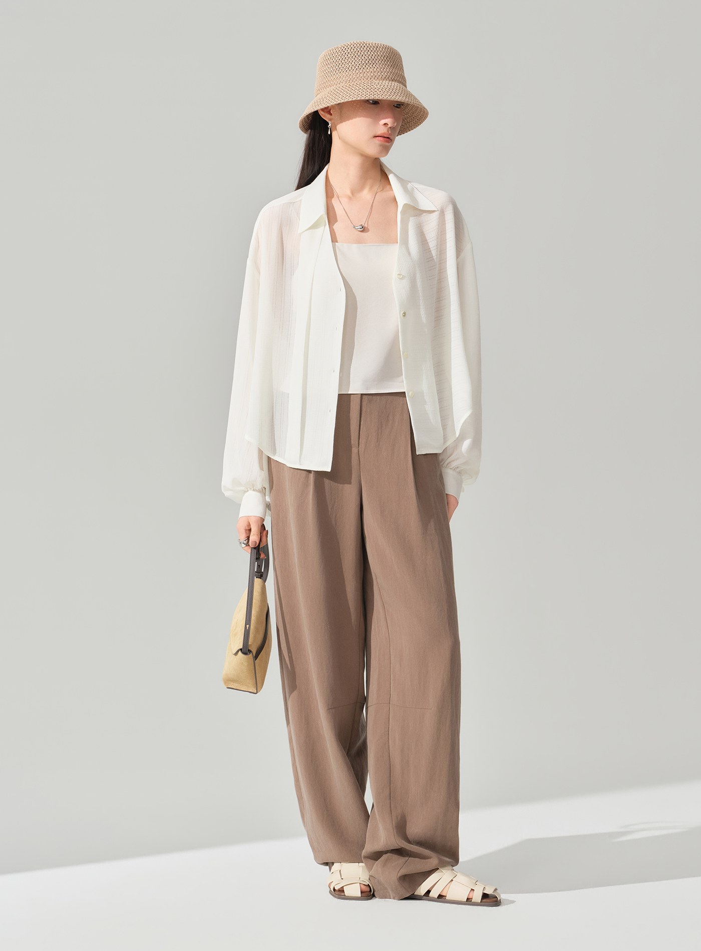- 採用醋酸纖維混紡面料,觸感絲滑細緻,垂墜有度、不易起皺,穿著清爽舒適