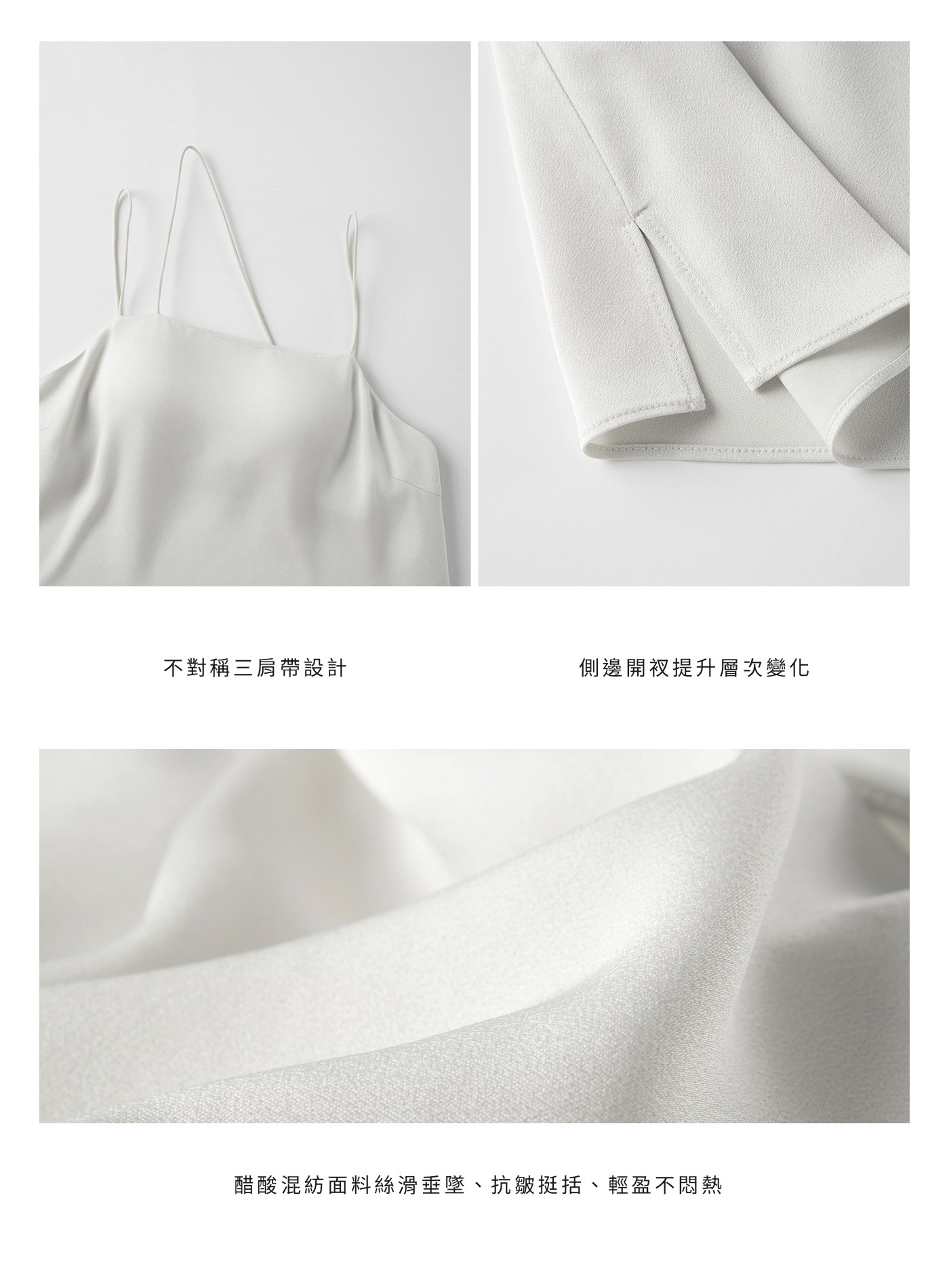- 不對稱三條肩帶結構打破單一配置,帶出解構感與現代風格
