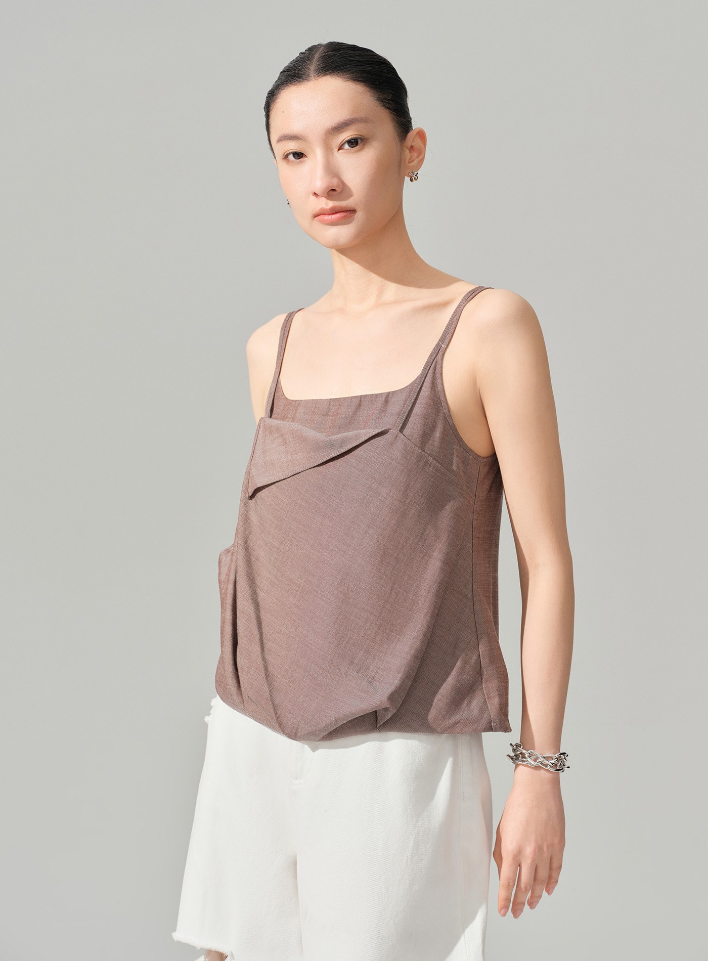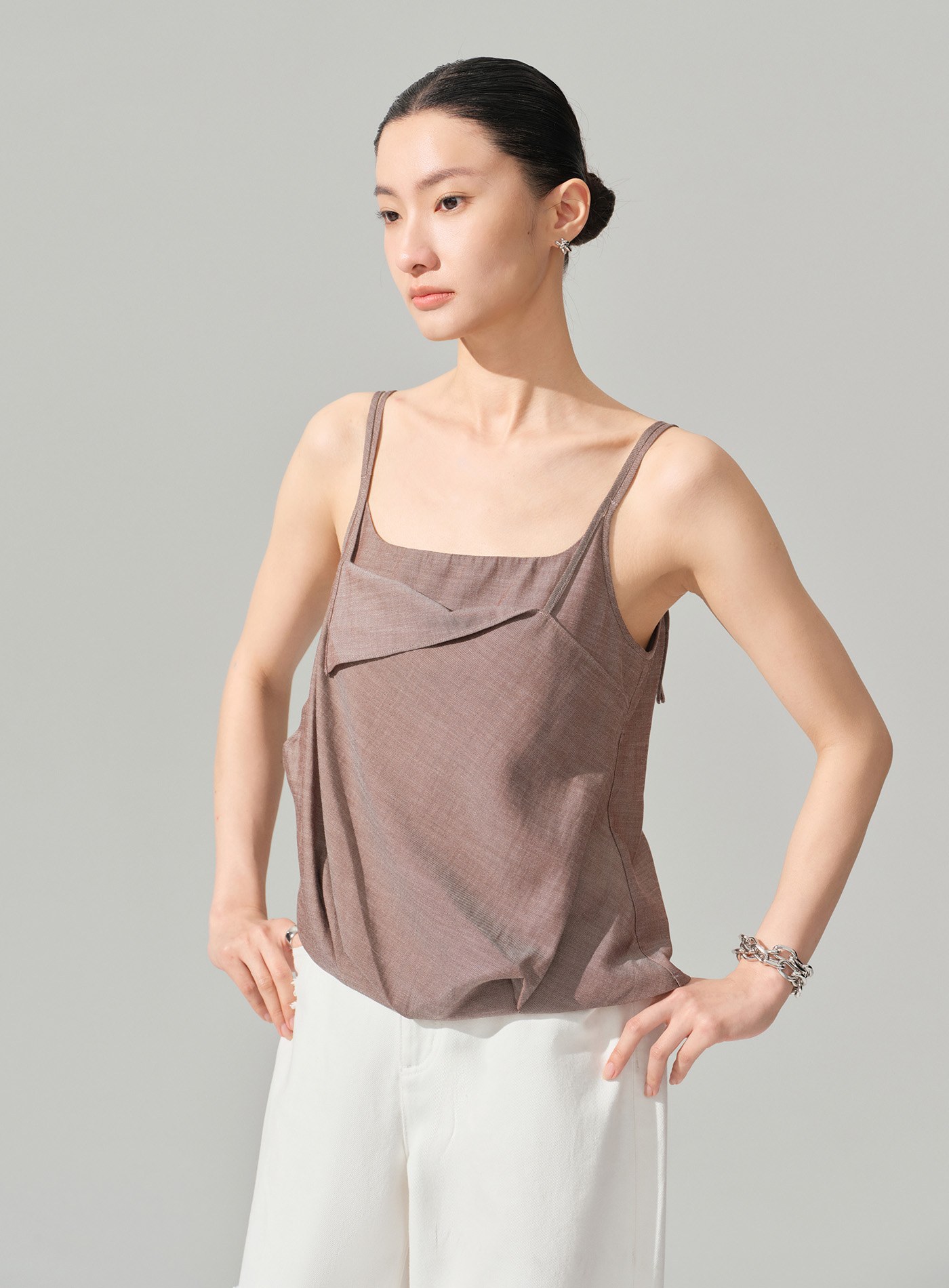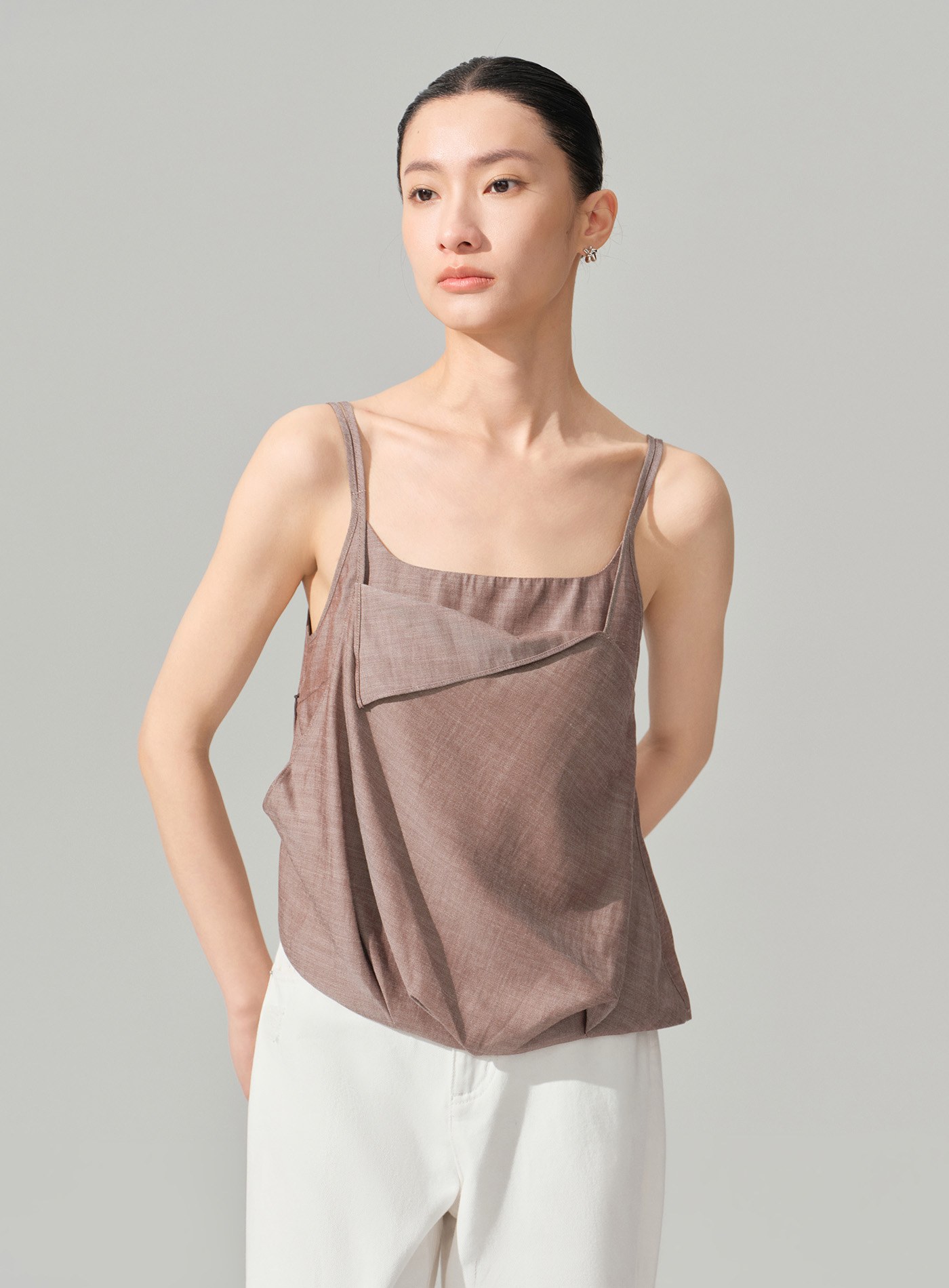 - 斜向翻折前片使吊帶更精緻,適配通勤與休閒多種場景