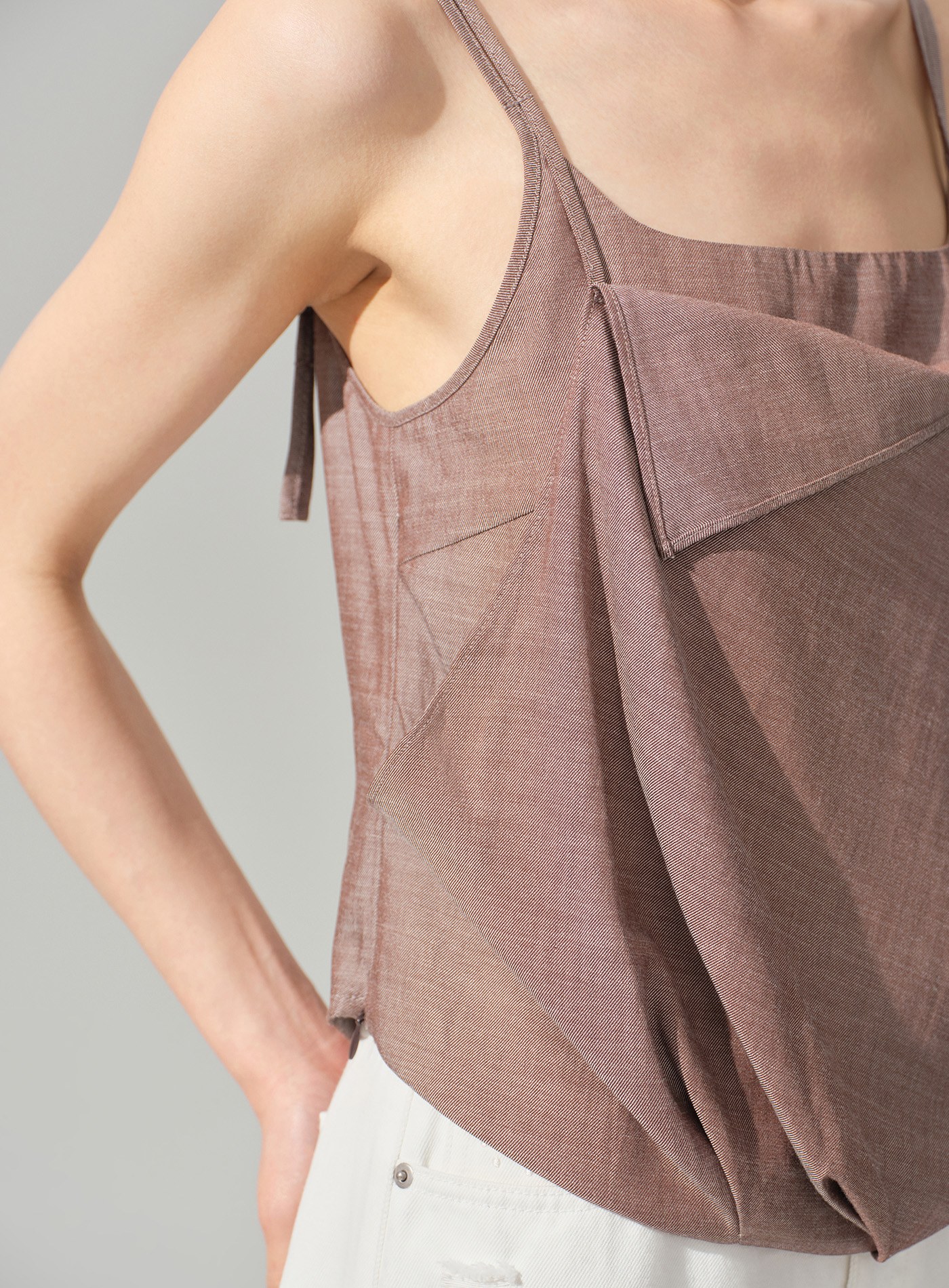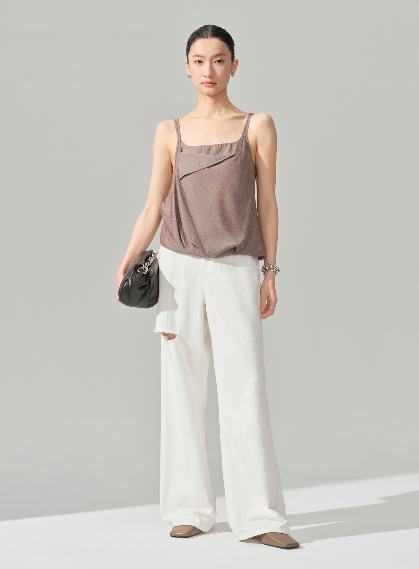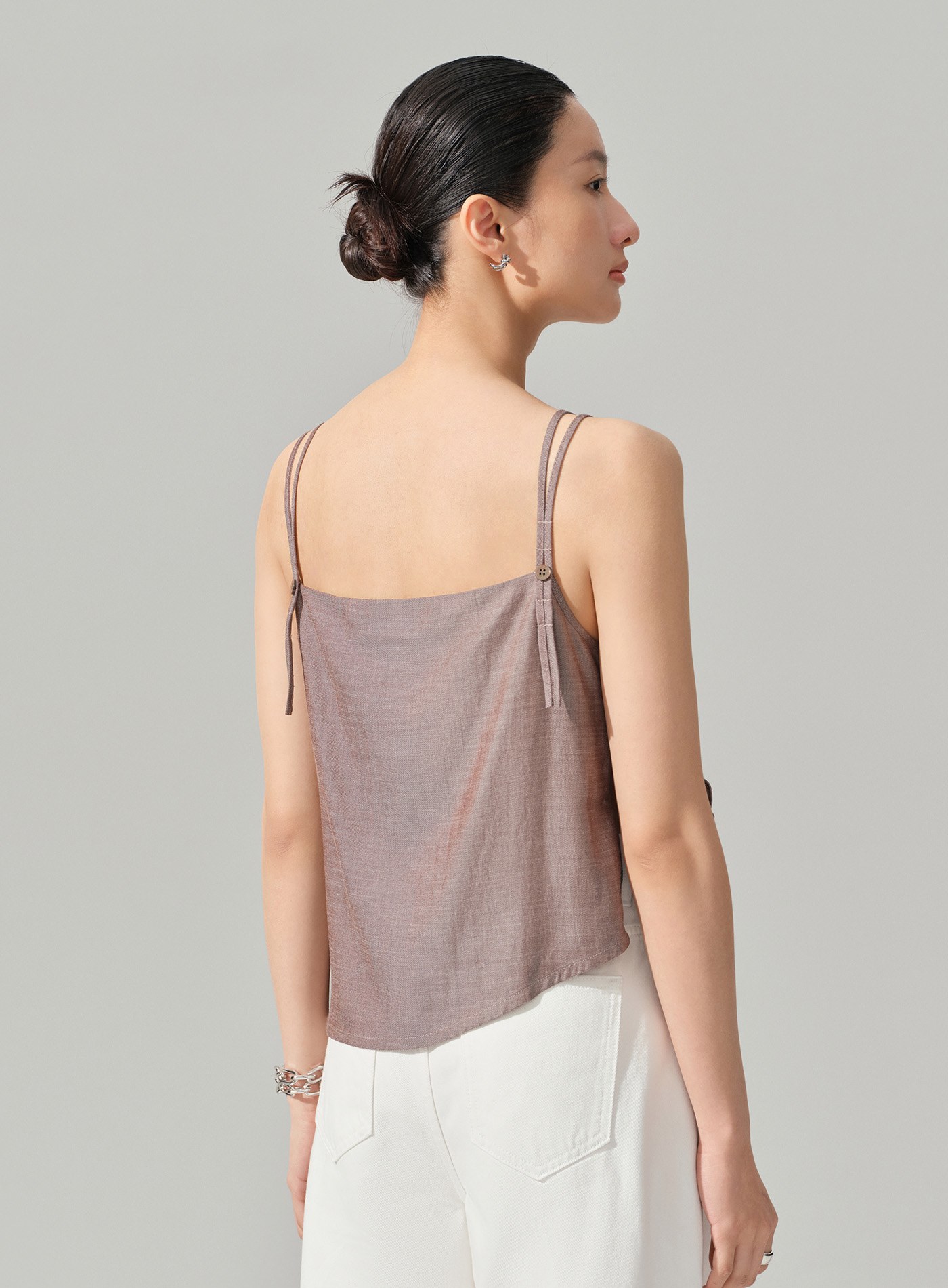 - 斜向翻折前片使吊帶更精緻,適配通勤與休閒多種場景