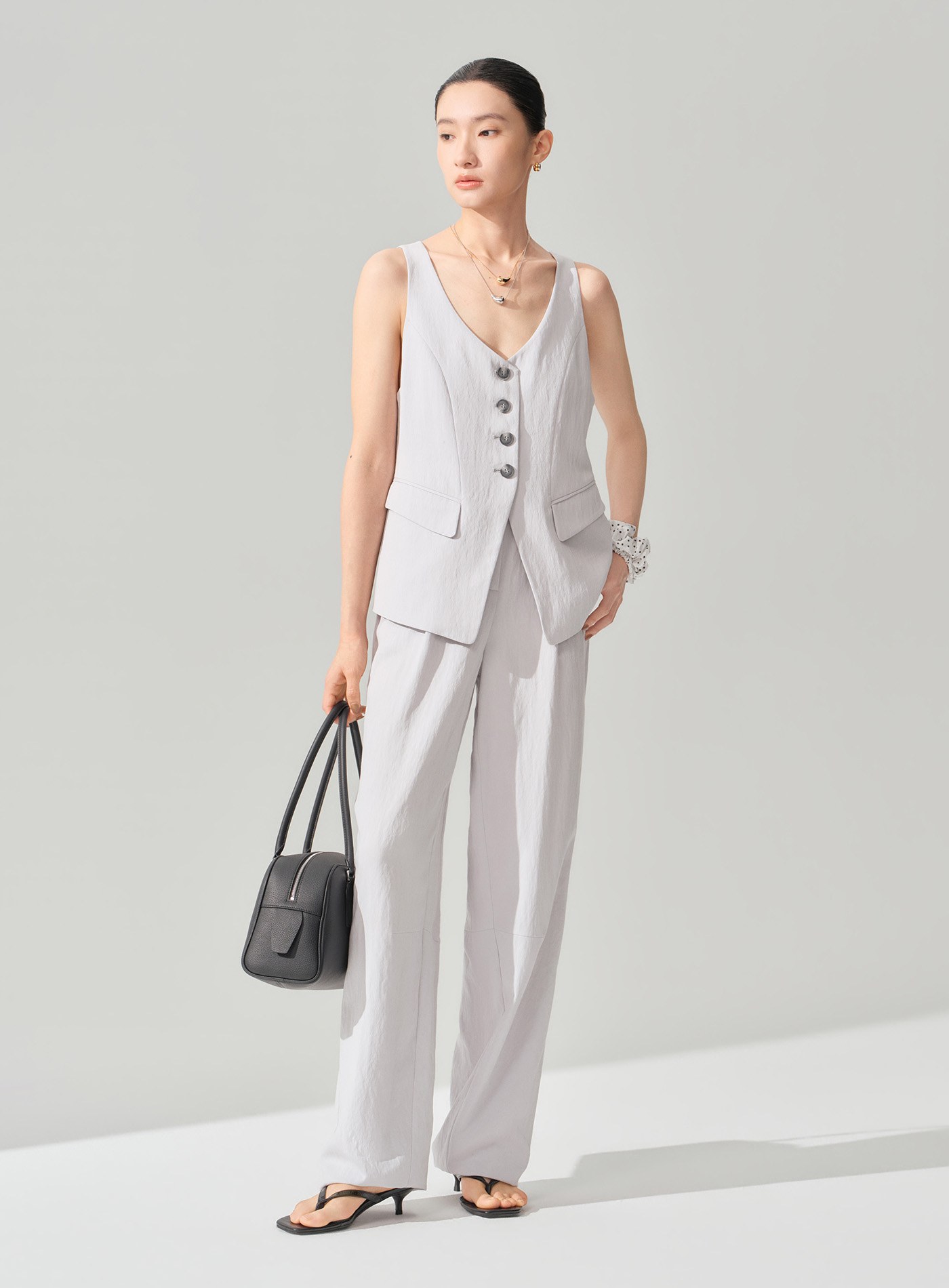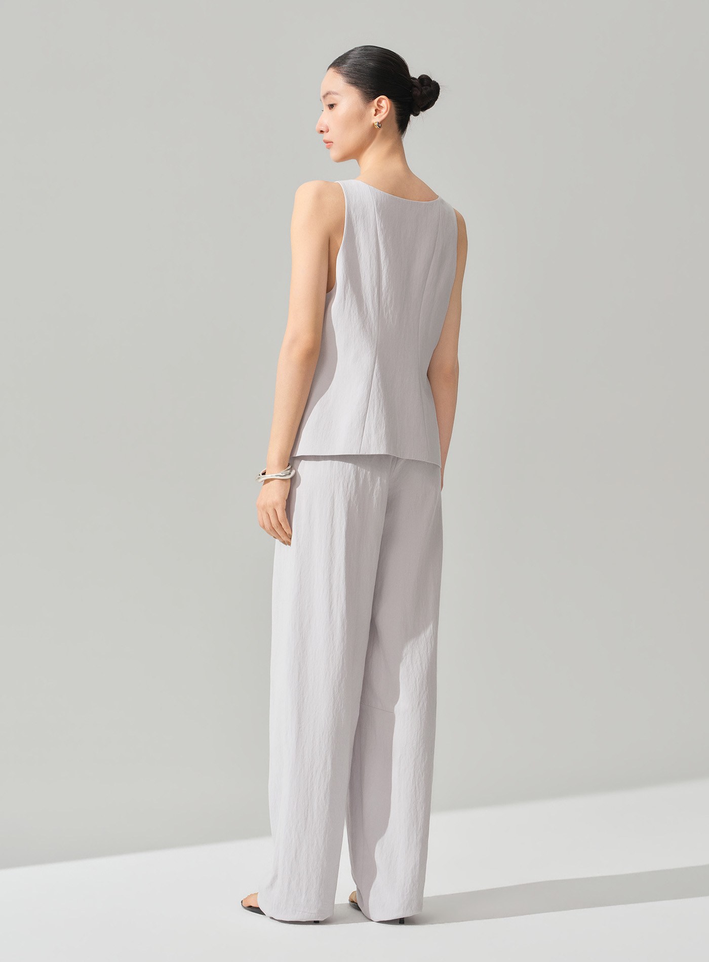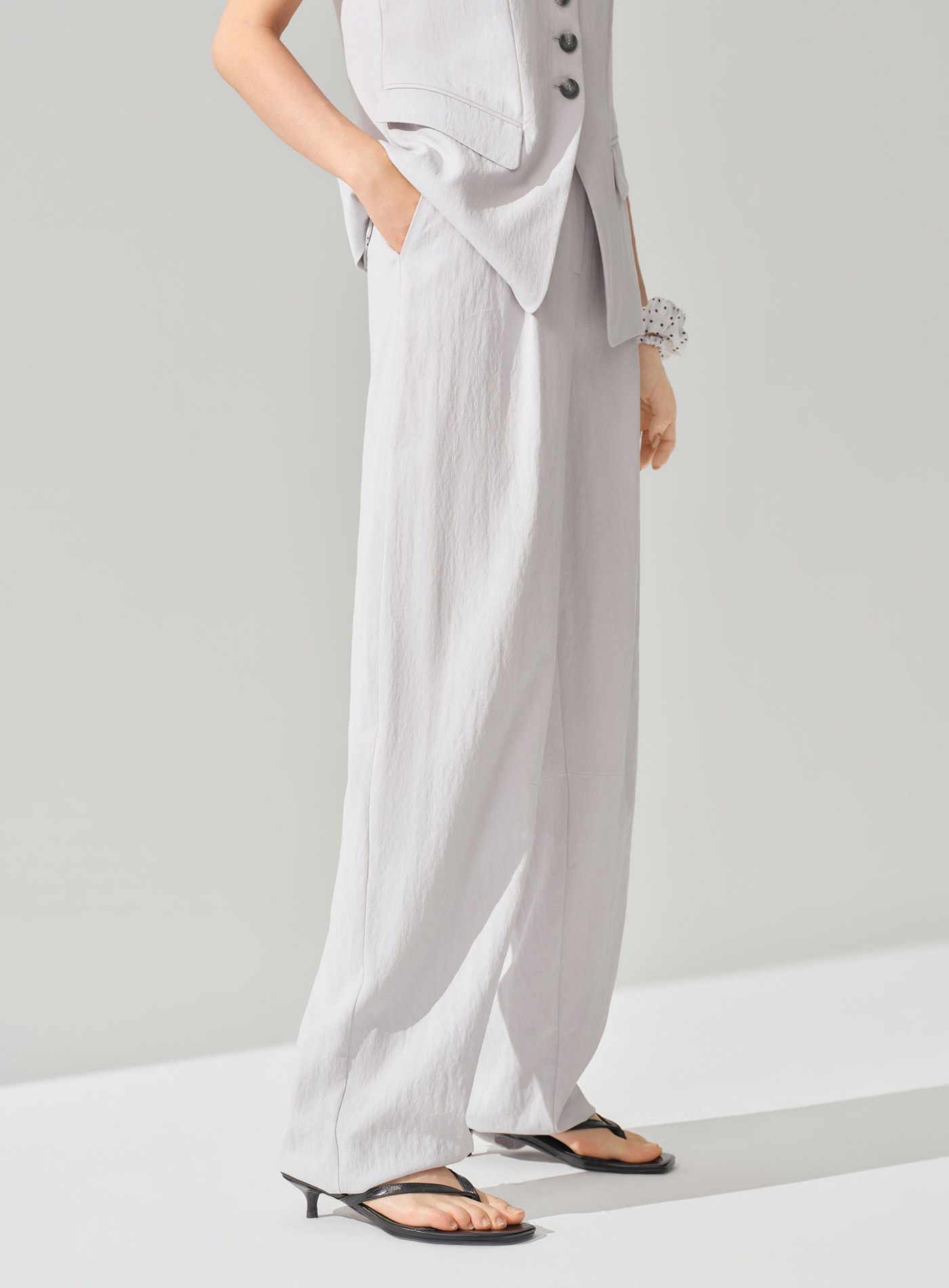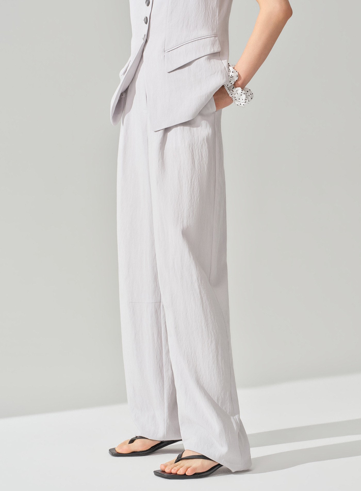 - 前褶結構在修飾腿型的同時保留舒適活動量,使整體穿著更顯從容有型