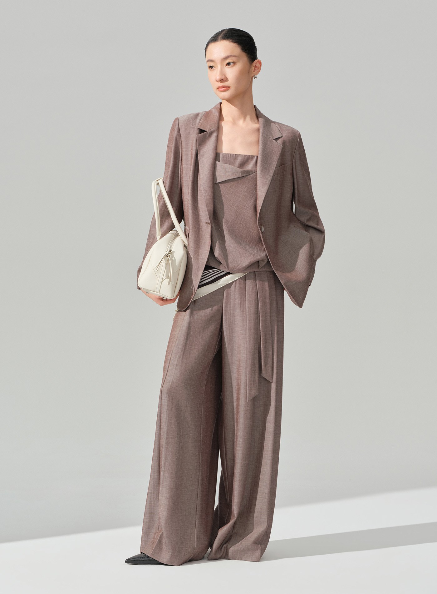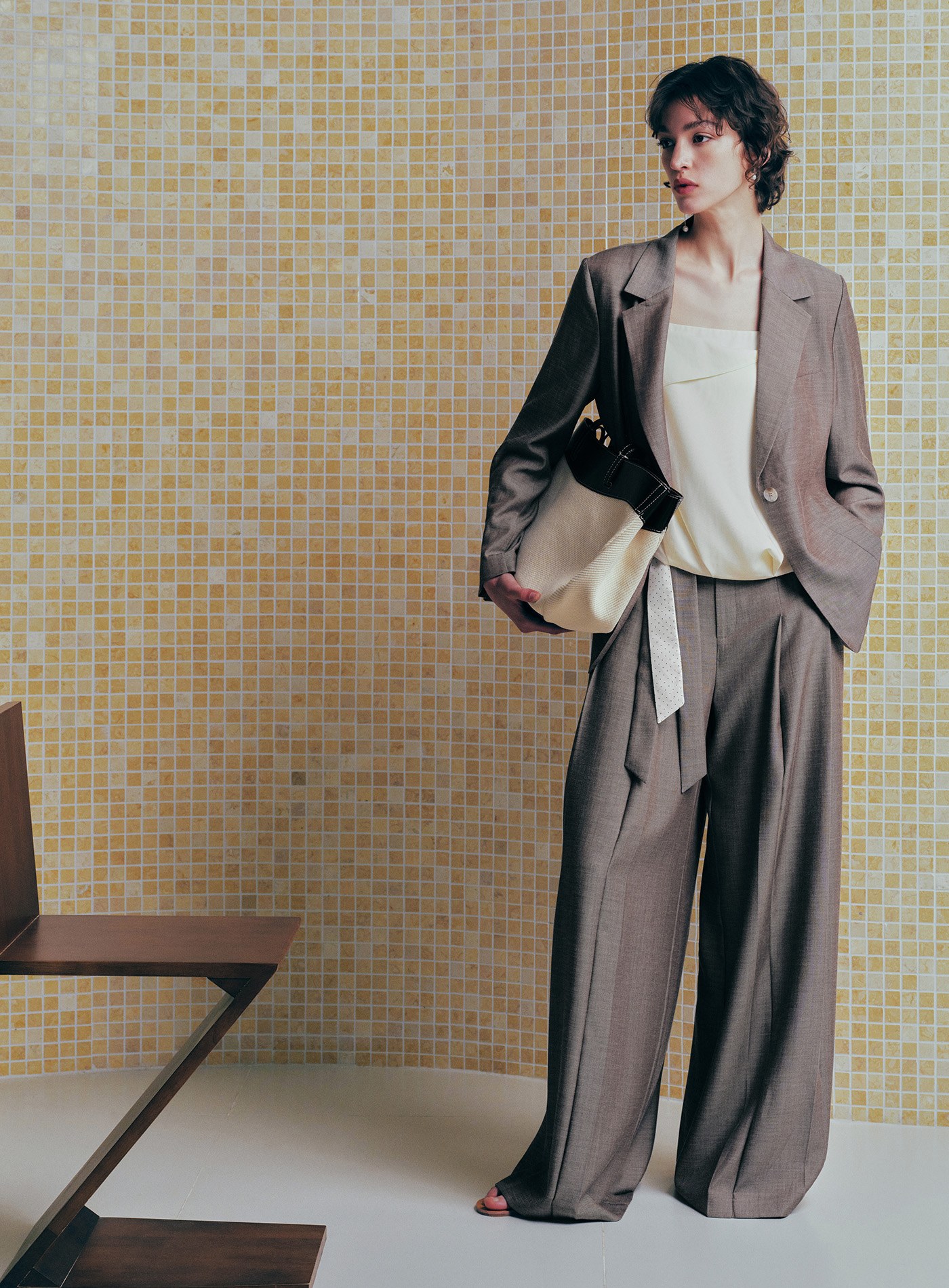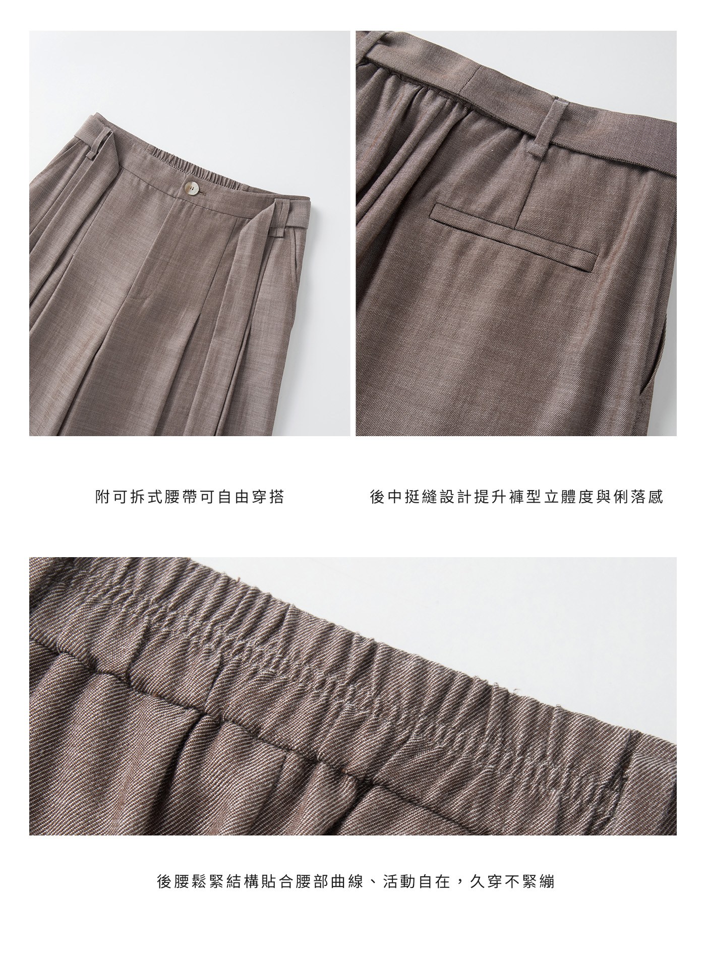- 前片雙褶剪裁增加腰腹空間,褲身更具垂墜層次
