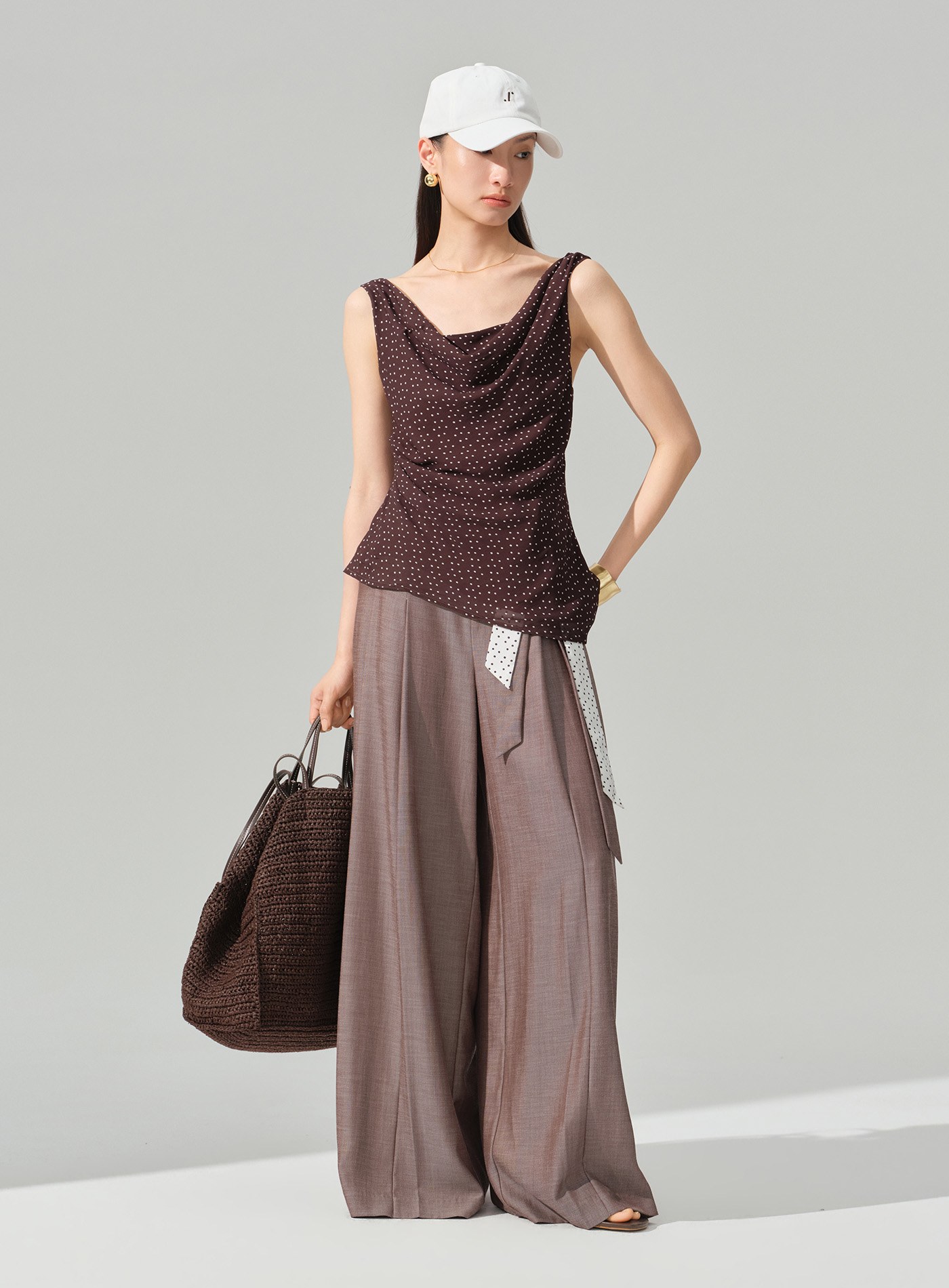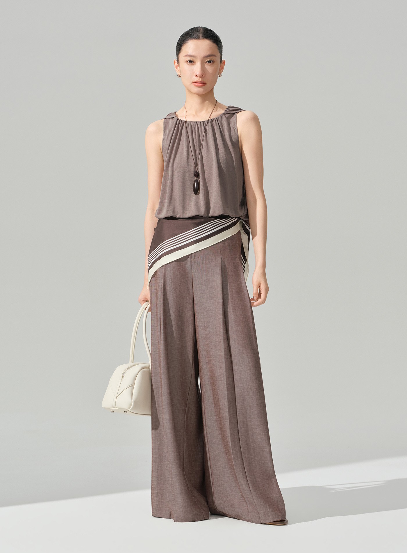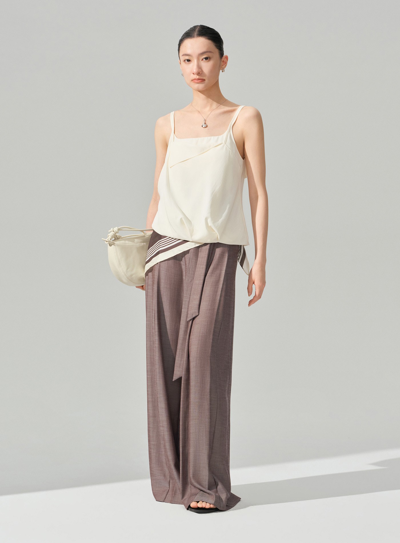- 前片雙褶剪裁增加腰腹空間,褲身更具垂墜層次