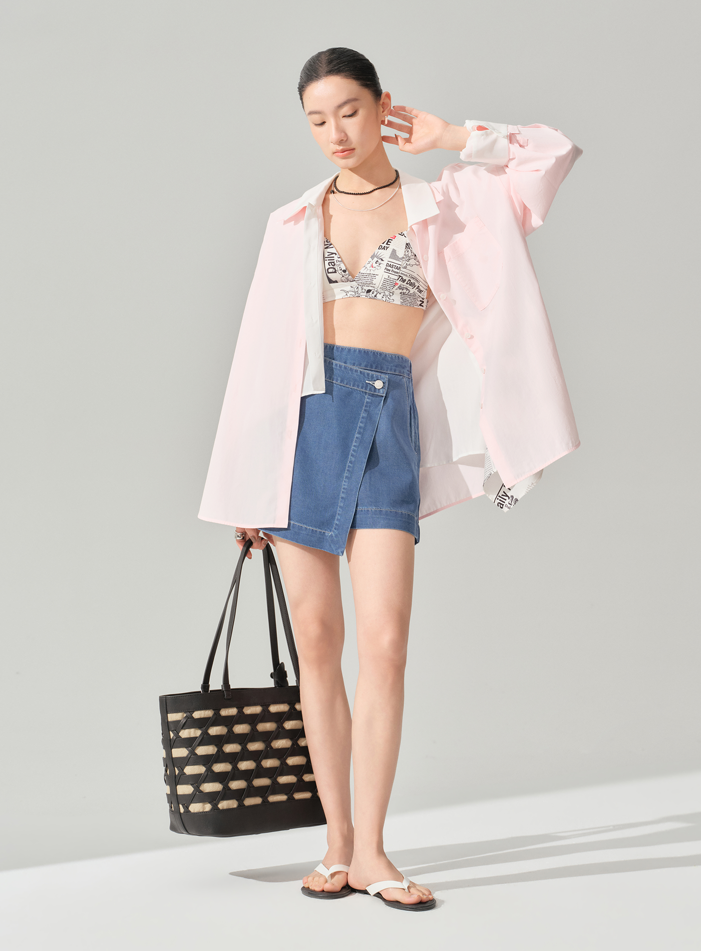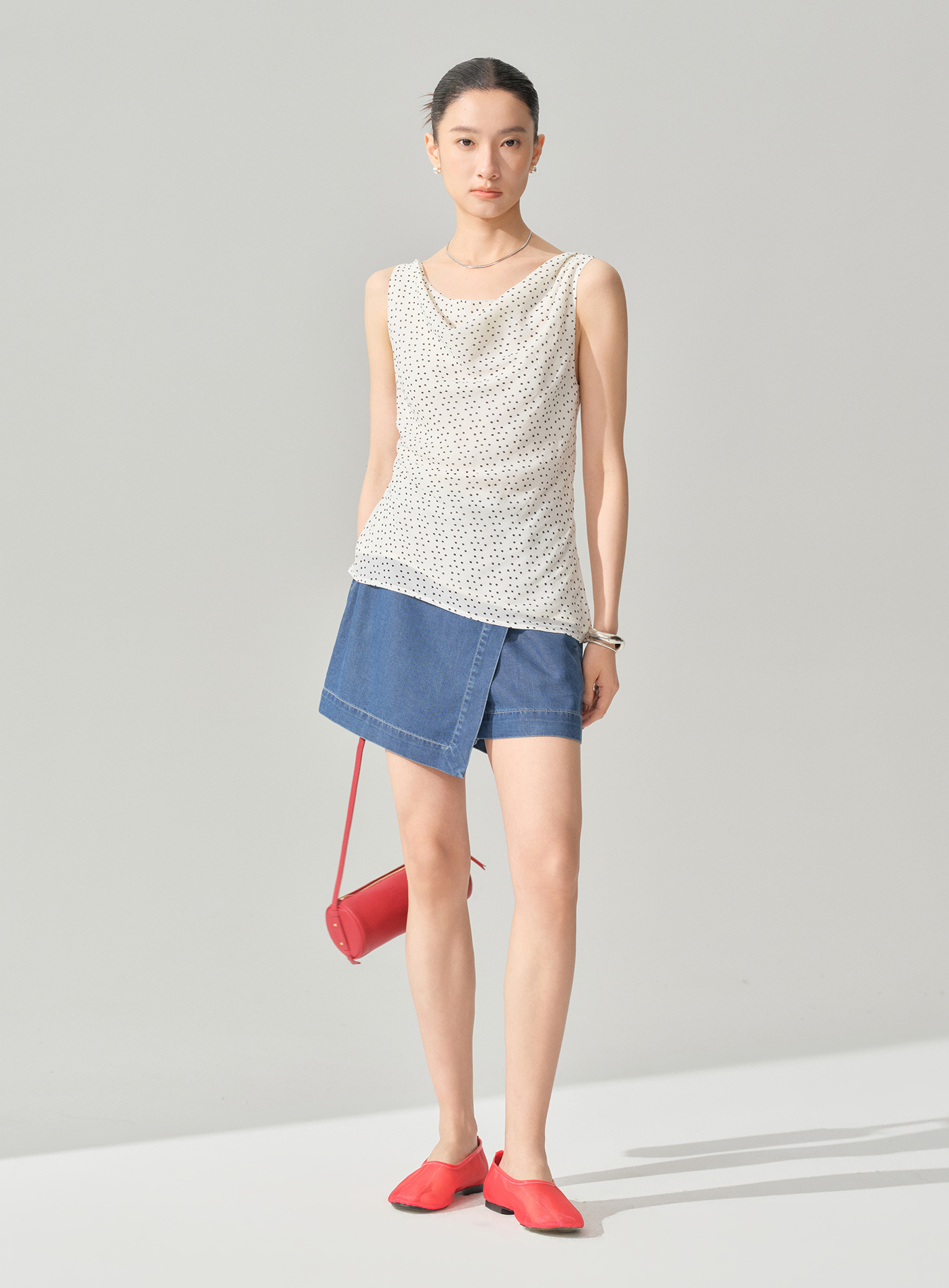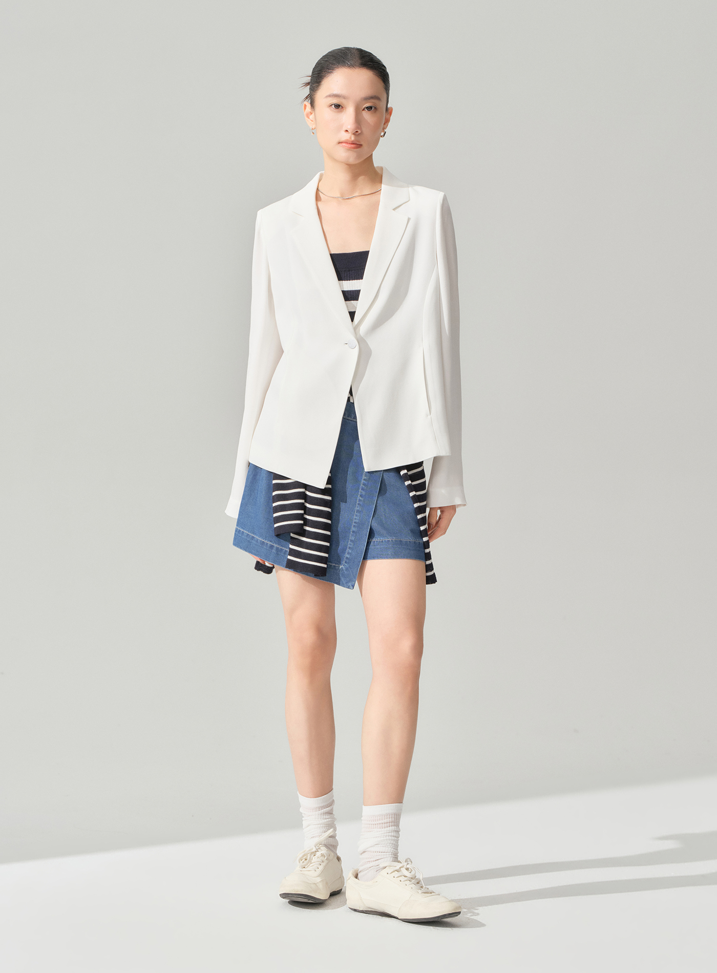 - 採用前裙片+後短褲的不對稱褲裙結構,造型俏皮且實穿度高