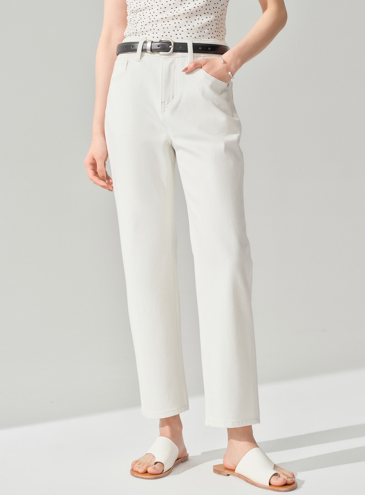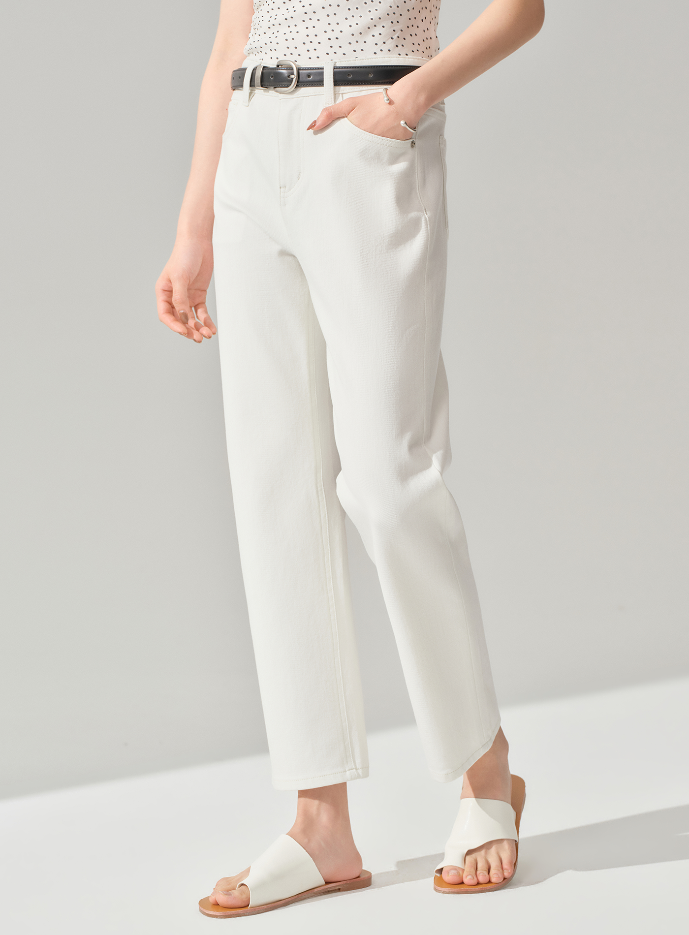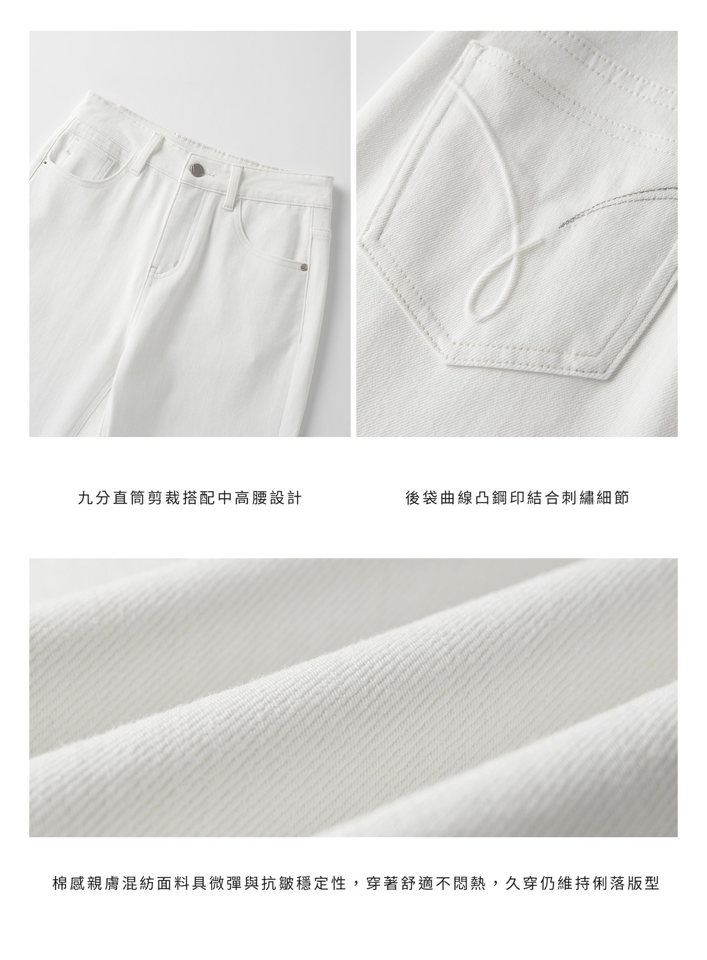 - 九分直筒剪裁搭配中高腰設計,修飾腿型並拉長比例,對多種身形友善