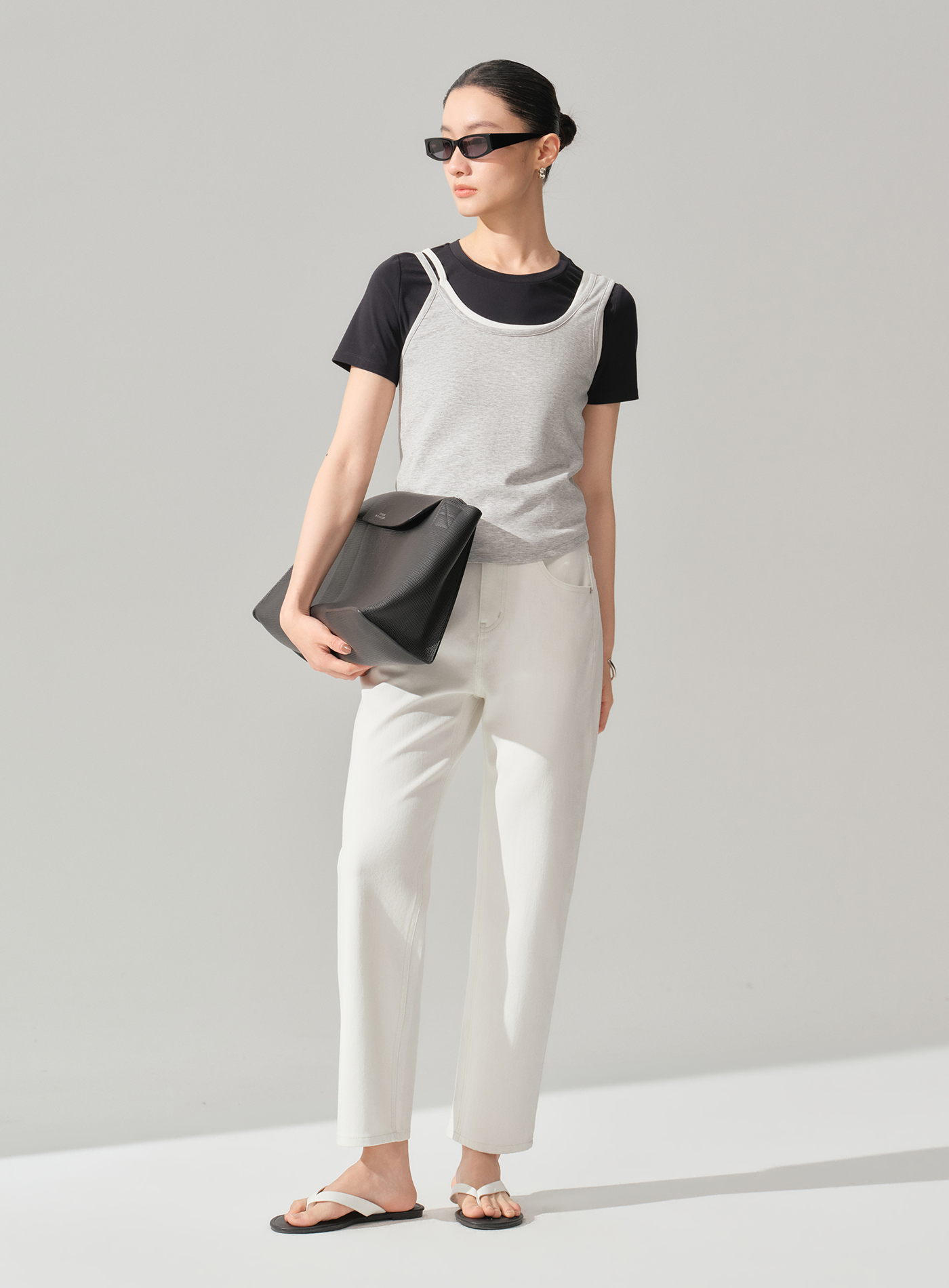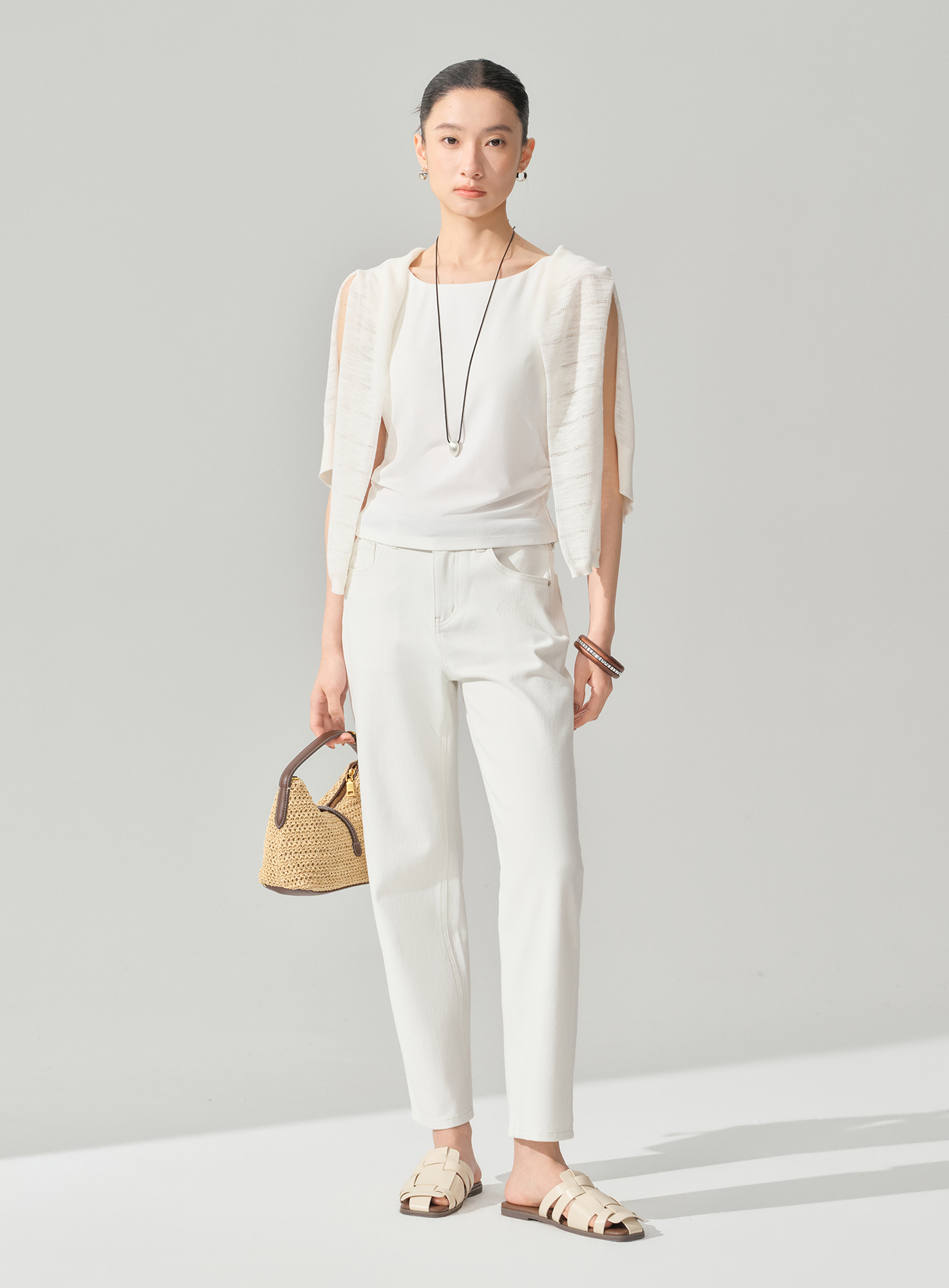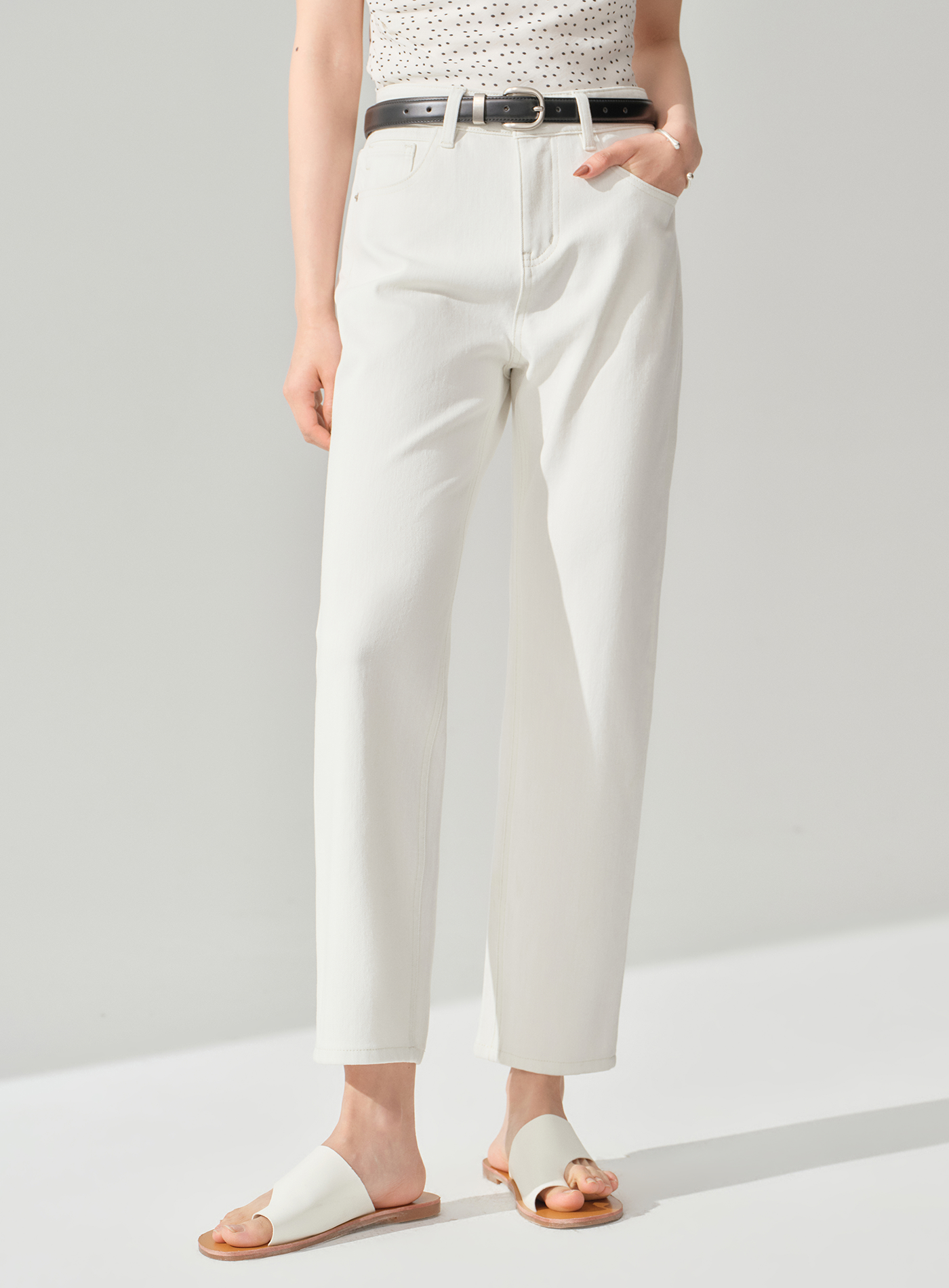 - 九分直筒剪裁搭配中高腰設計,修飾腿型並拉長比例,對多種身形友善