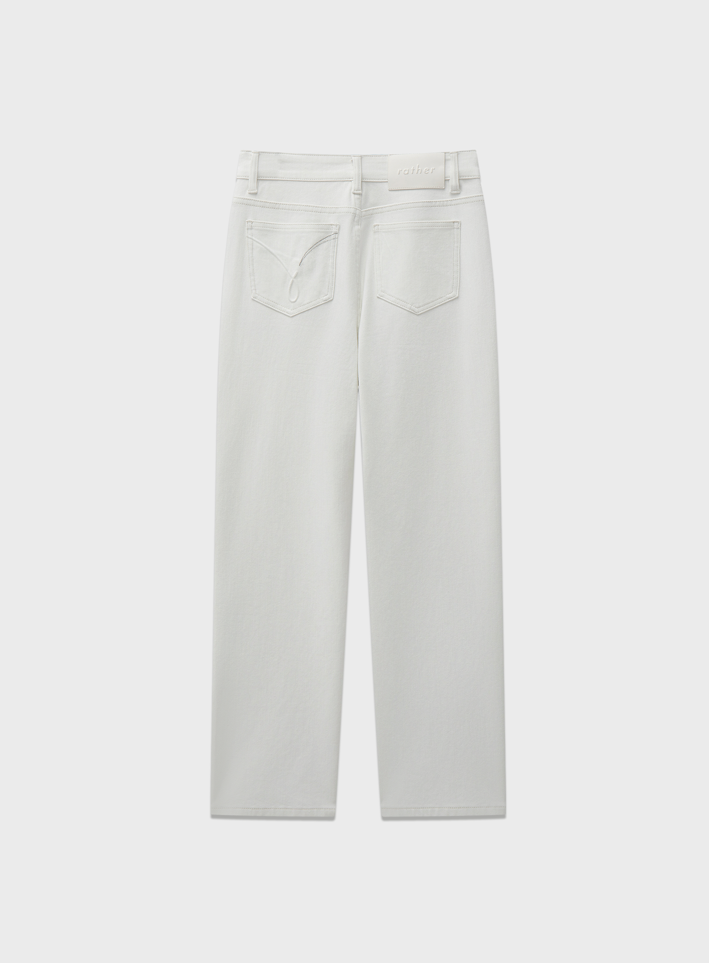 - 後袋採曲線凸鋼印結合刺繡細節,取代傳統車線工藝,於低調中展現品牌辨識度,使白色牛仔更具記憶點