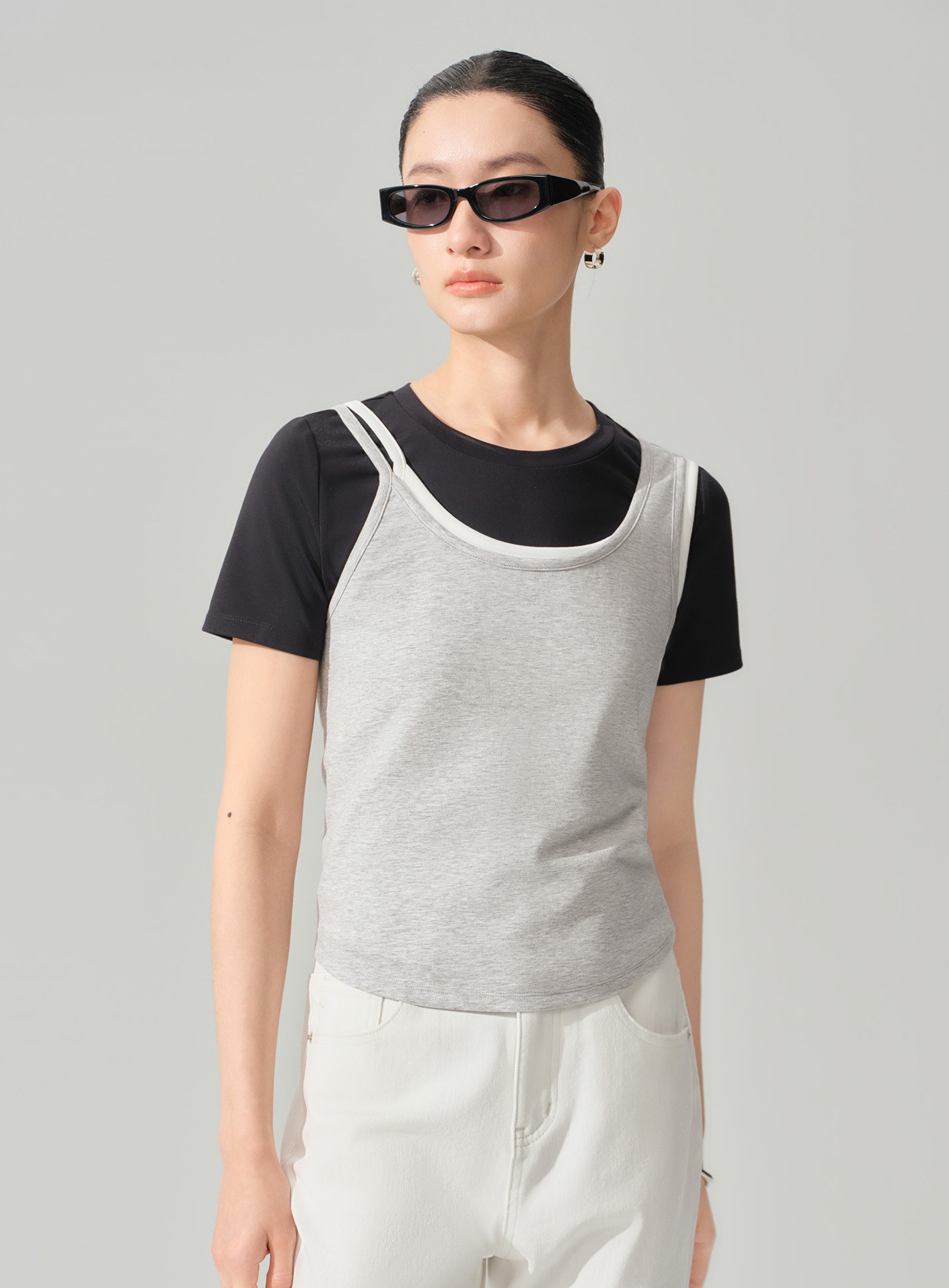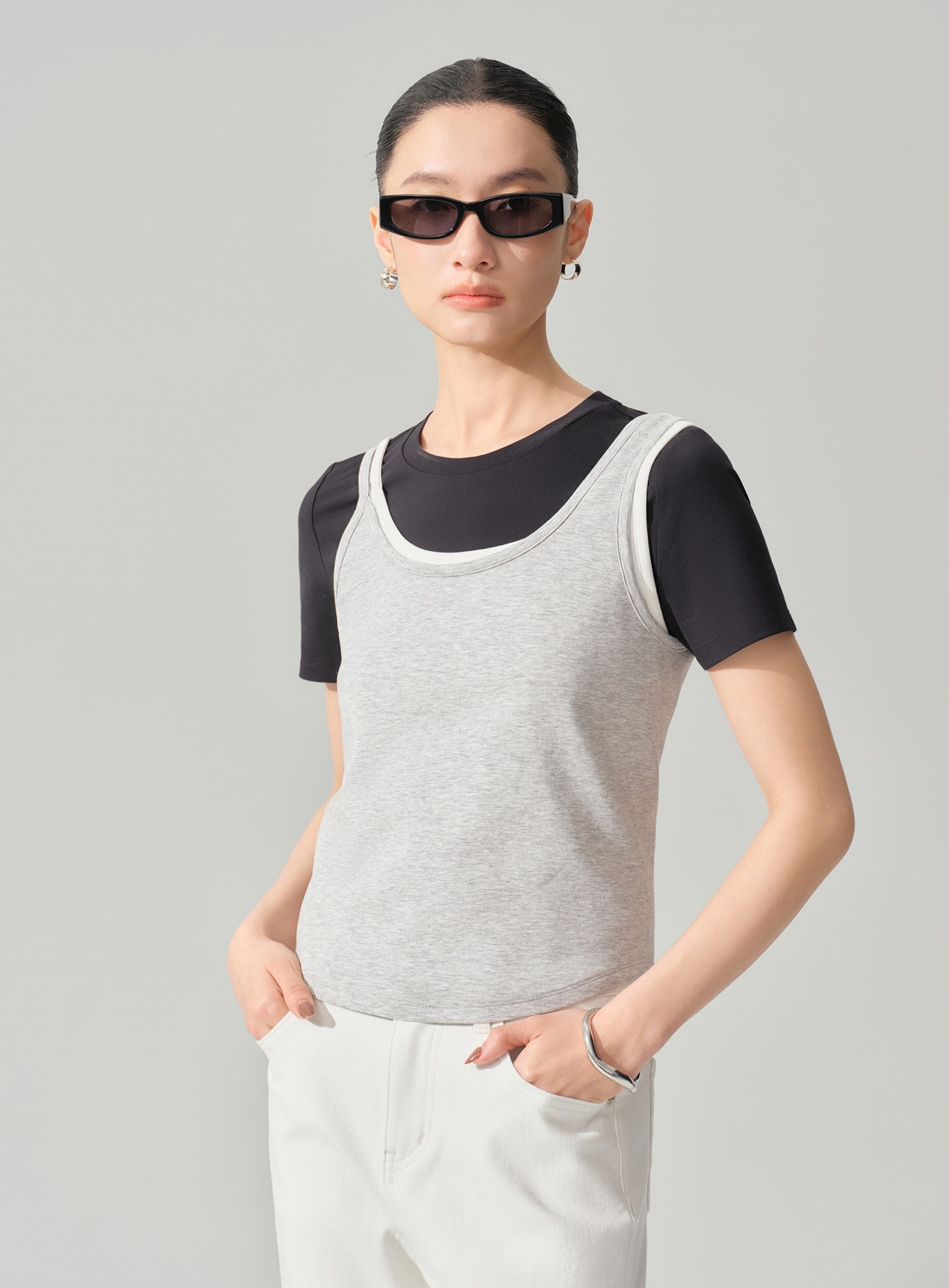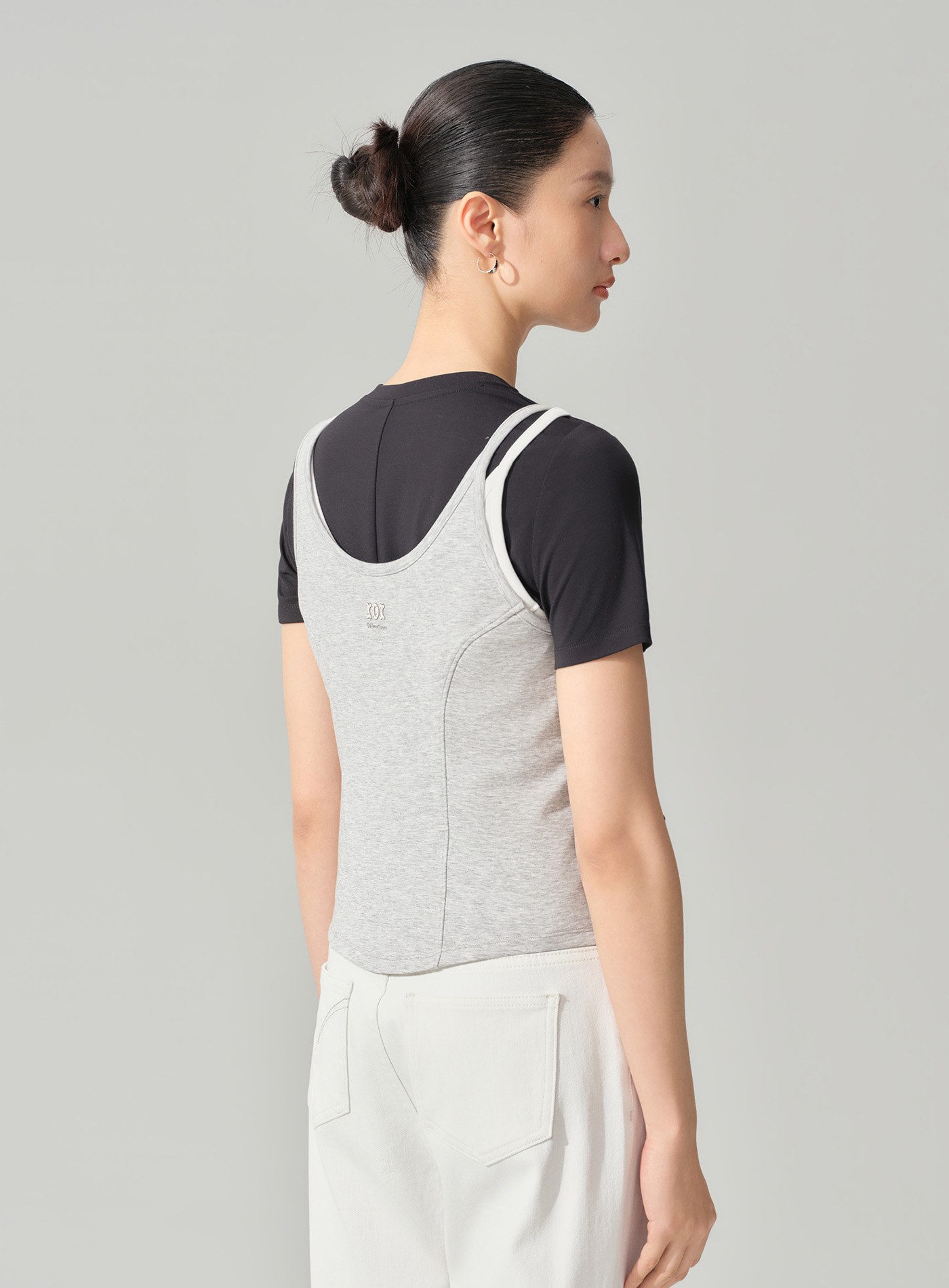 - 兩側偏短的圓弧形下擺設計,削弱貼身背心的拘謹感,更顯俏皮與活力