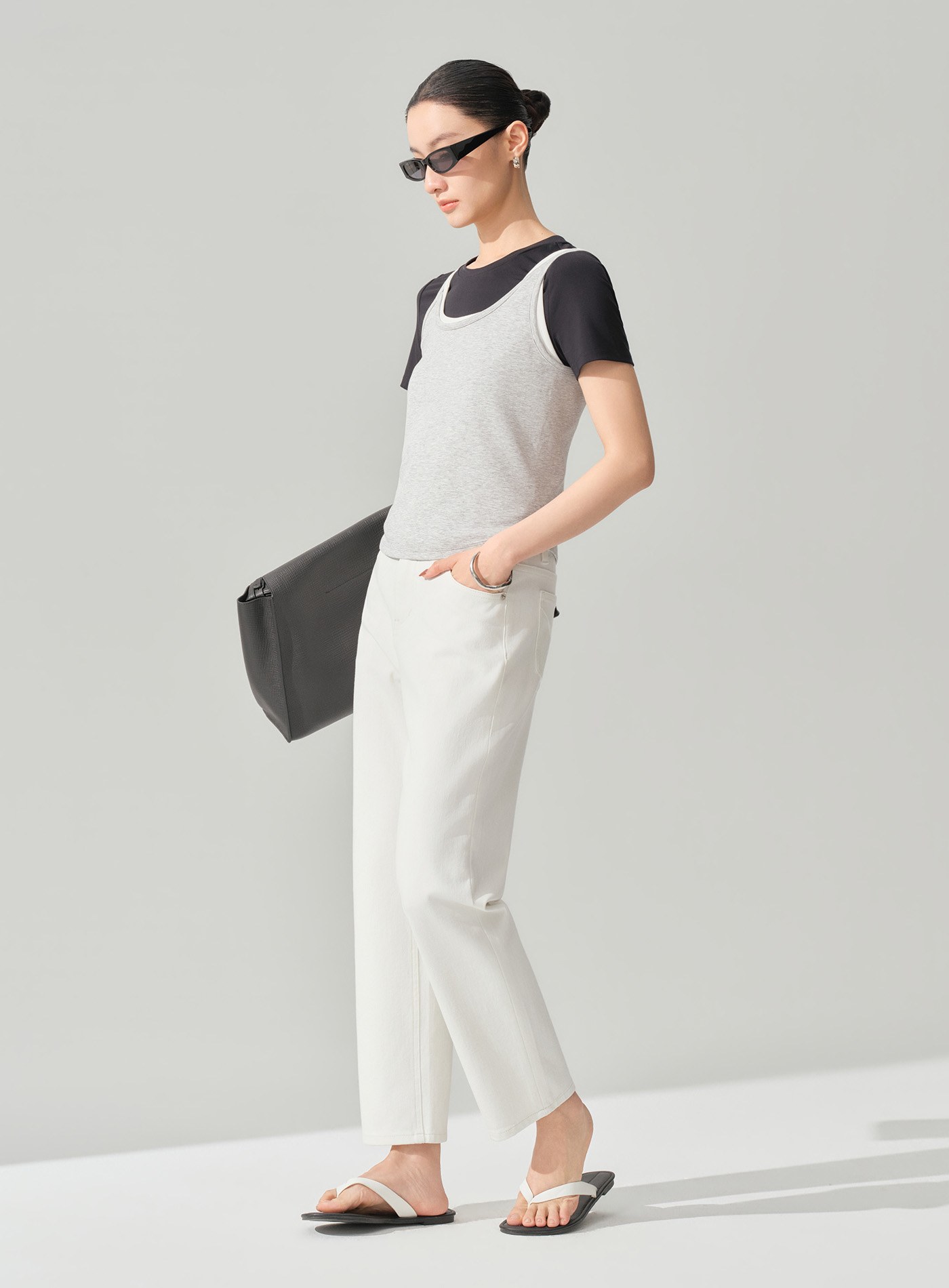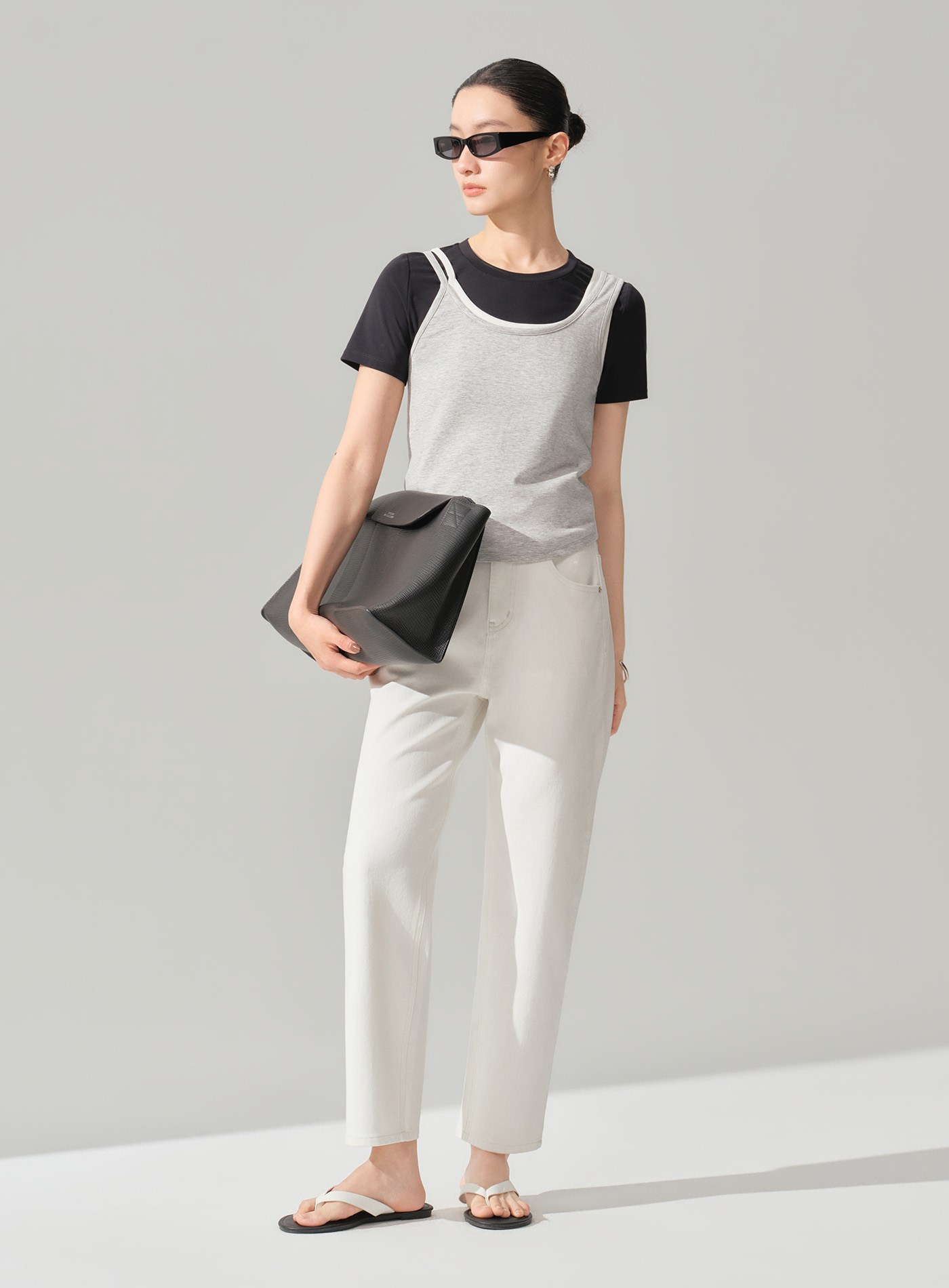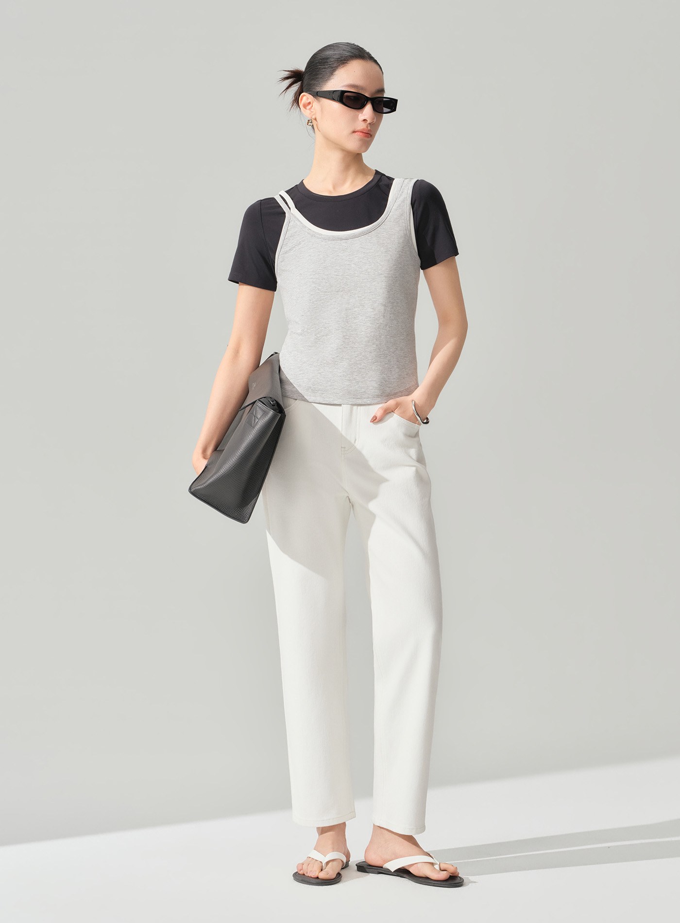- 兩側偏短的圓弧形下擺設計,削弱貼身背心的拘謹感,更顯俏皮與活力