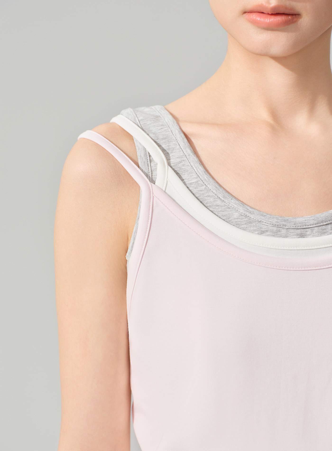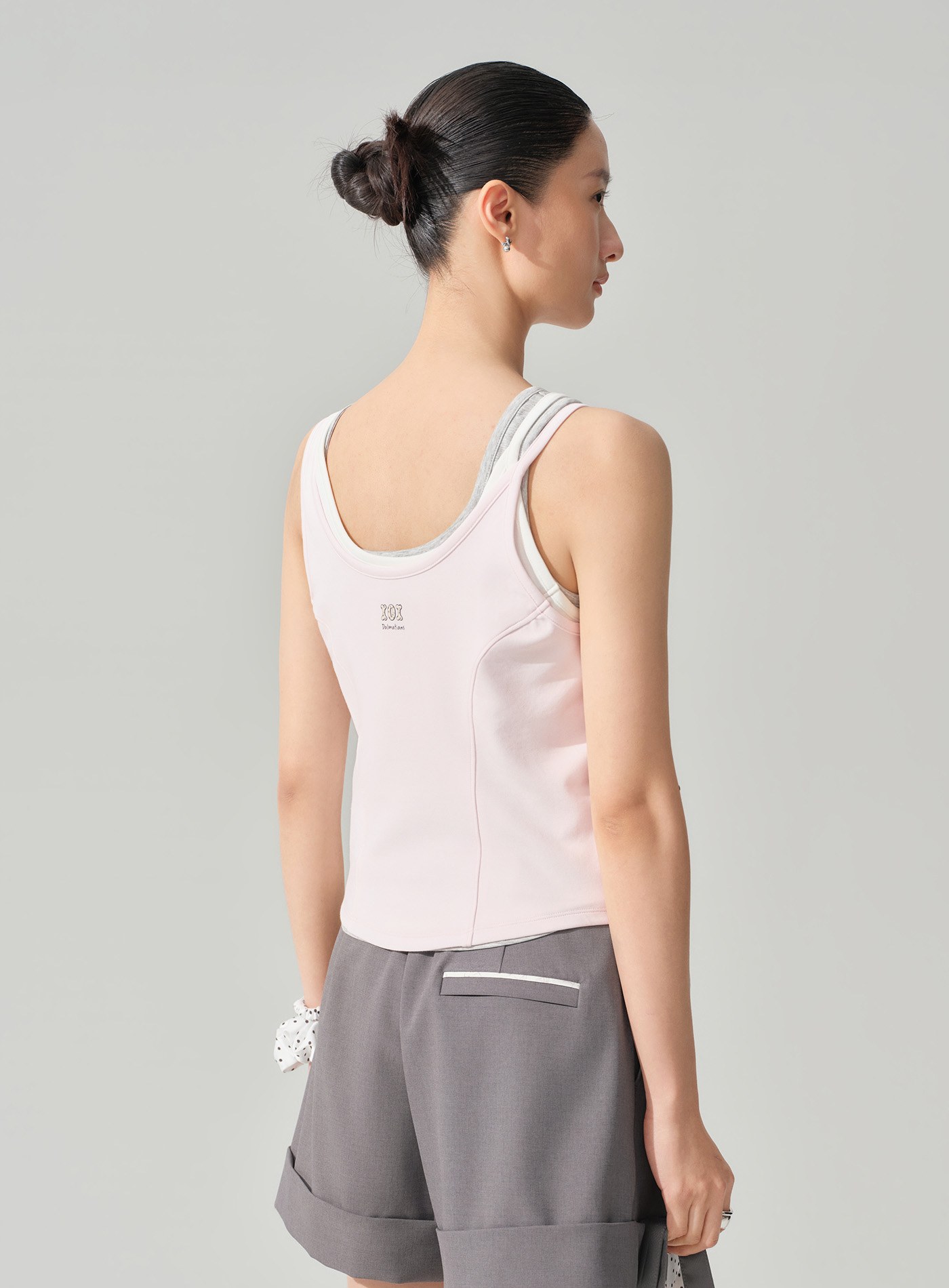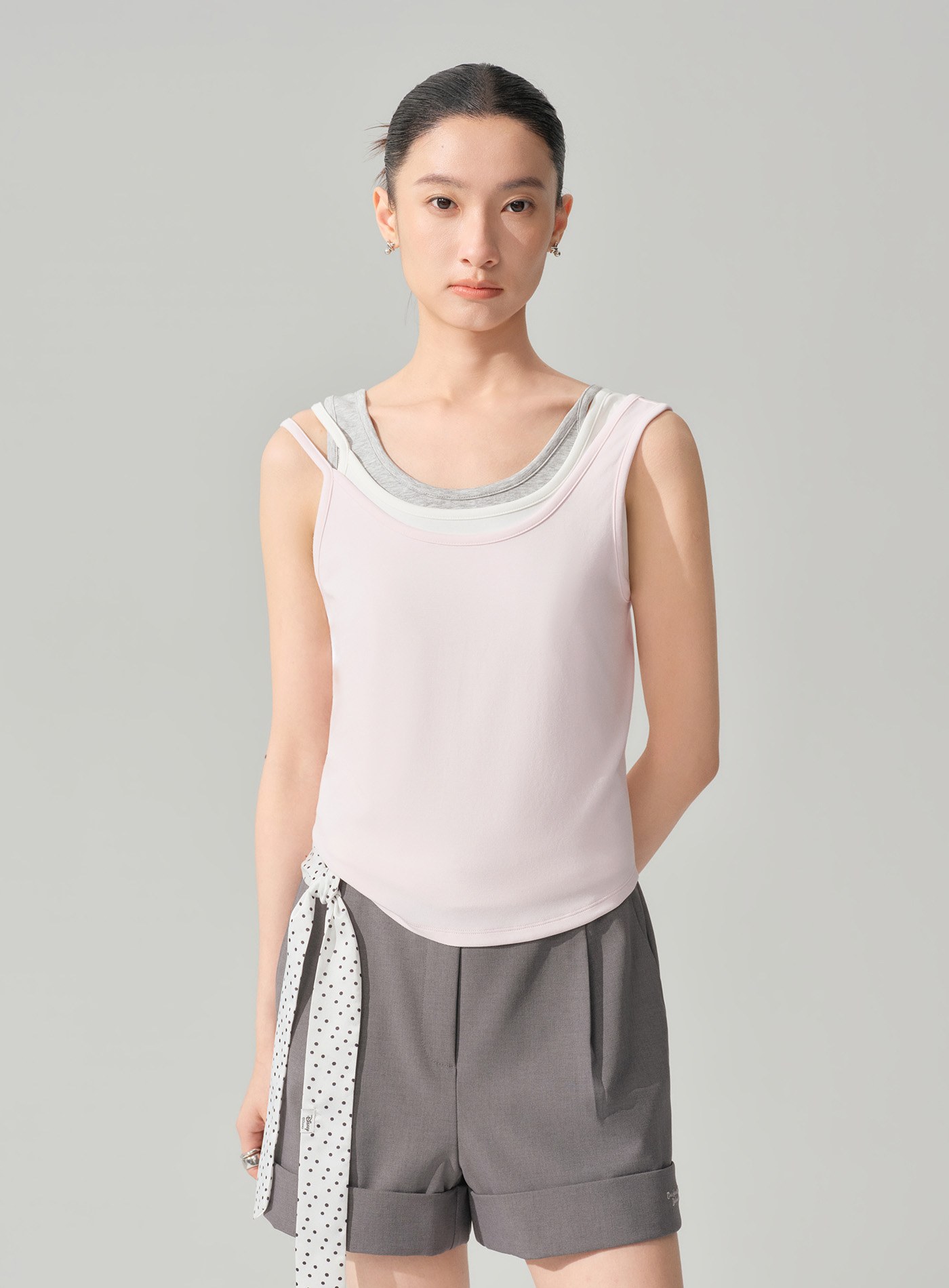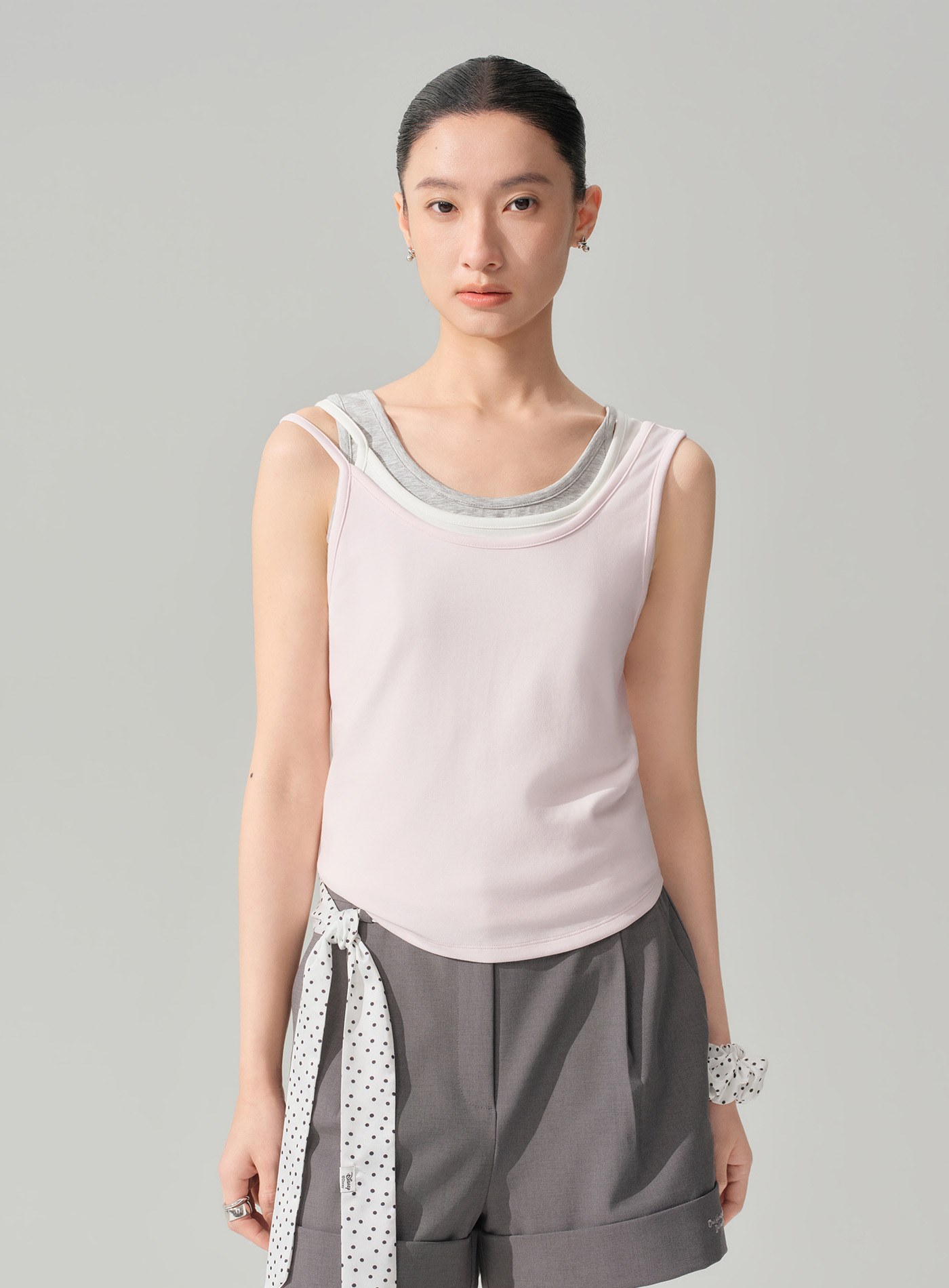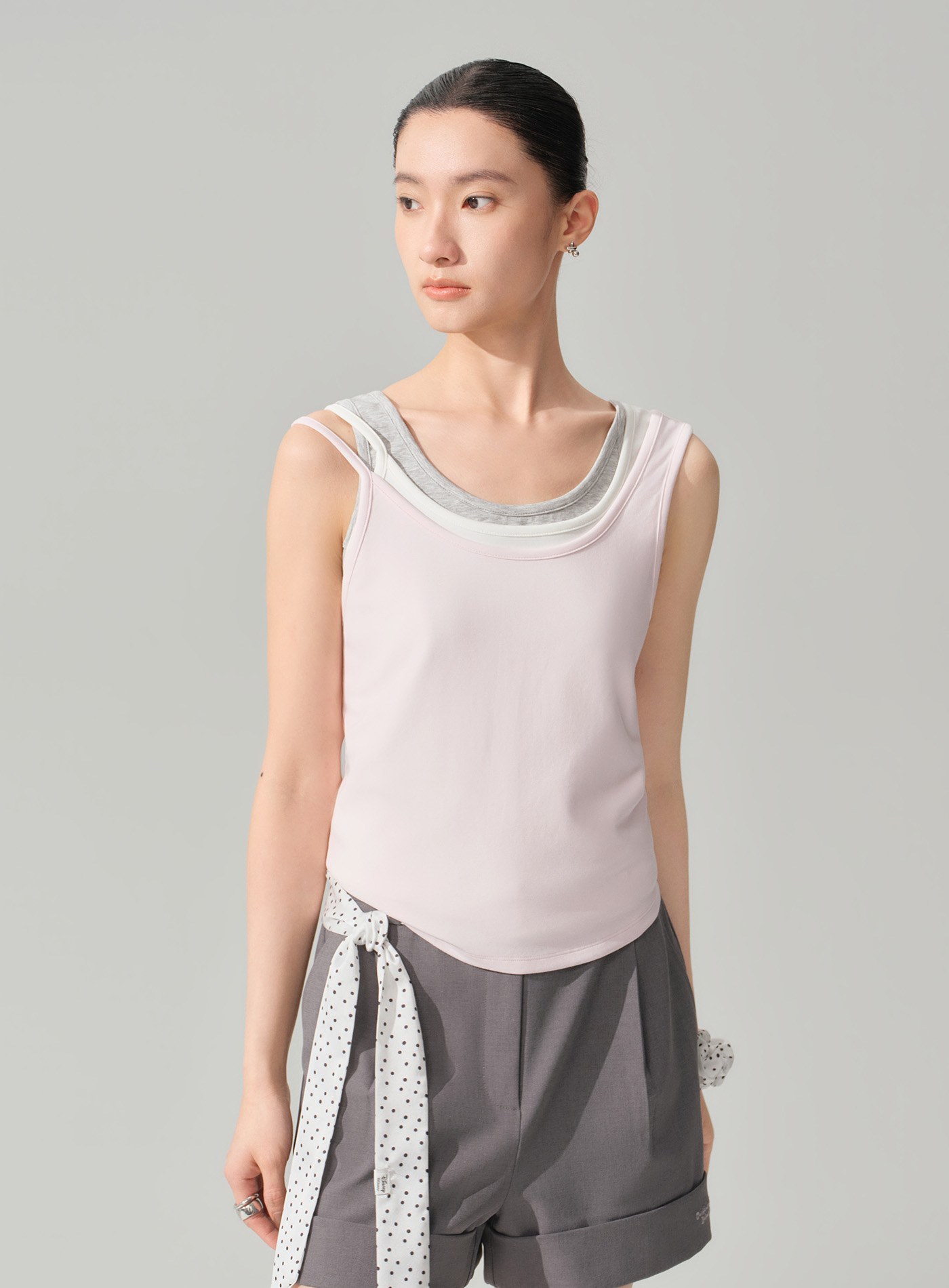 - 兩側偏短的圓弧形下擺設計,削弱貼身背心的拘謹感,更顯俏皮與活力