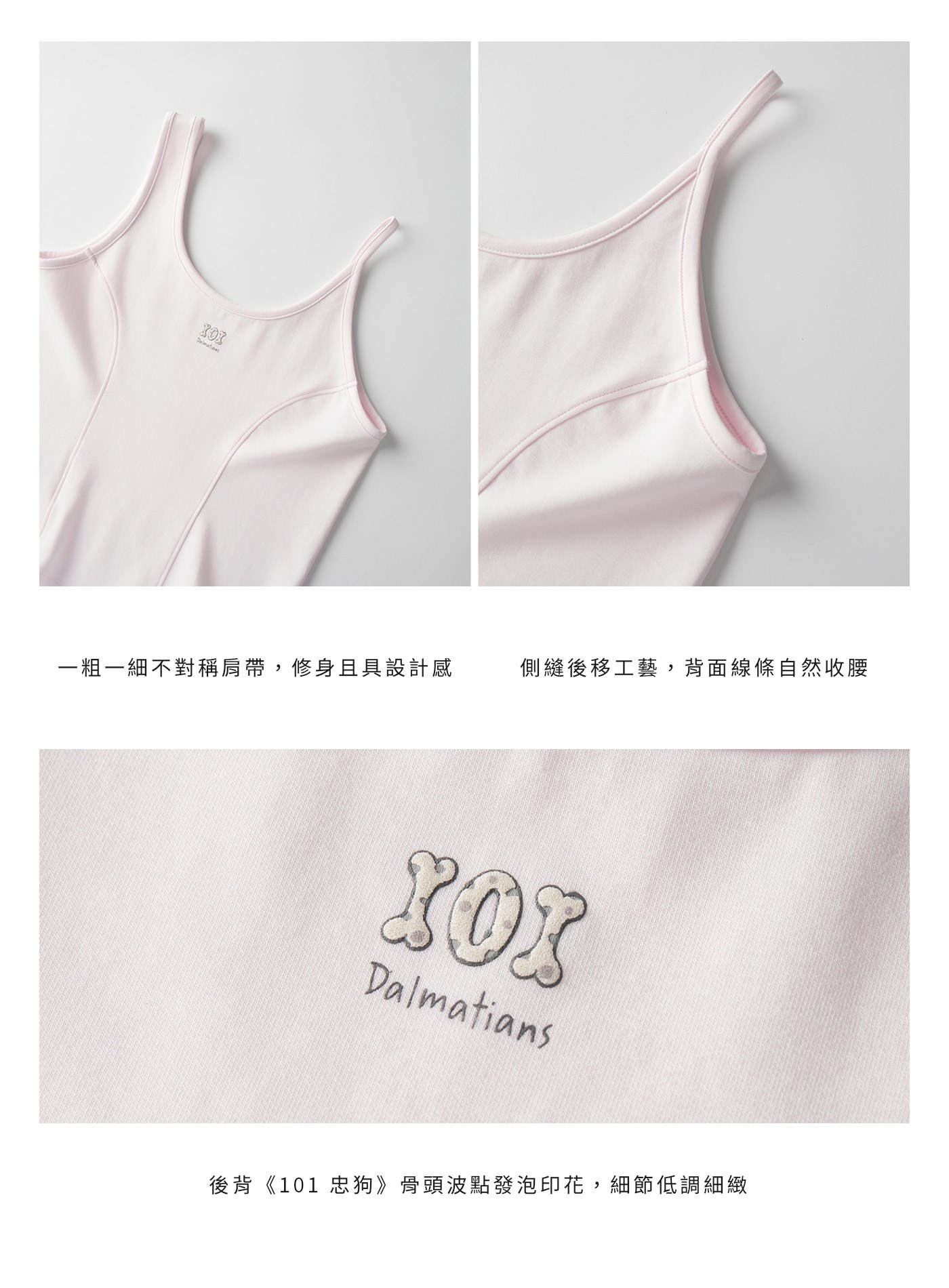 - 後背中央點綴《101 忠狗》骨頭波點發泡印花,為簡約設計注入童趣巧思