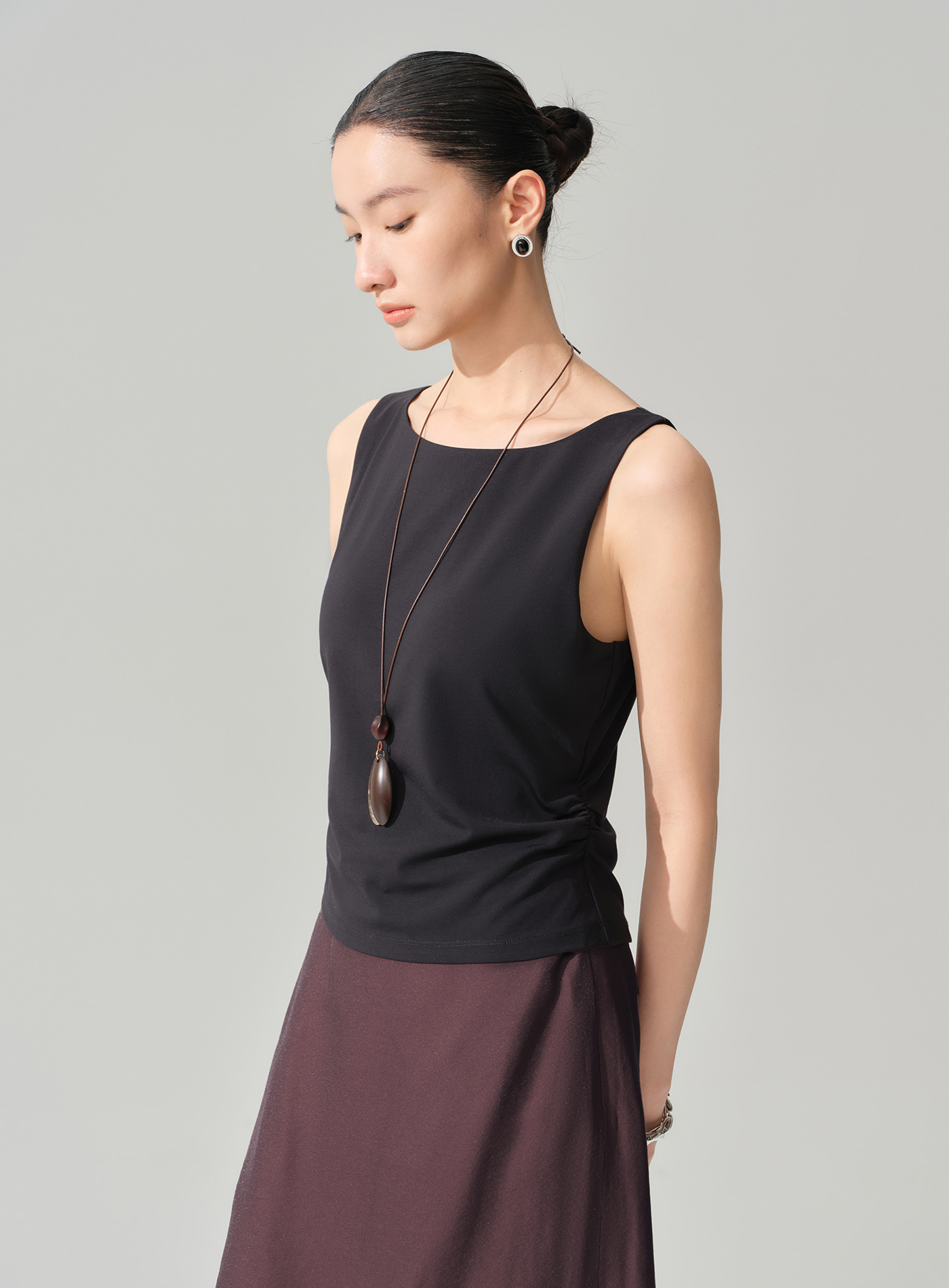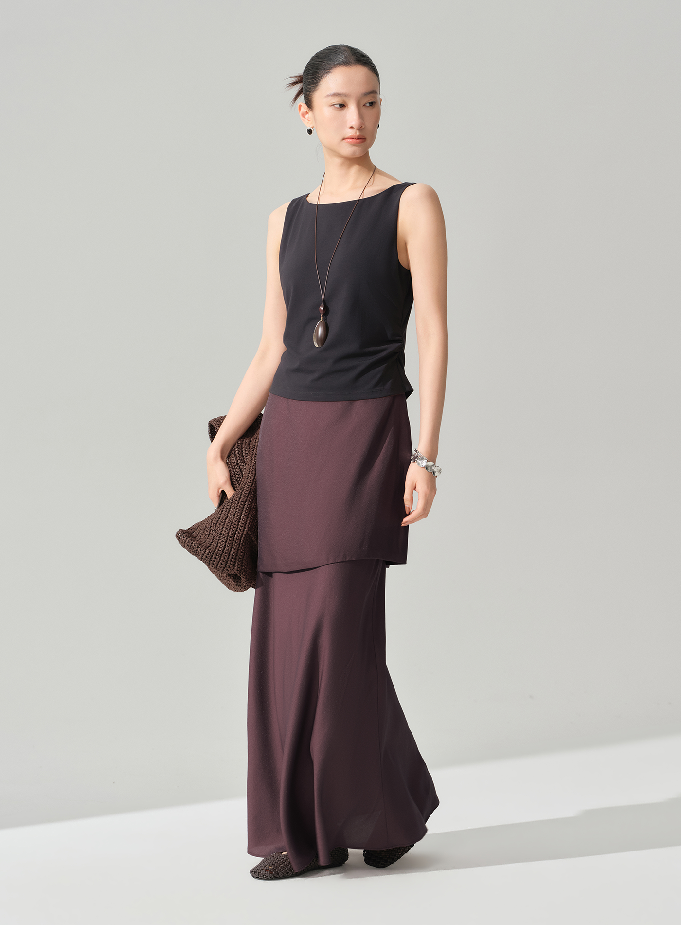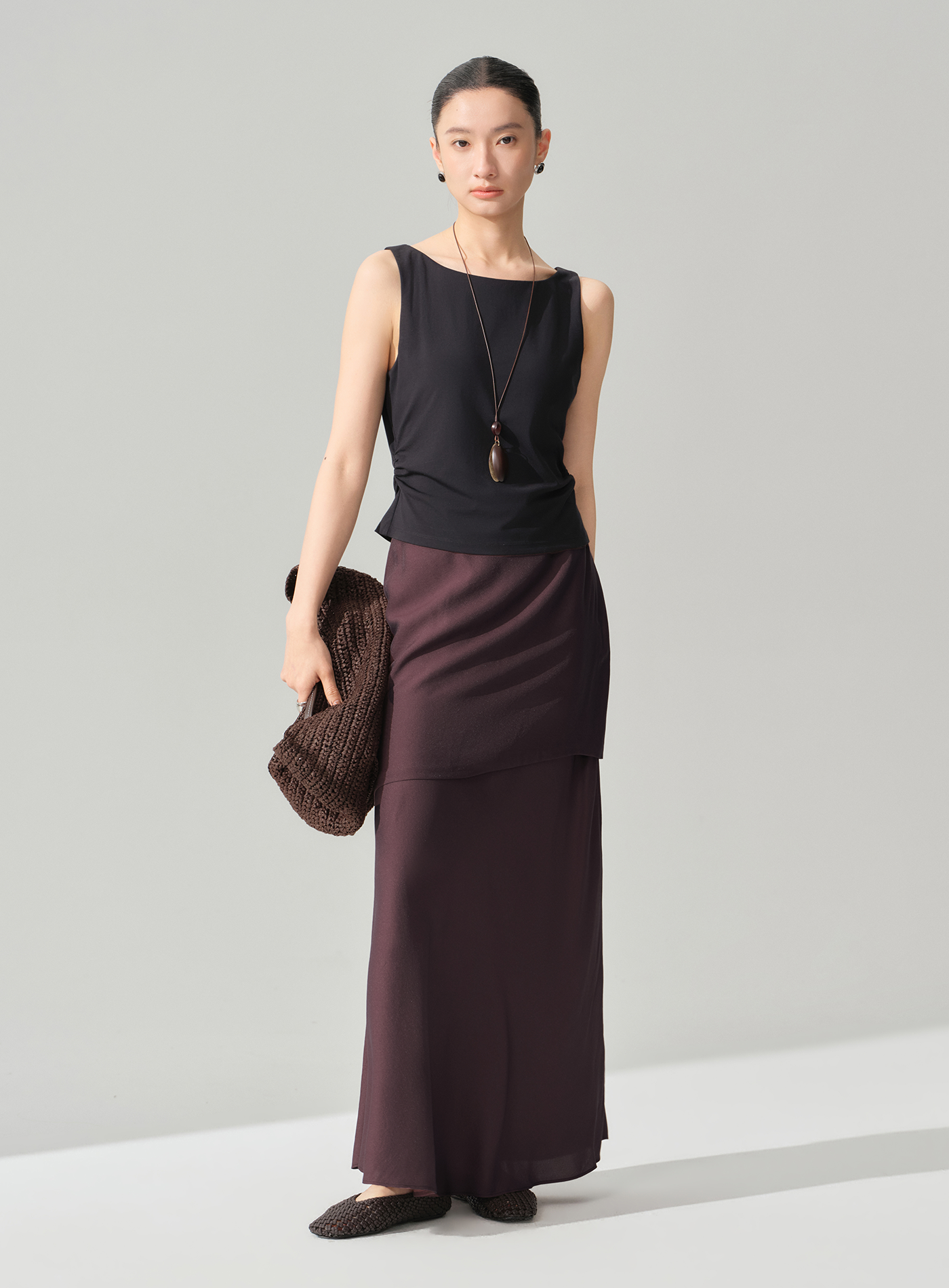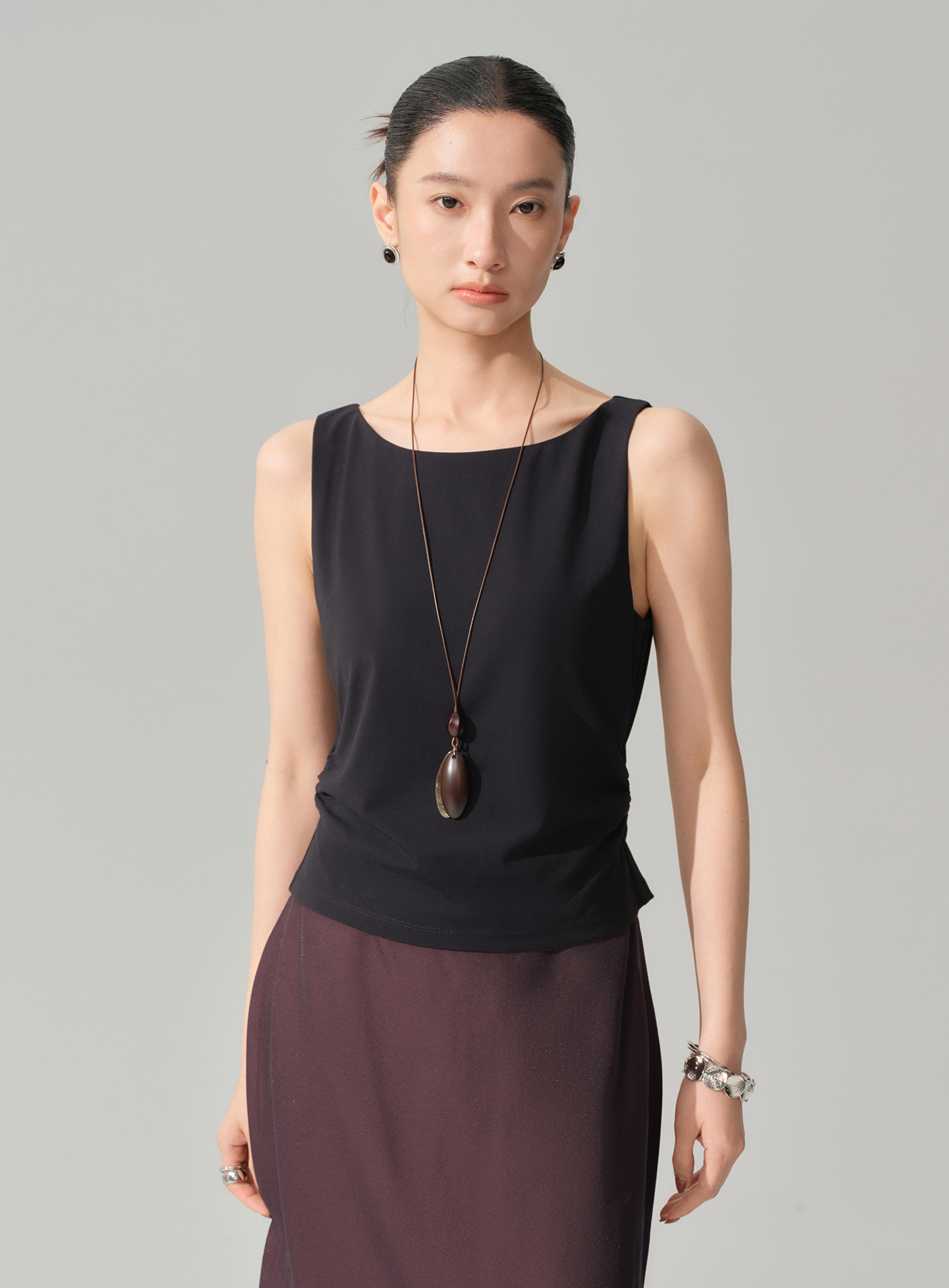 - 腰部抽褶收腰剪裁自然勾勒腰線,視覺修飾身形比例,打造纖細修長的輪廓