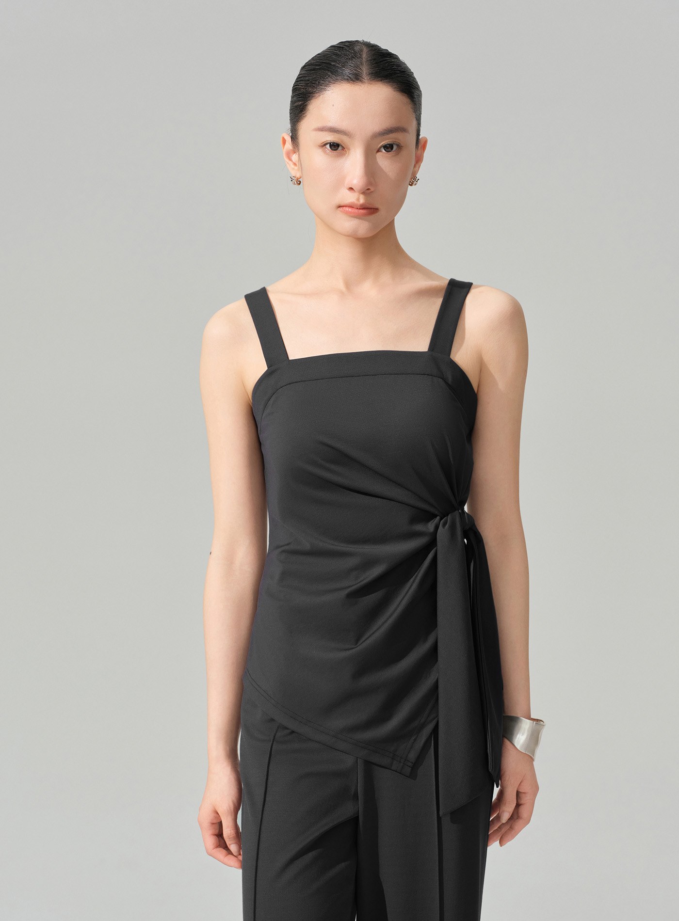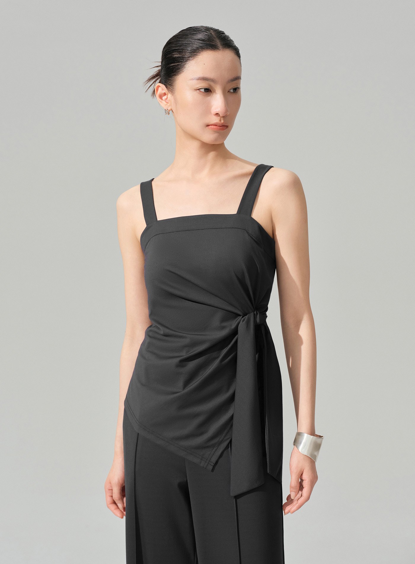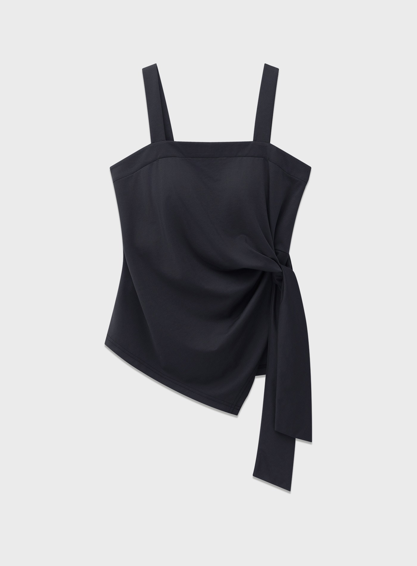 - 不對稱下擺剪裁修飾腰腹,展現都會女性的俐落與設計感