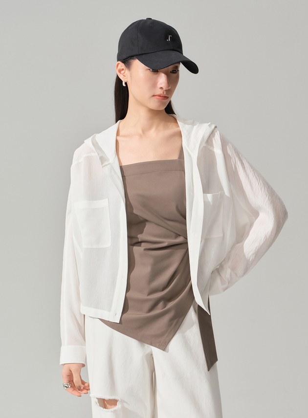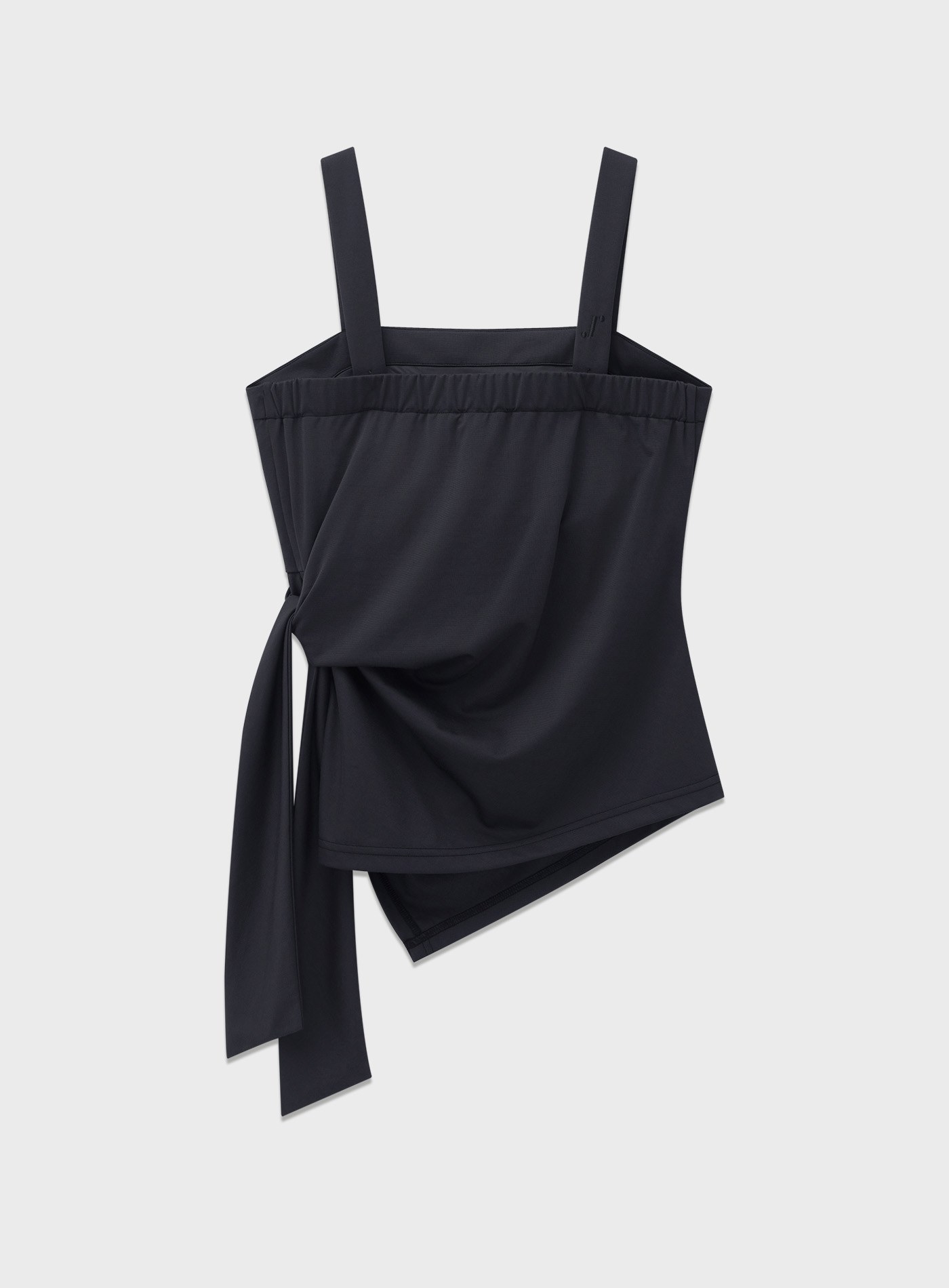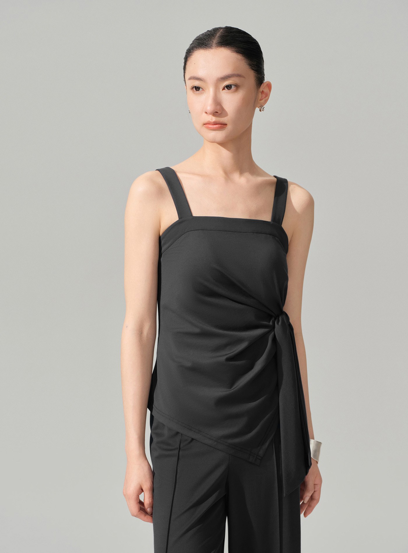 - 不對稱下擺剪裁修飾腰腹,展現都會女性的俐落與設計感