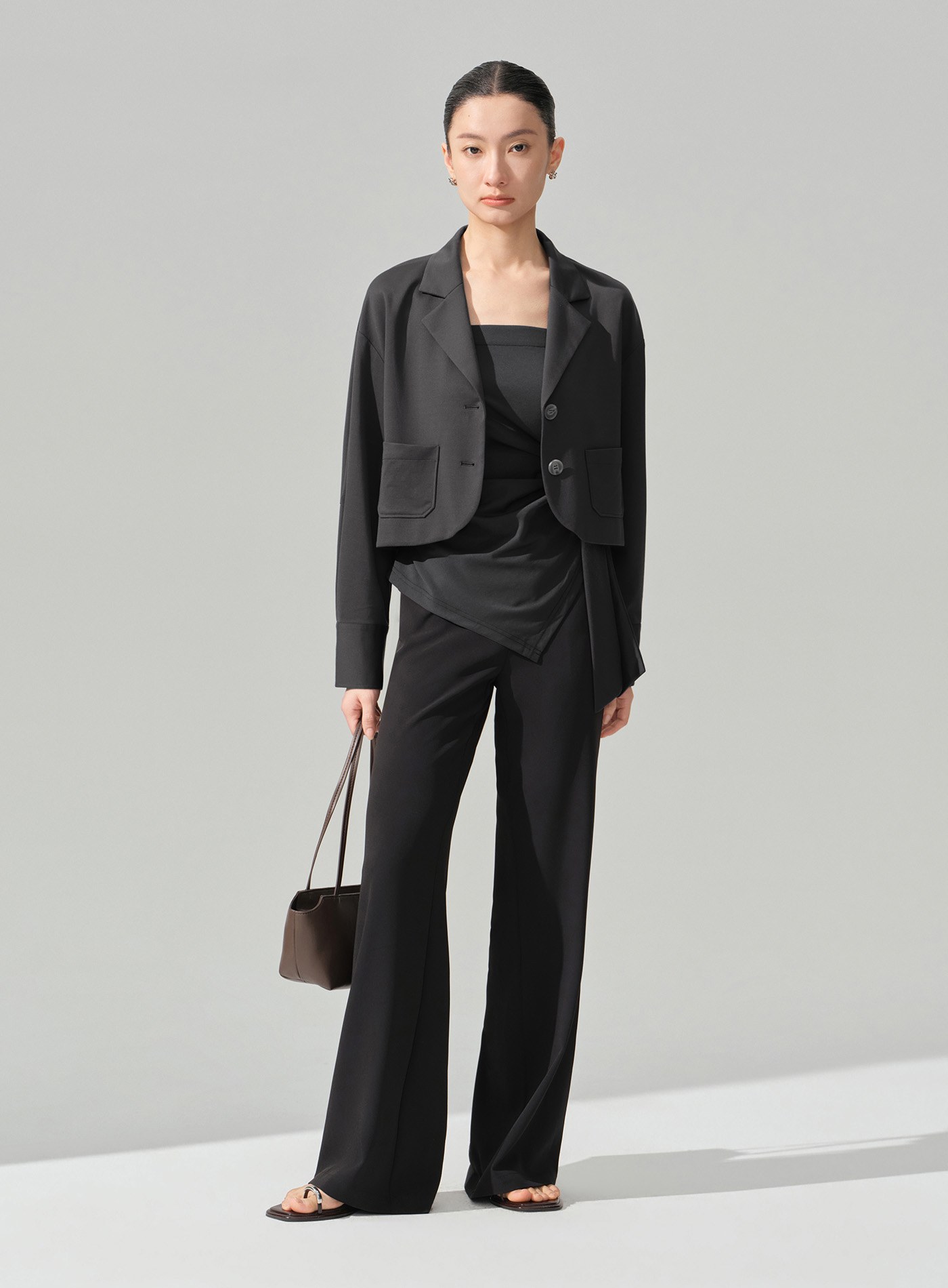 - 天絲與桑蠶絲混紡面料,帶來絲滑垂墜、彈性舒適與細膩光澤