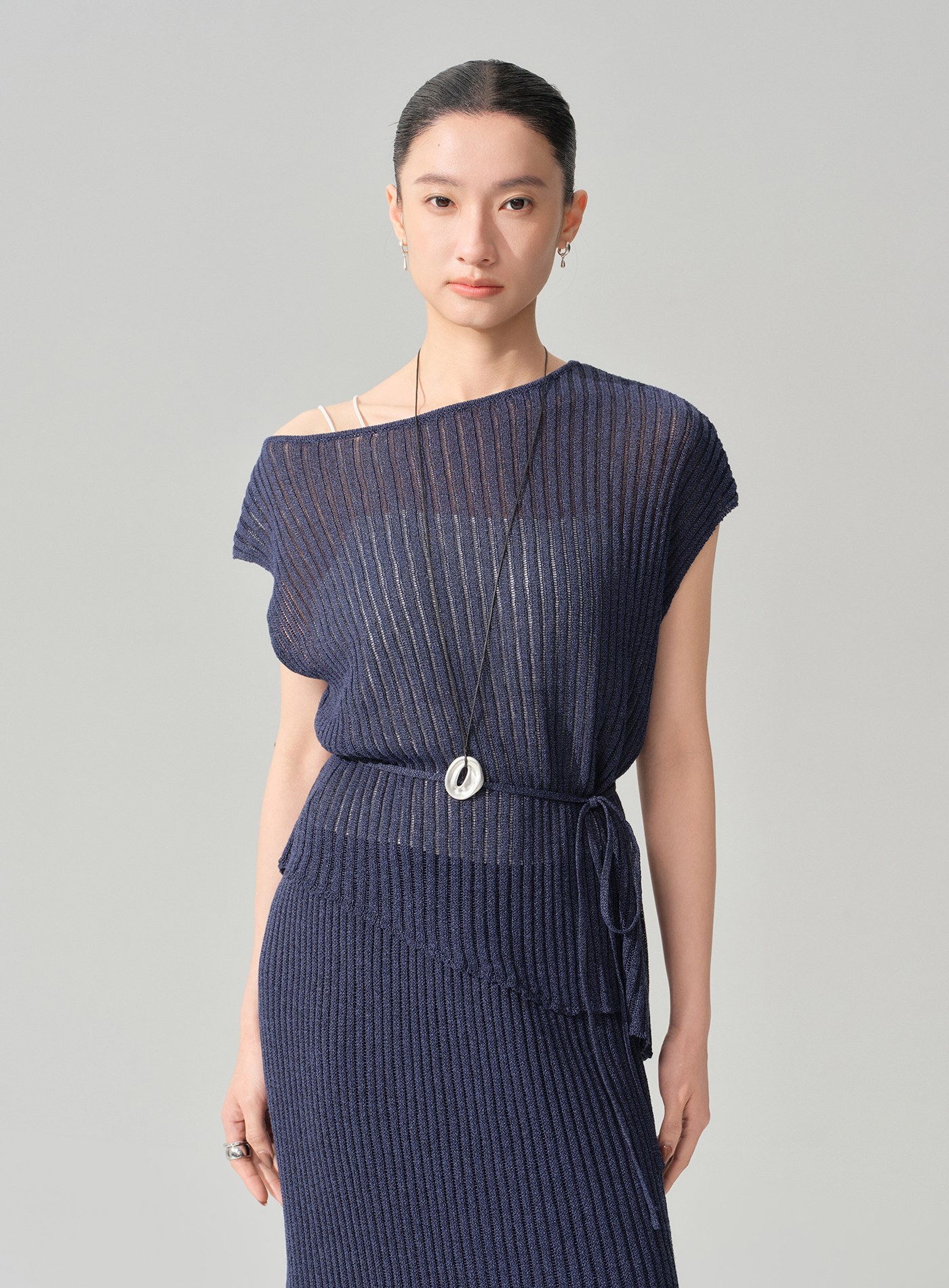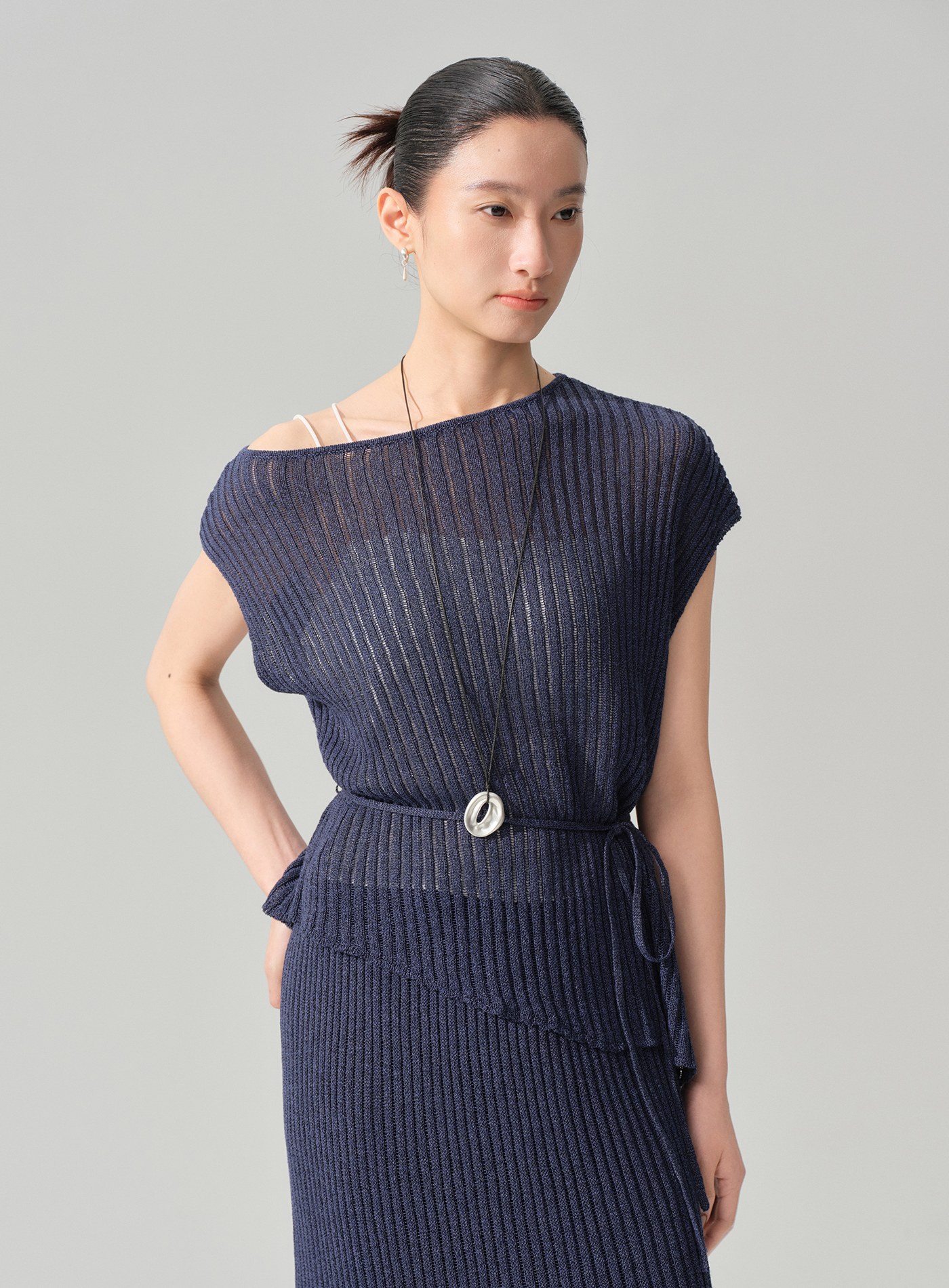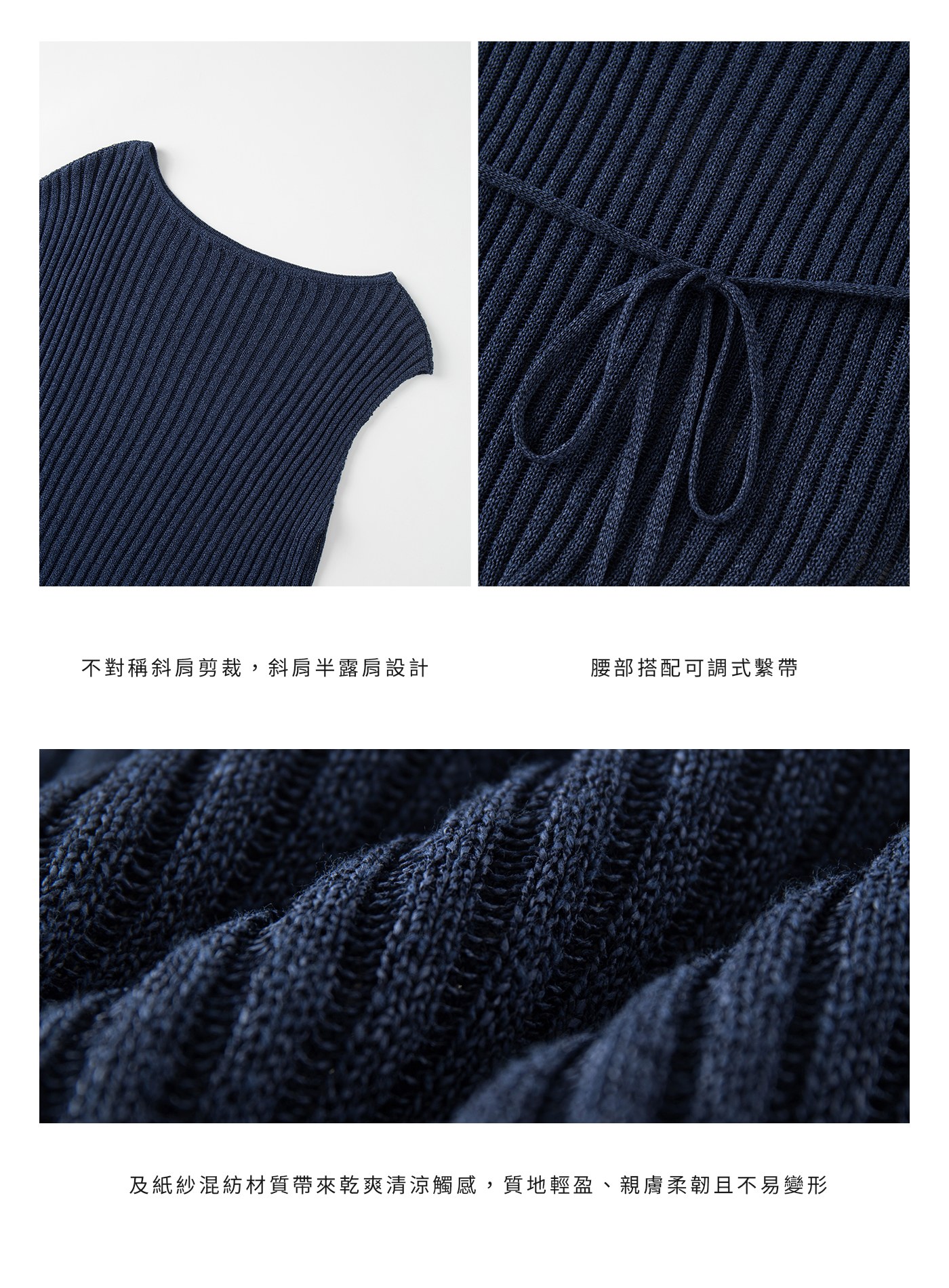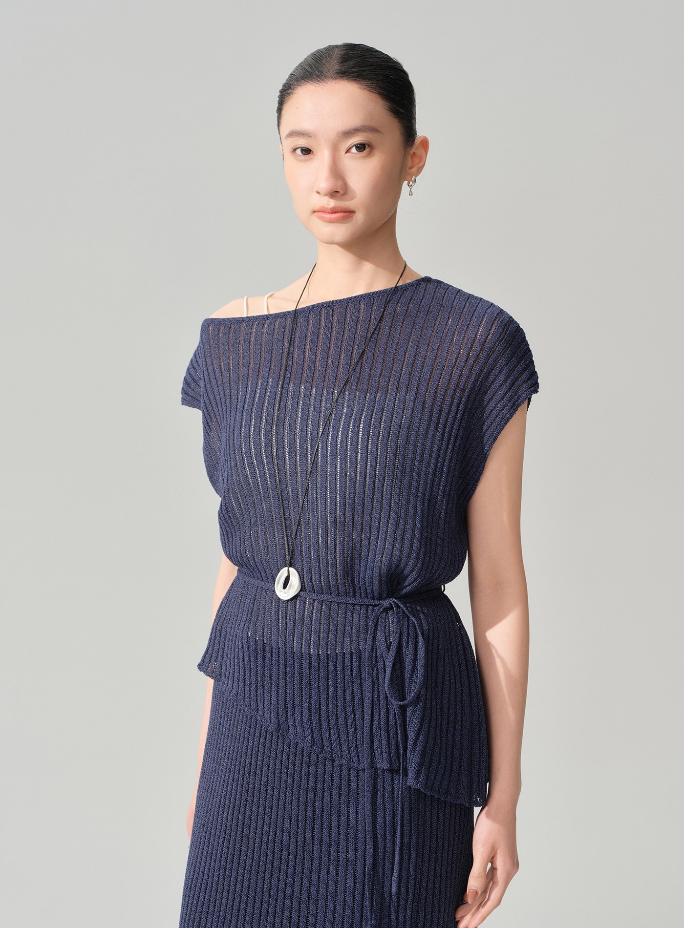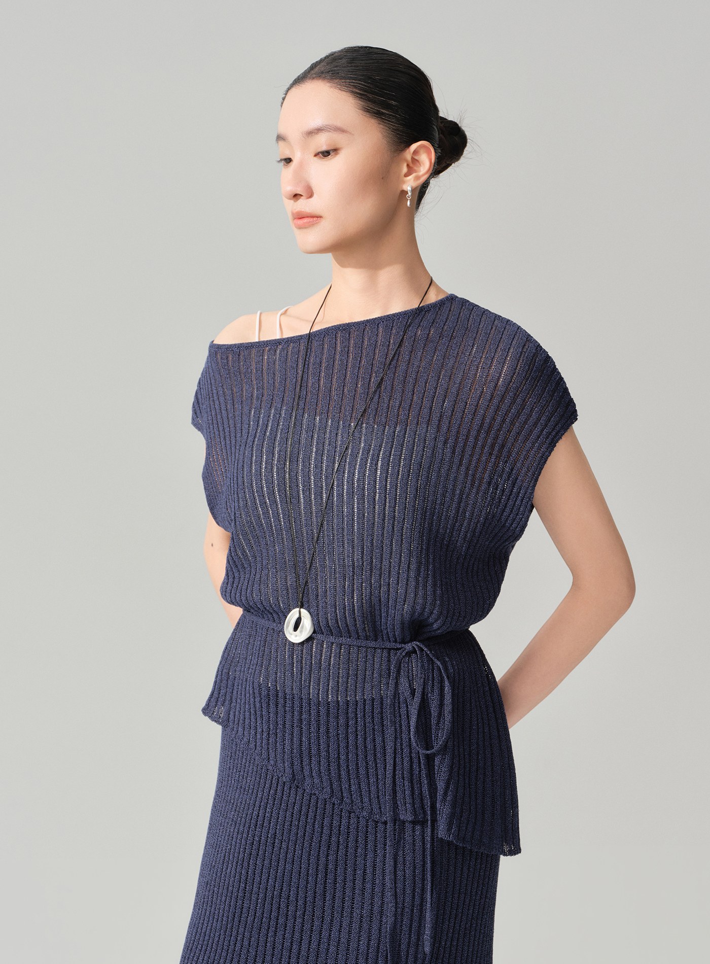 - 整體選用及紙紗混紡面料,觸感乾爽清涼、透氣不悶,輕盈而具自然挺度,為春夏過渡季提供兼具設計感與舒適度