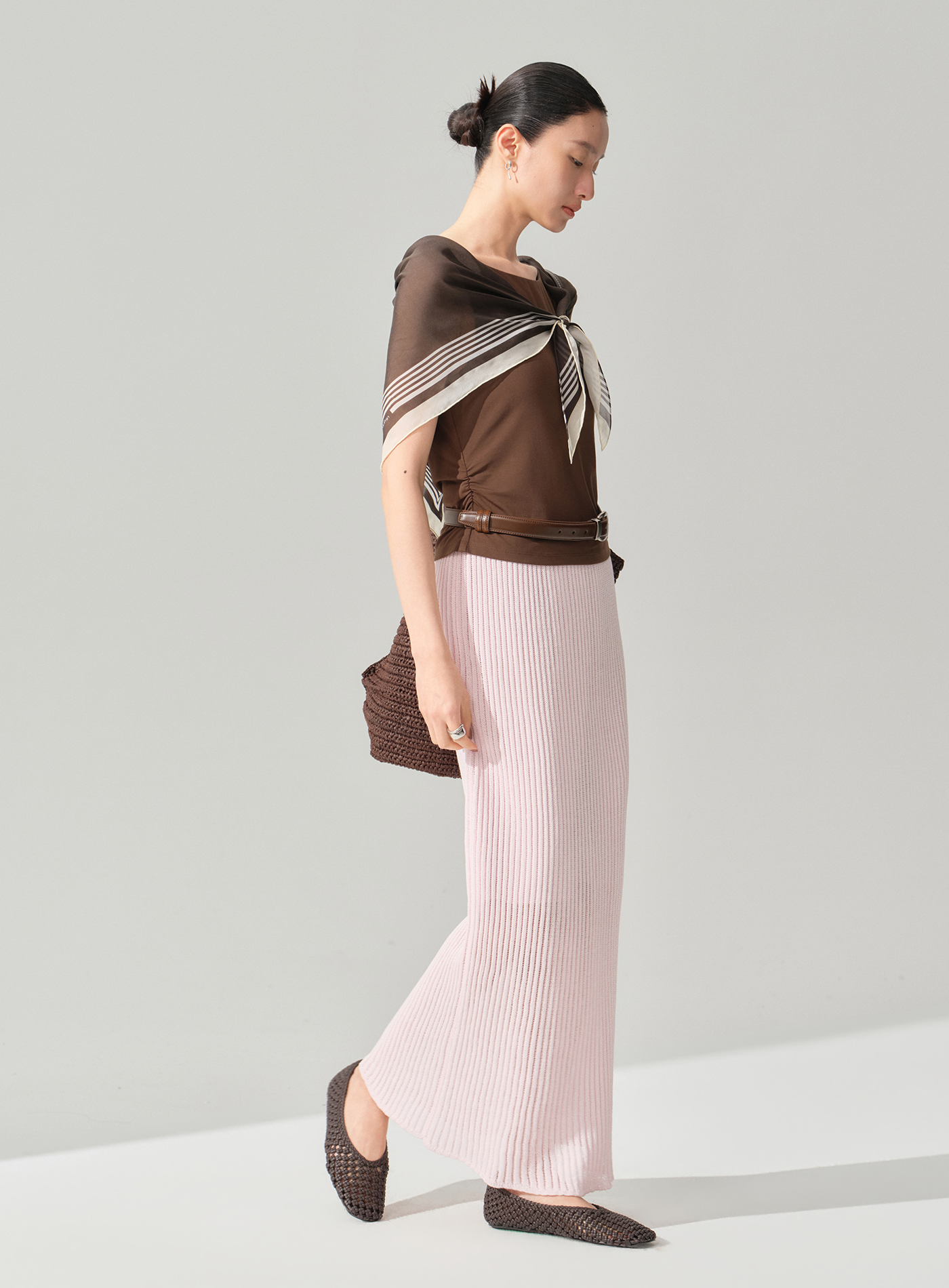 - 以簡約直身裙型為基礎,呈現線條流暢俐落的輪廓,不挑身形且具高度包容度
