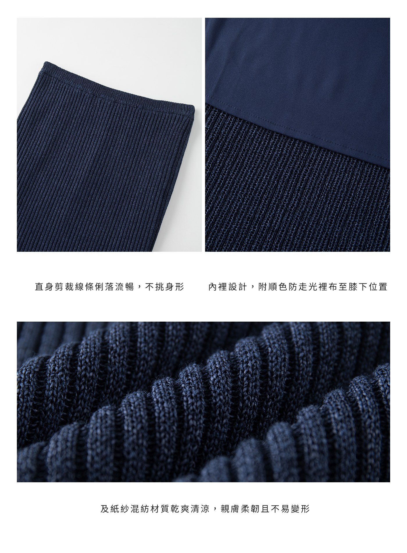 - 內附順色防走光裡布延伸至膝下位置,於行走與活動時帶來安心感