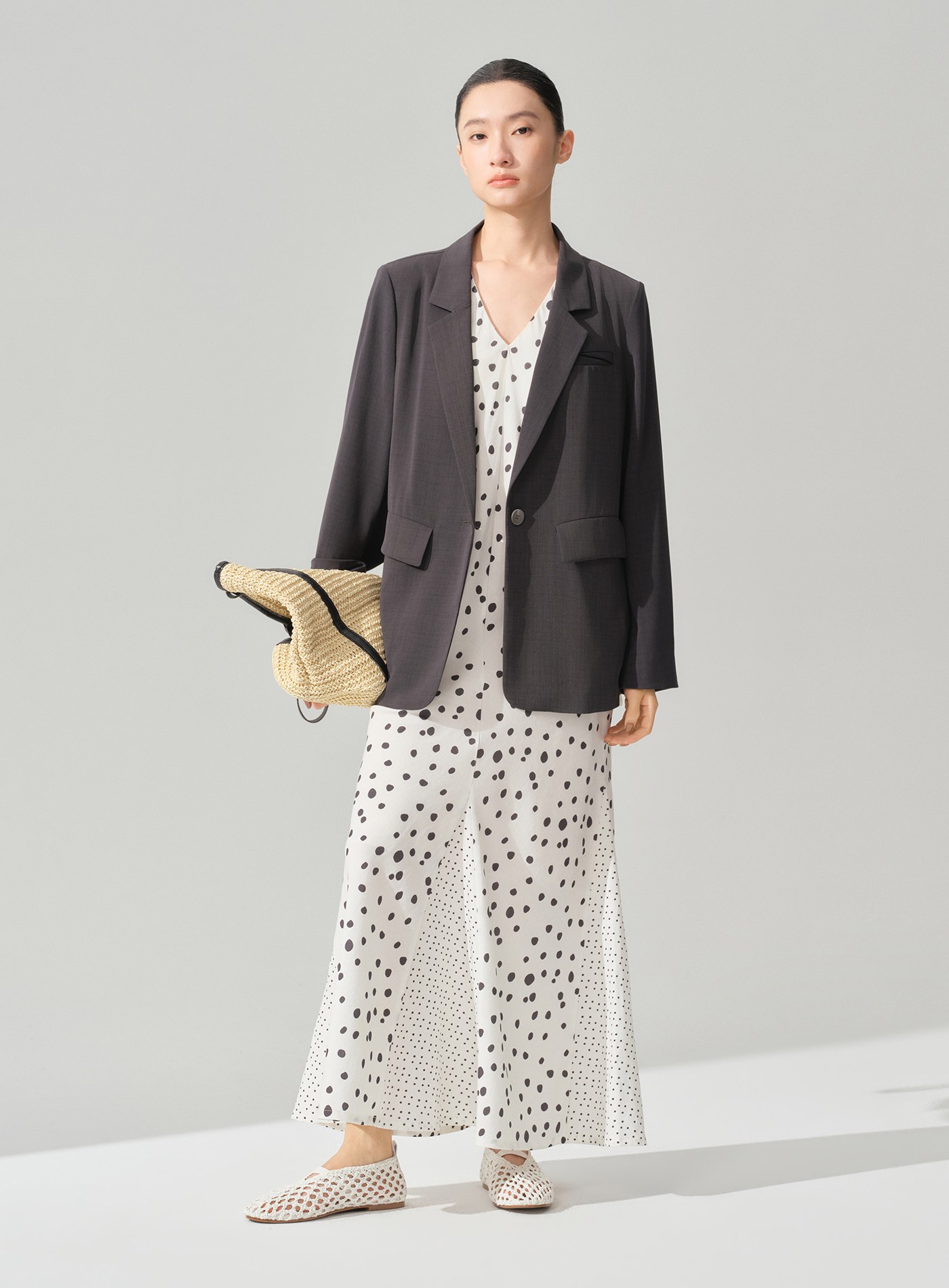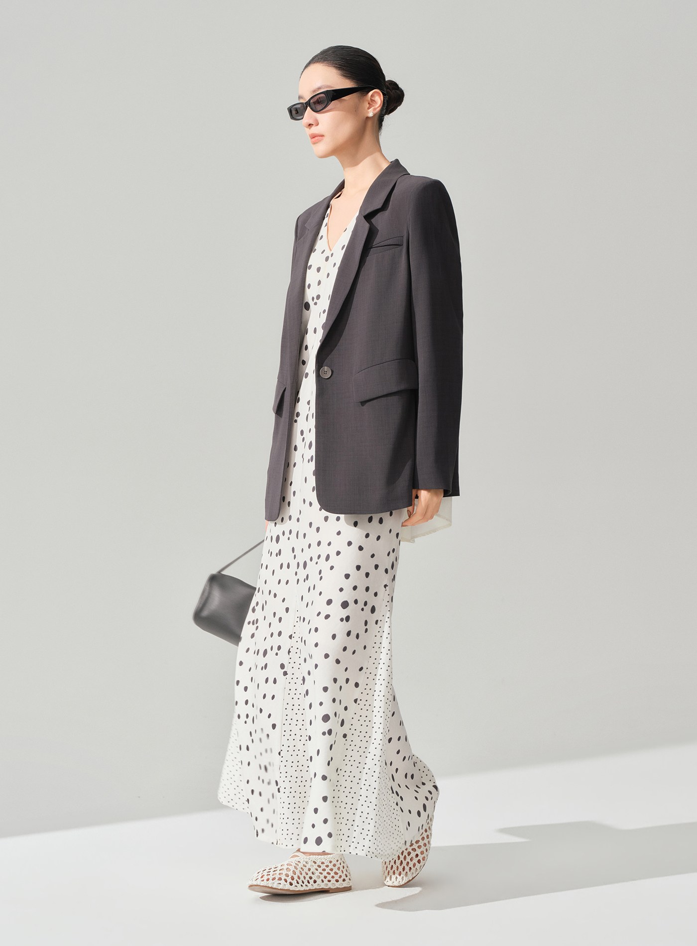 - 微廓形剪裁搭配落肩設計,柔化肩部線條並提升版型包容度,對多種身形皆友善,呈現慵懶而不失結構的氣質