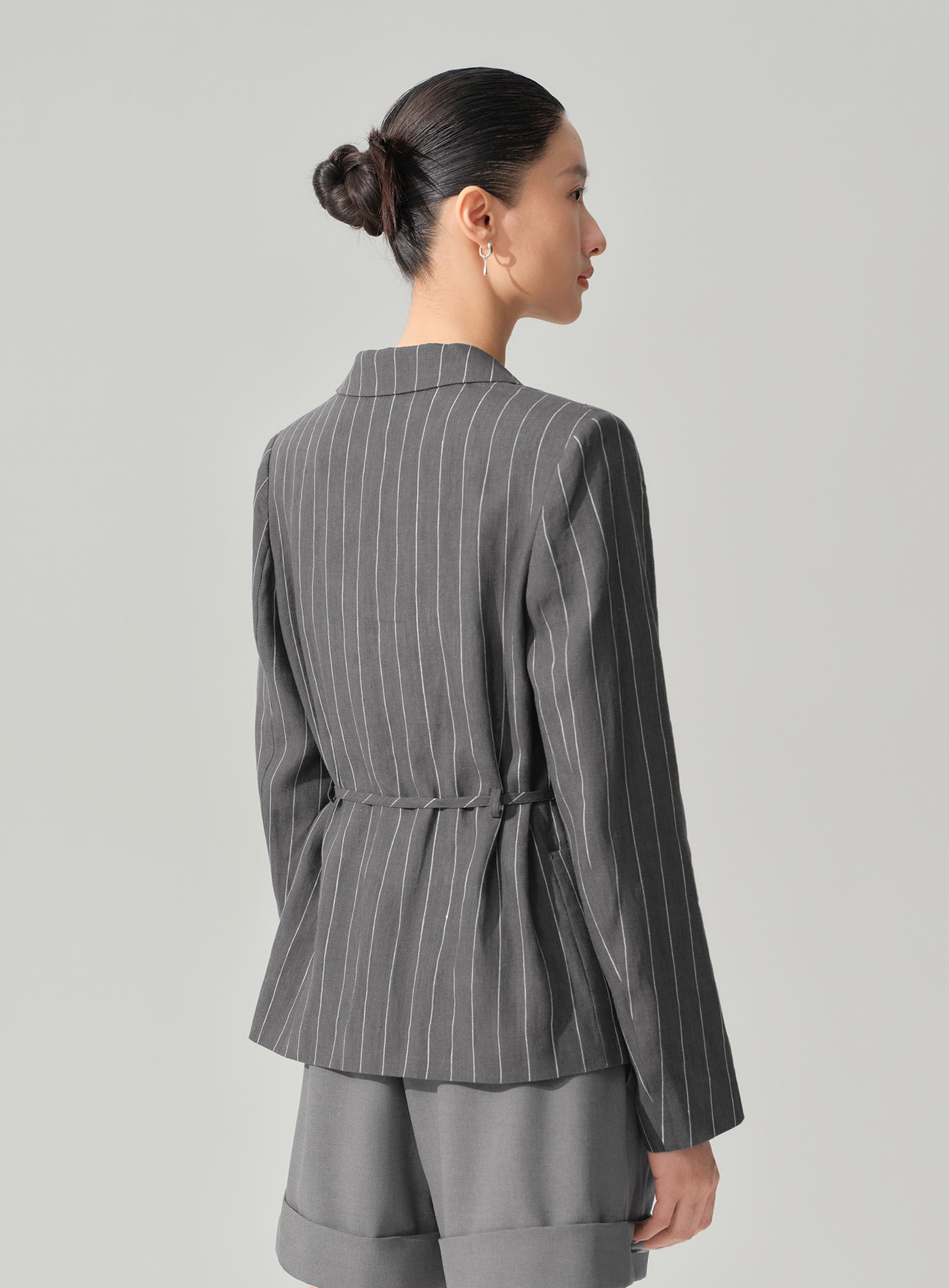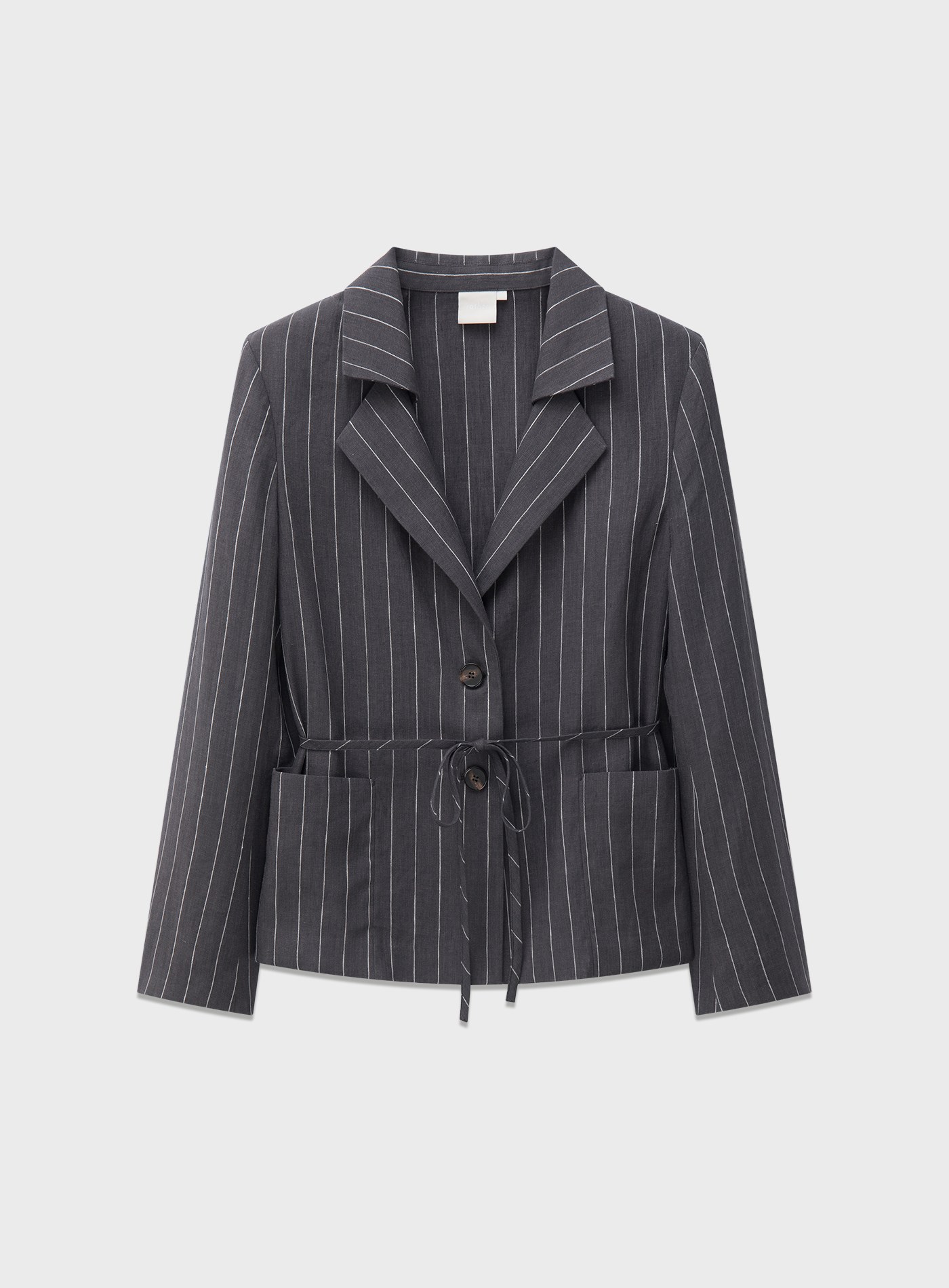 - 腰帶可自由調節,收腰時勾勒女性線條,敞開穿著則呈現自然鬆弛的現代輪廓