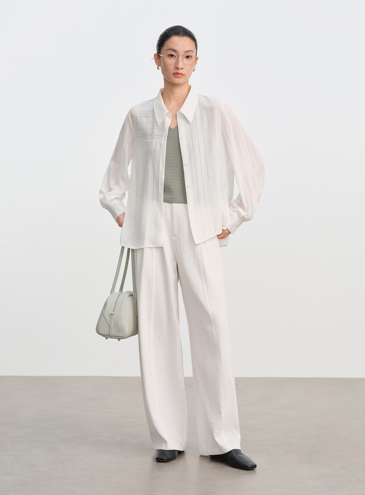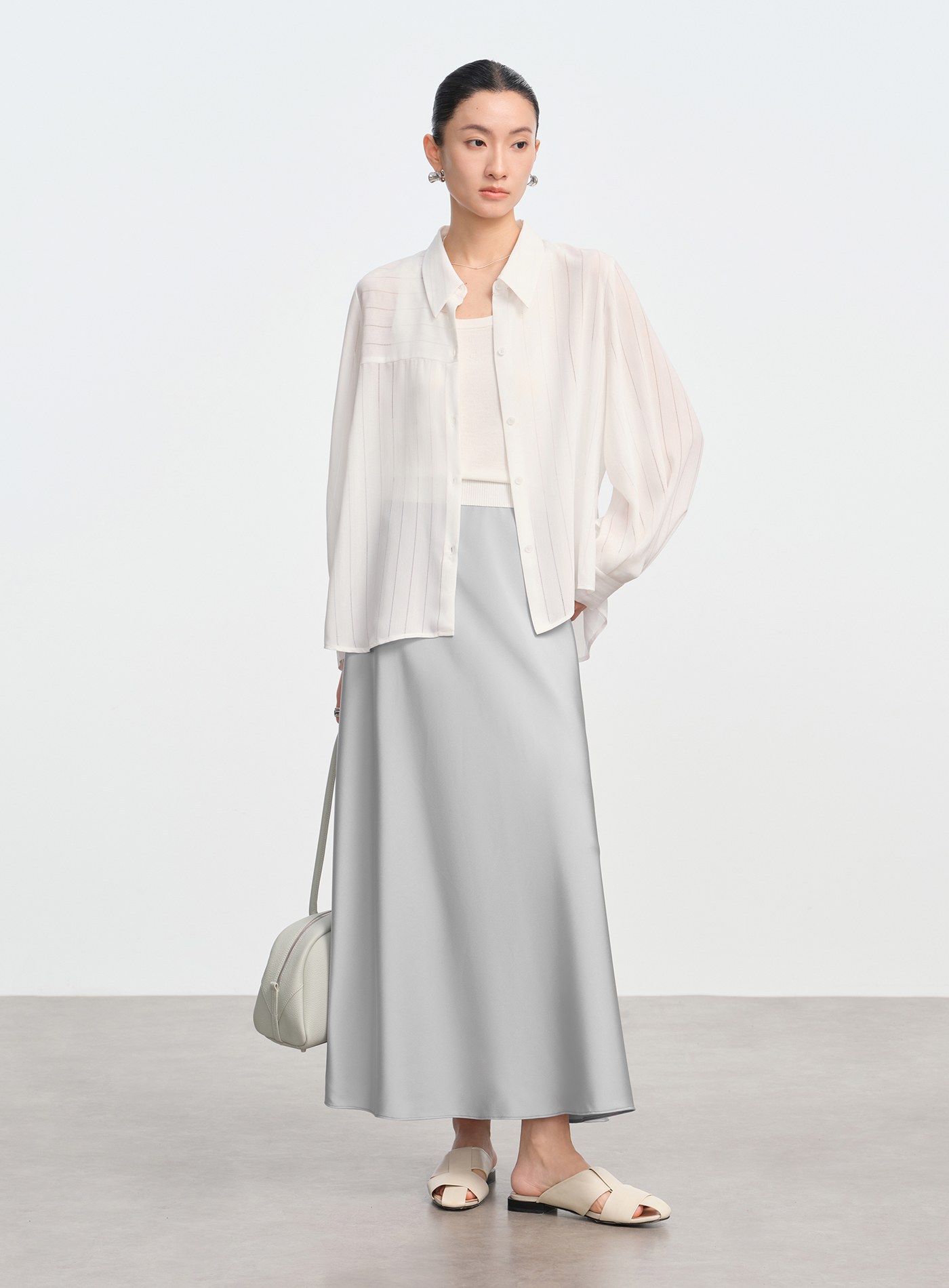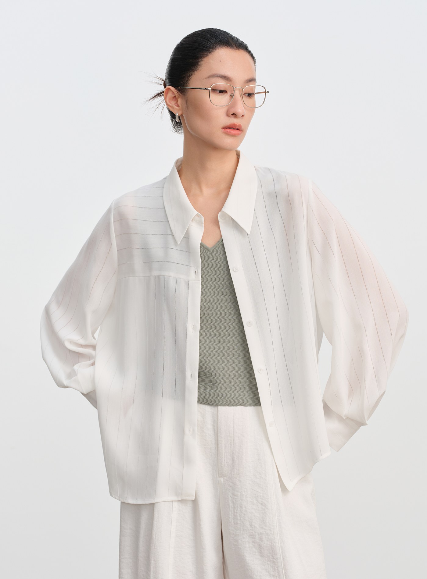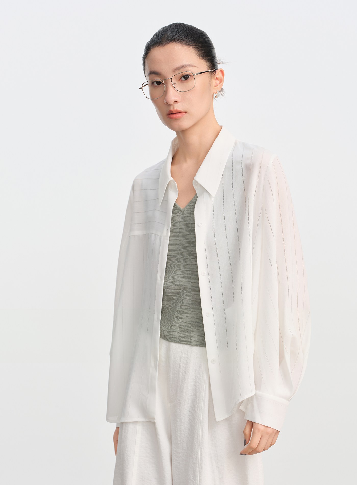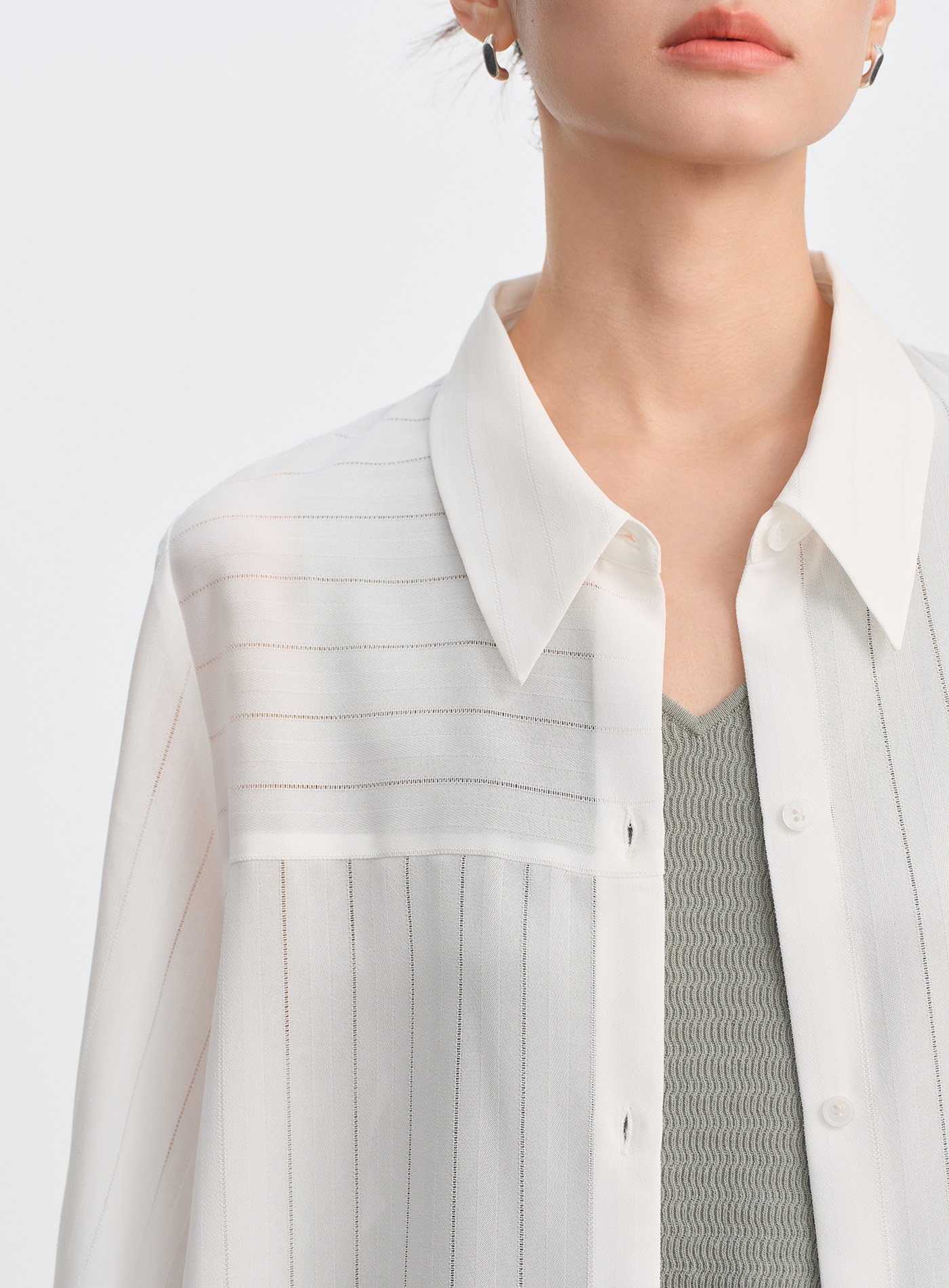 絲光棉微透長袖襯衫$63 USD