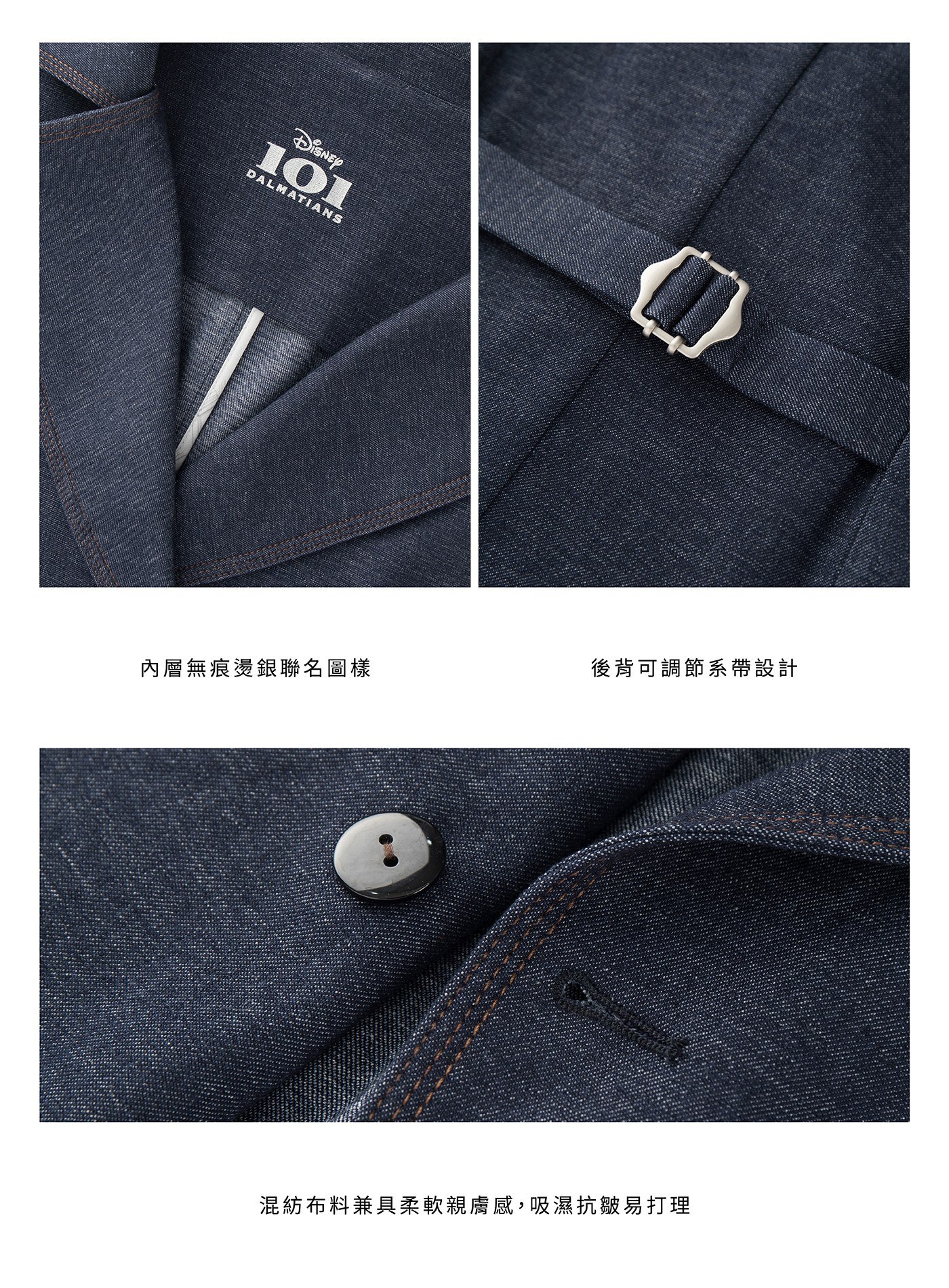 - 內裡藏入 DISNEY 聯名巧思——倫敦街景印花裡布與後內領無痕燙銀 101忠狗聯名 印花,低調耐看,保有收藏性