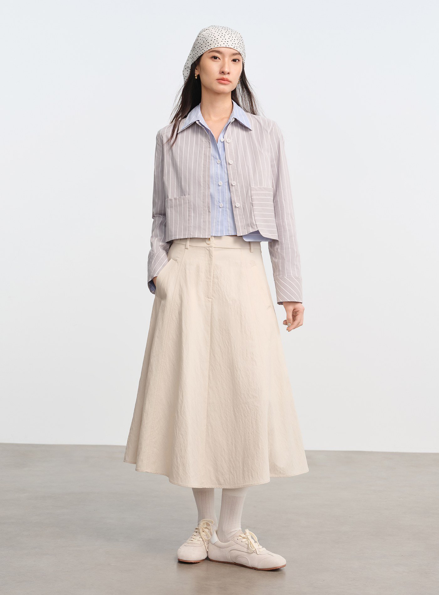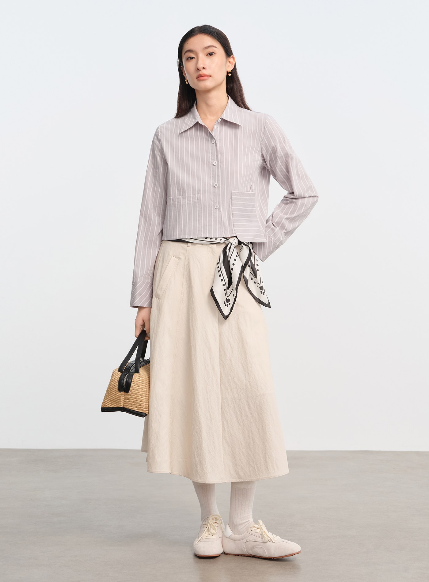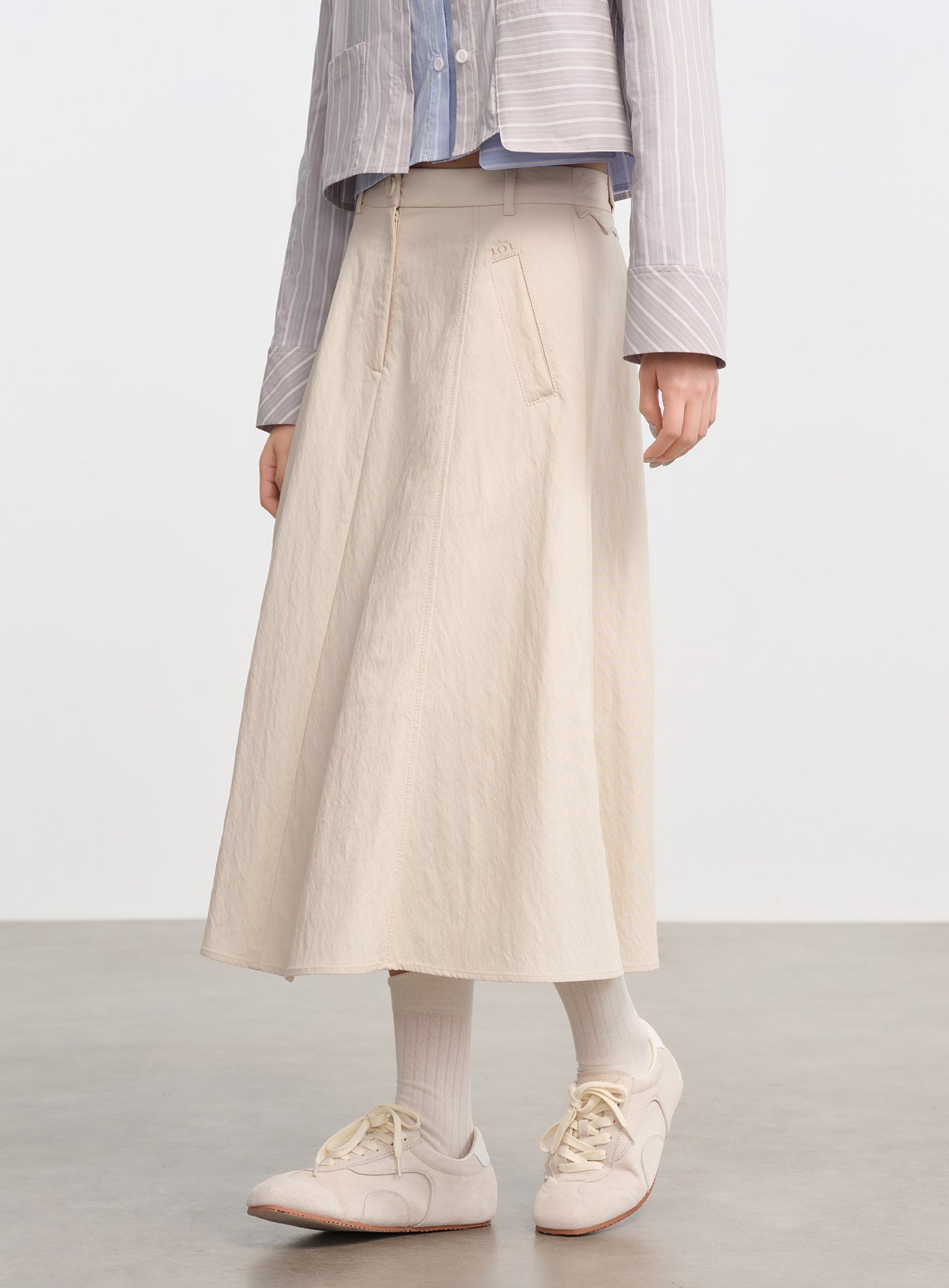 • A 字剪裁修飾胯部與腿部線條,視覺輕盈卻不失份量感