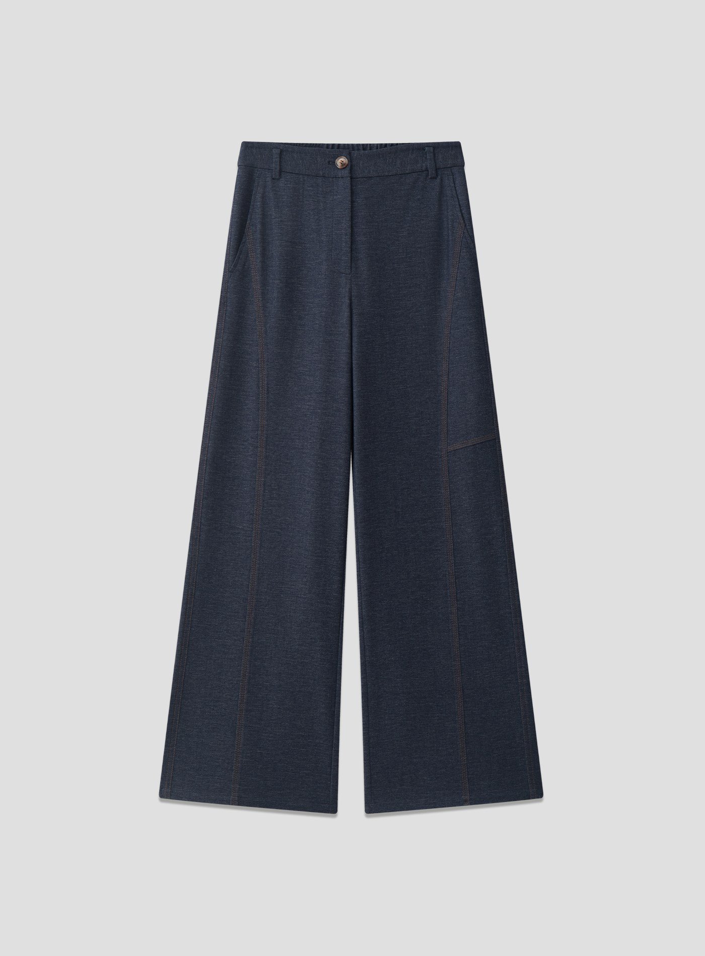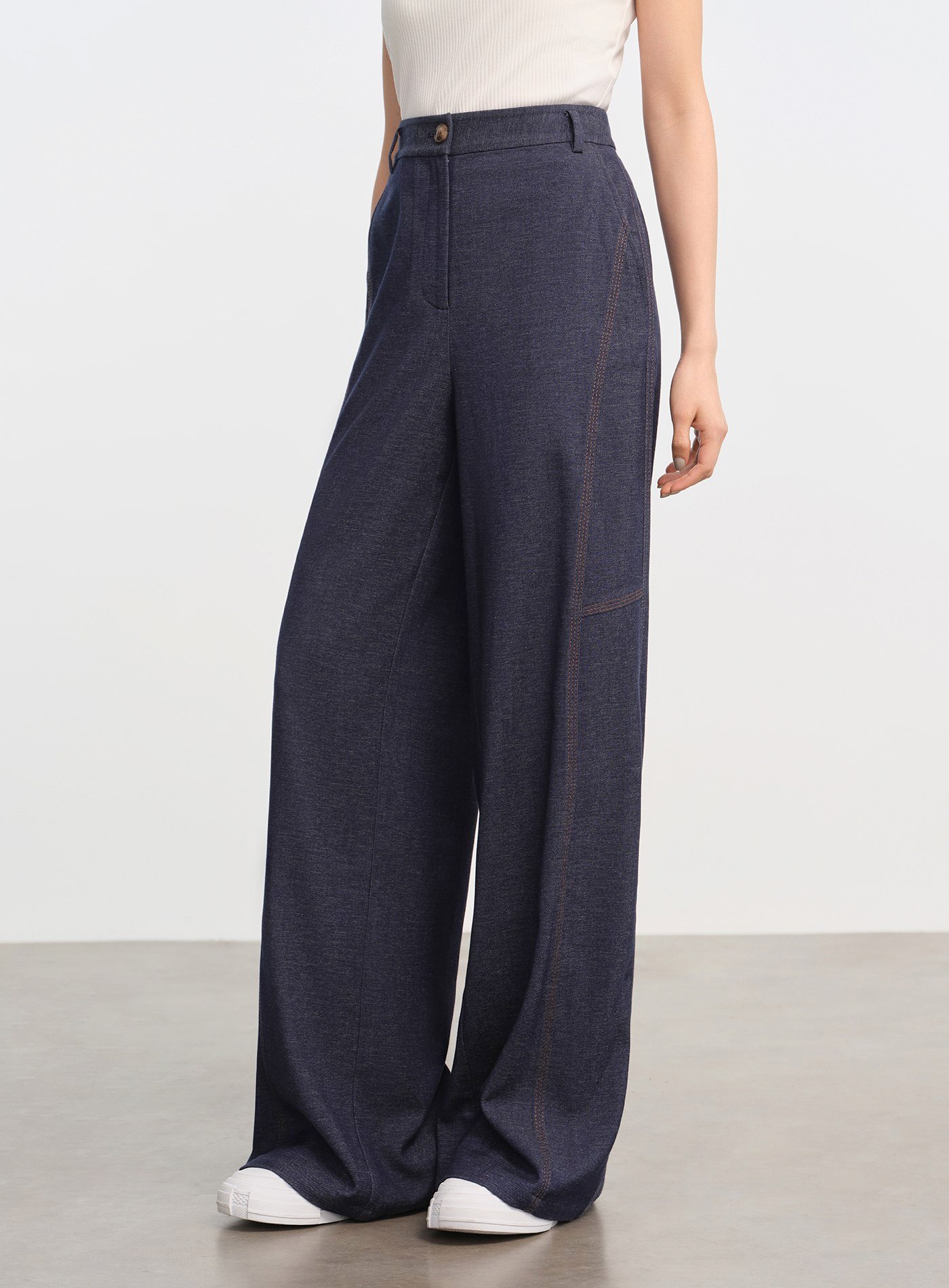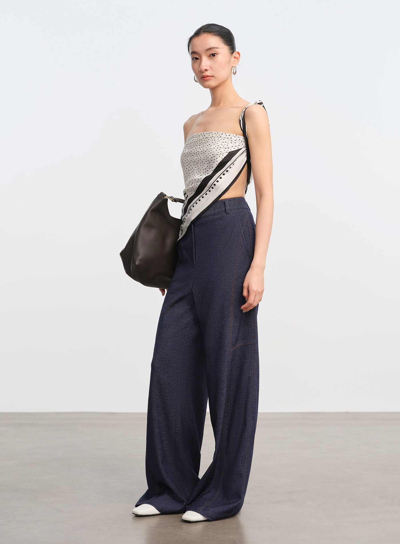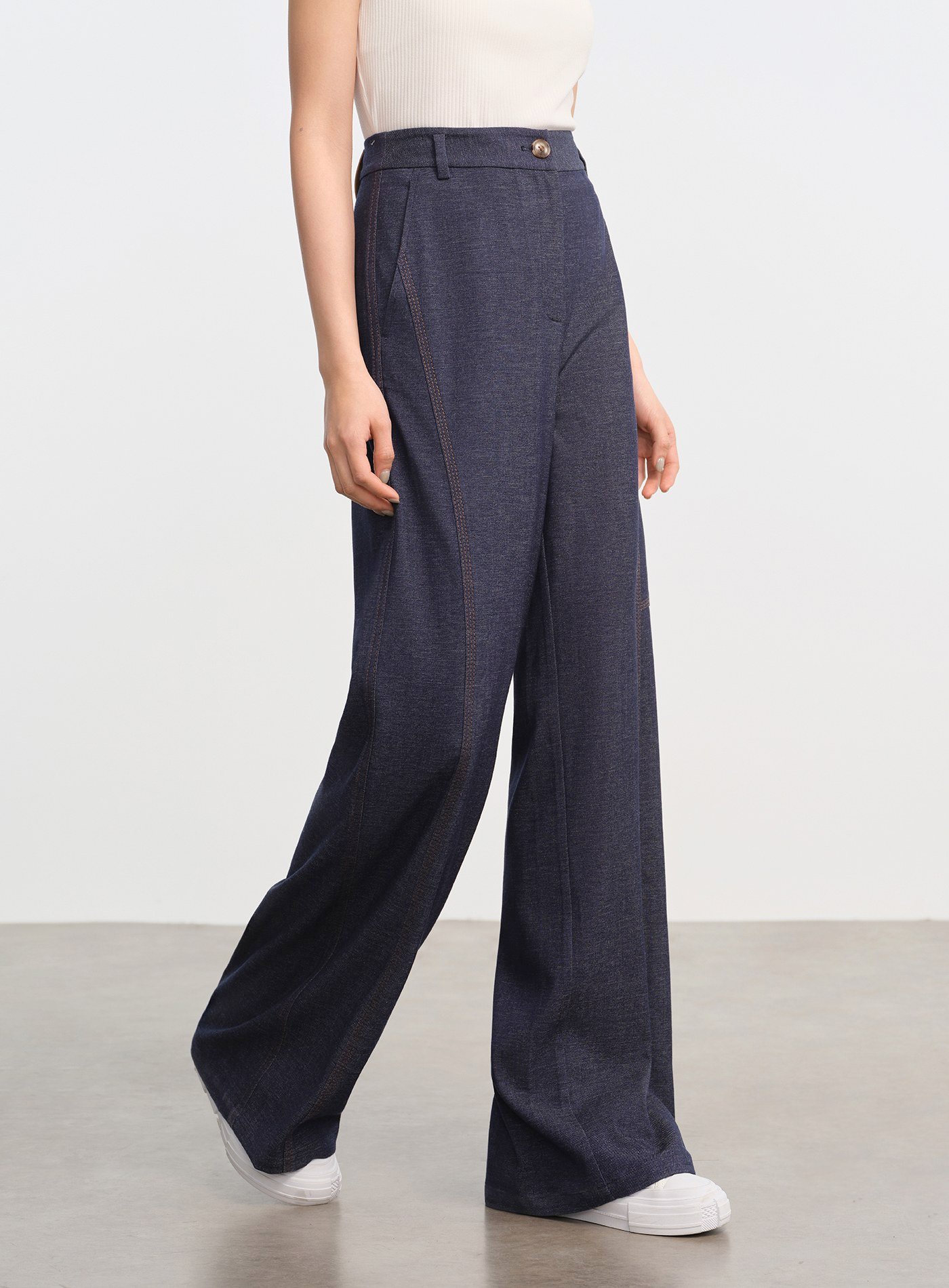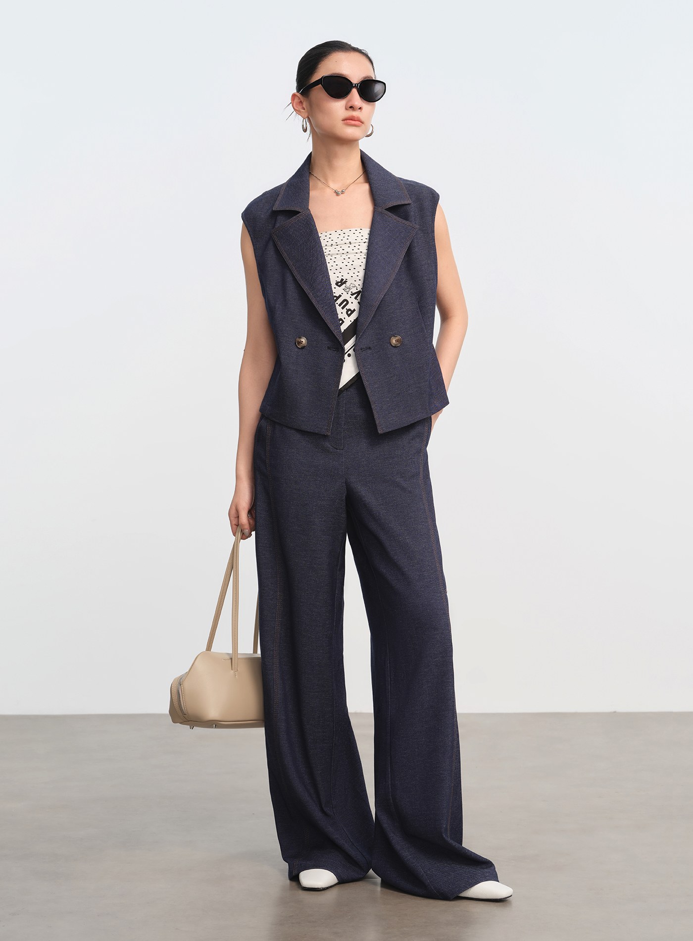 - 仿牛仔織造工藝結合西裝褲輪廓,讓牛仔不再只是休閒單品,而是日常也能駕馭的造型核心