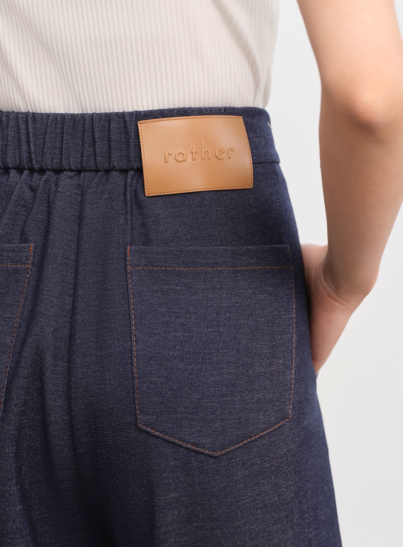 - 以寬鬆闊腿版型拉長整體比例,垂墜面料自然修飾腿型;前片俐落鈕扣設計維持造型完整度,後腰鬆緊則兼顧穿脫便利與舒適度