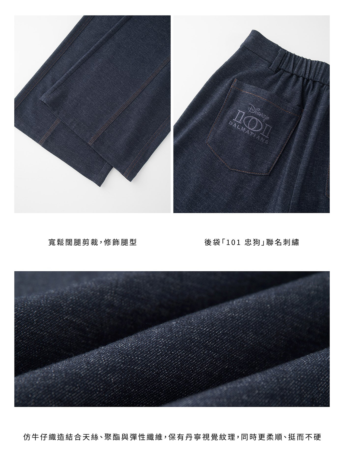 - 細節中藏有 DISNEY 聯名巧思——後袋低調繡上「101 忠狗」刺繡,搭配後腰皮質貼標,既保有聯名的趣味記憶點,又不影響整體穿搭的成熟度