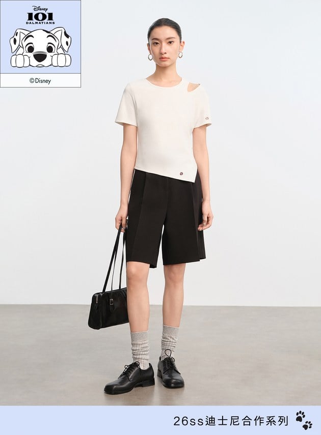 - 單側褲縫以毛邊處理點綴,為基礎褲型增添層次與個性