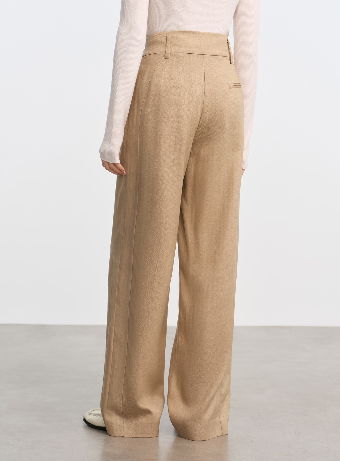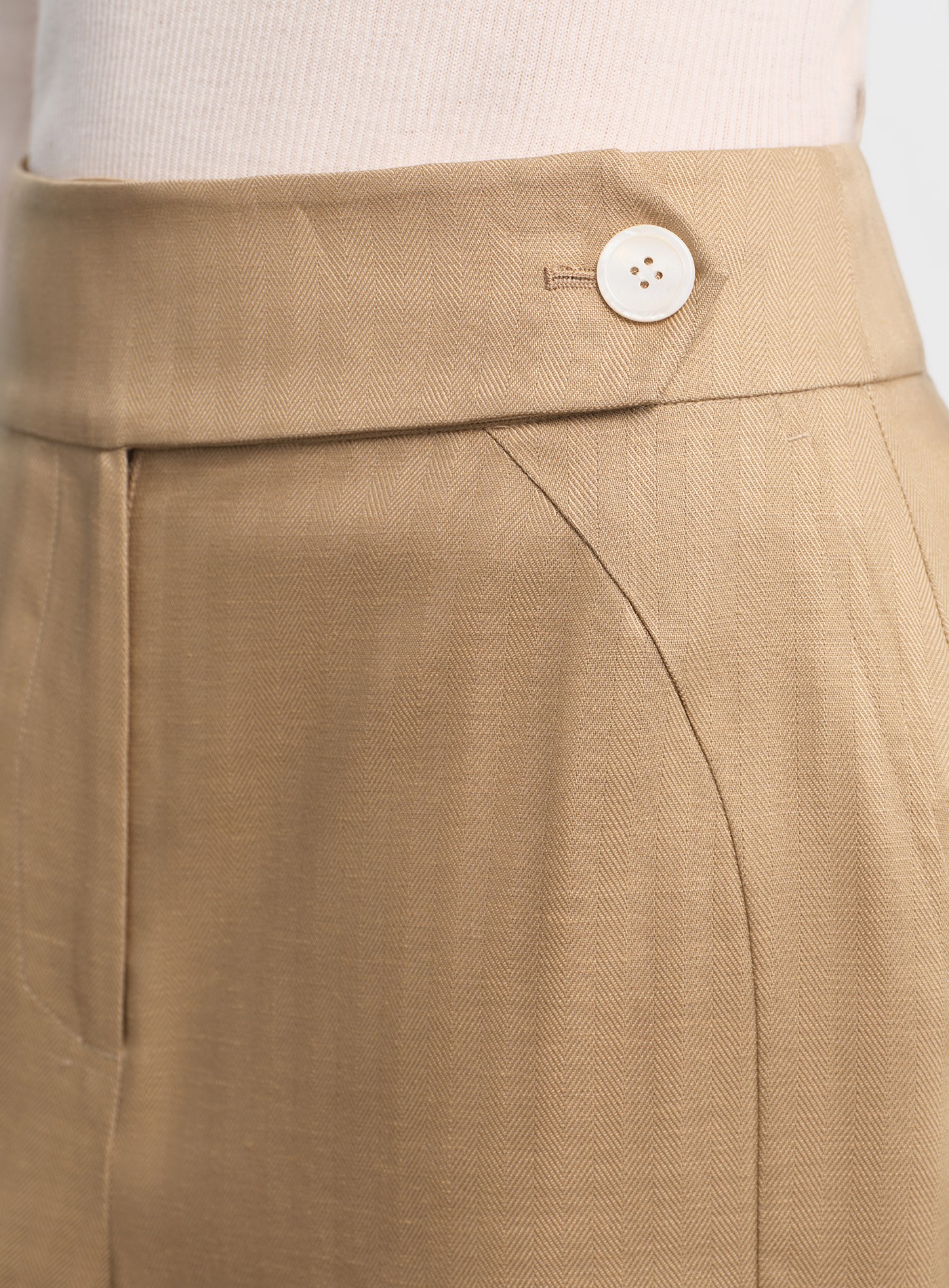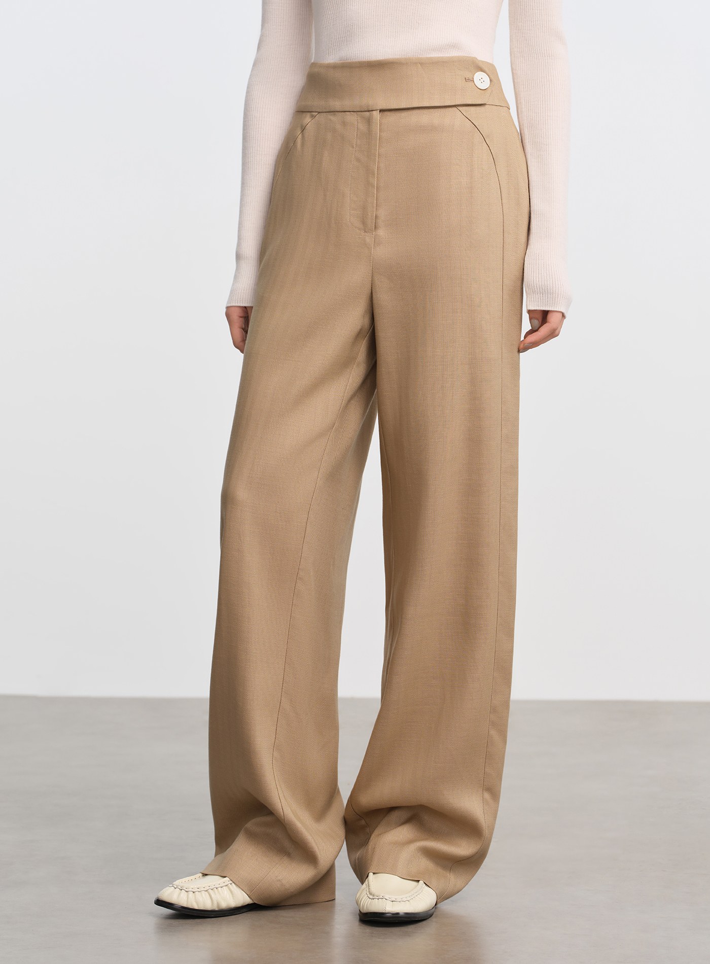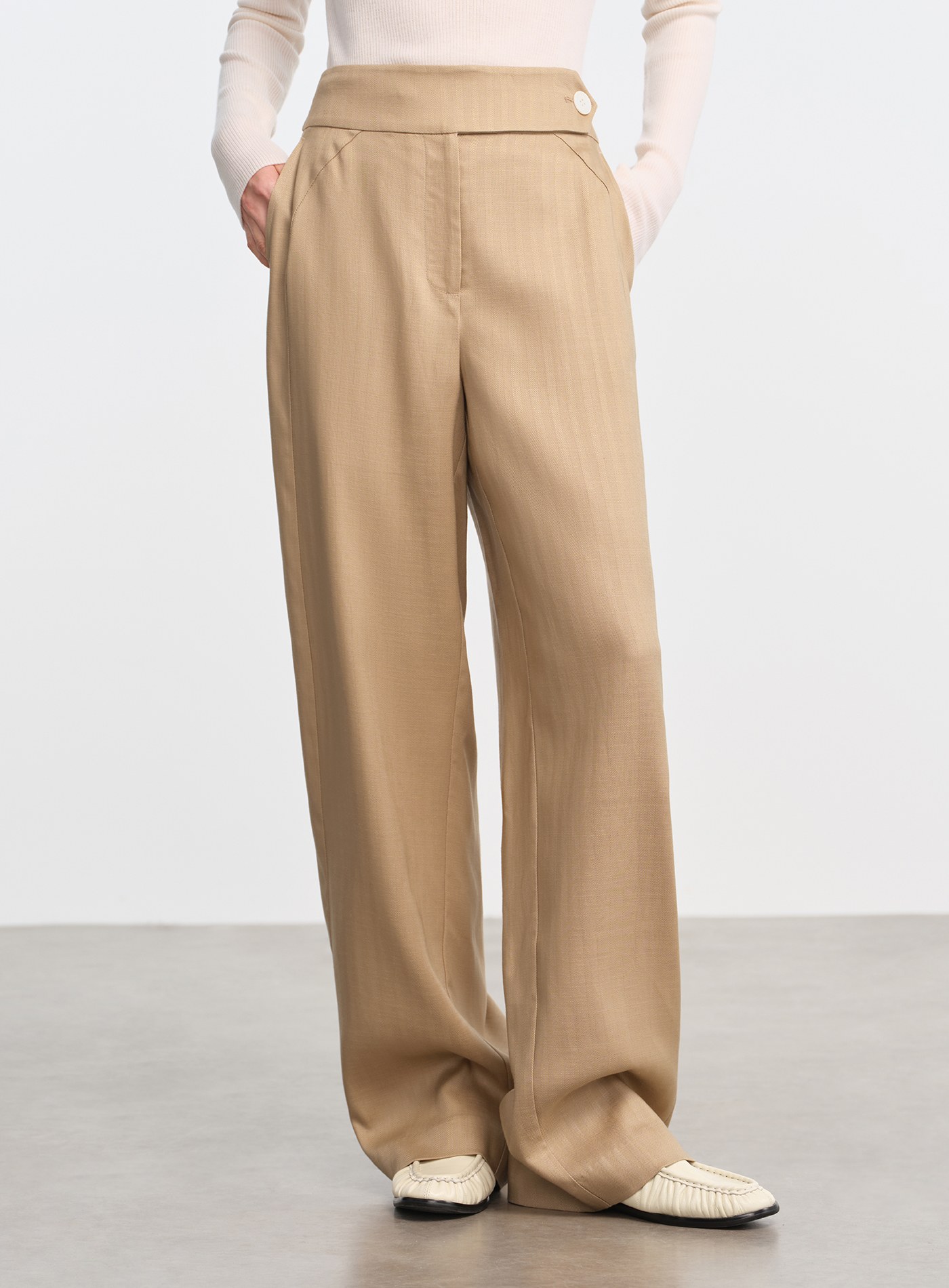 - 天絲亞麻混紡布料柔潤親膚,兼具垂感與挺度,四季皆宜