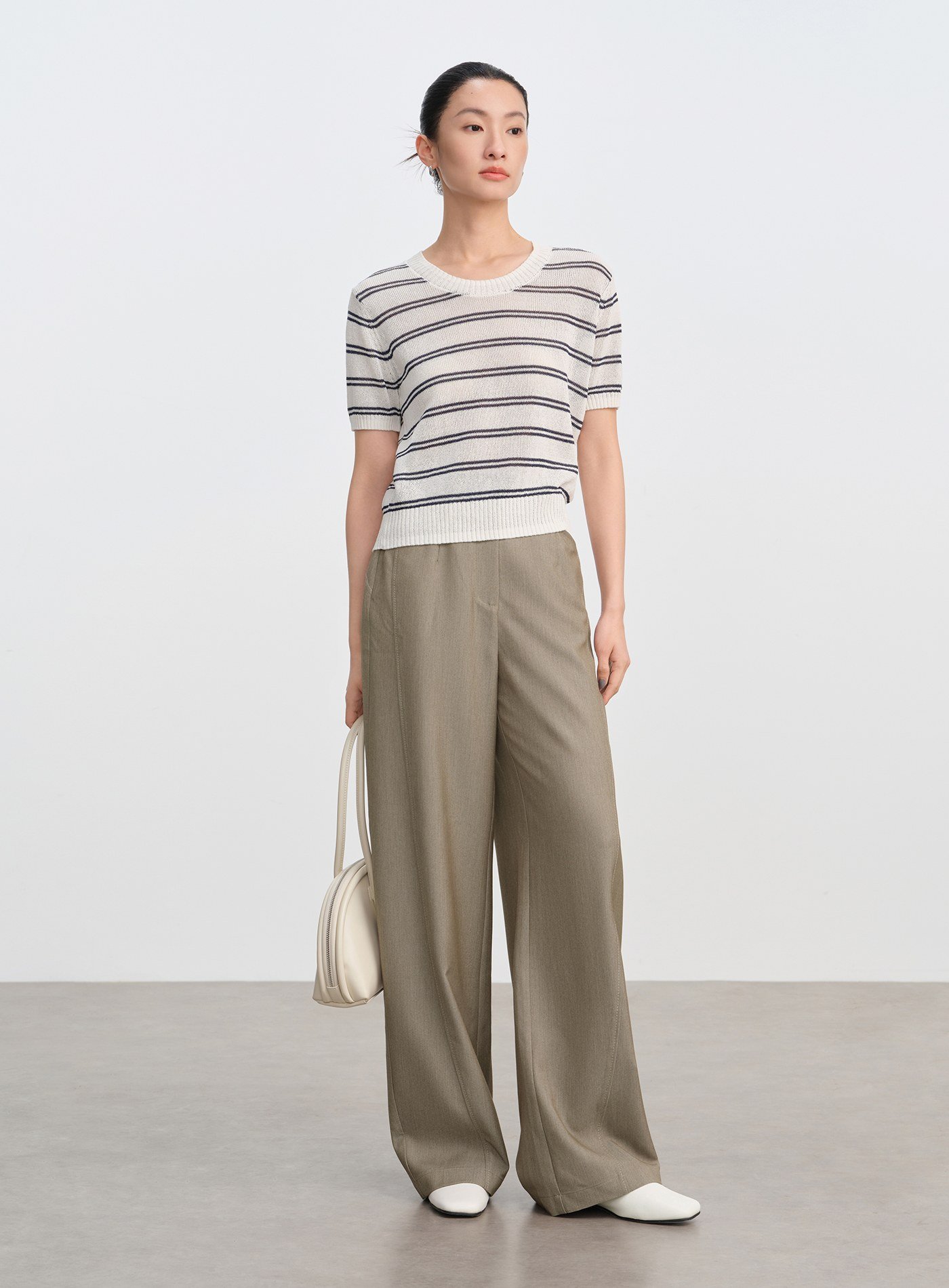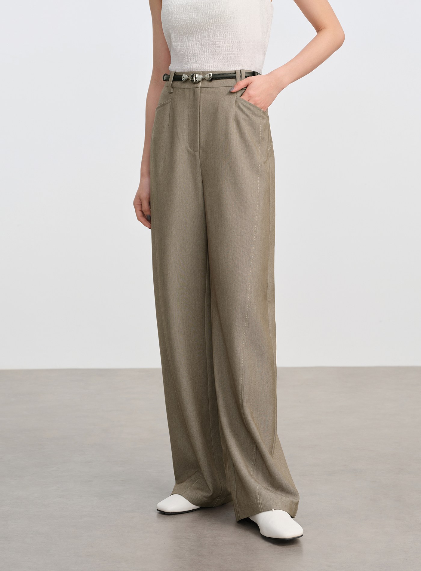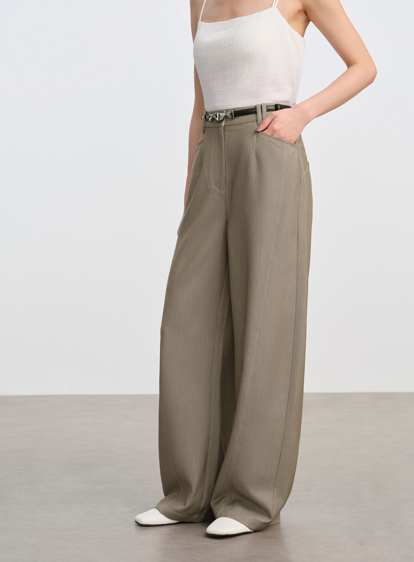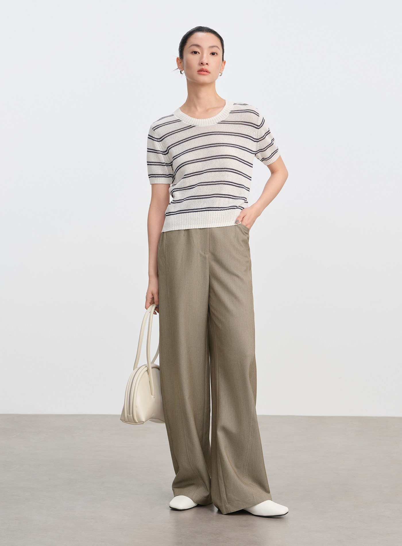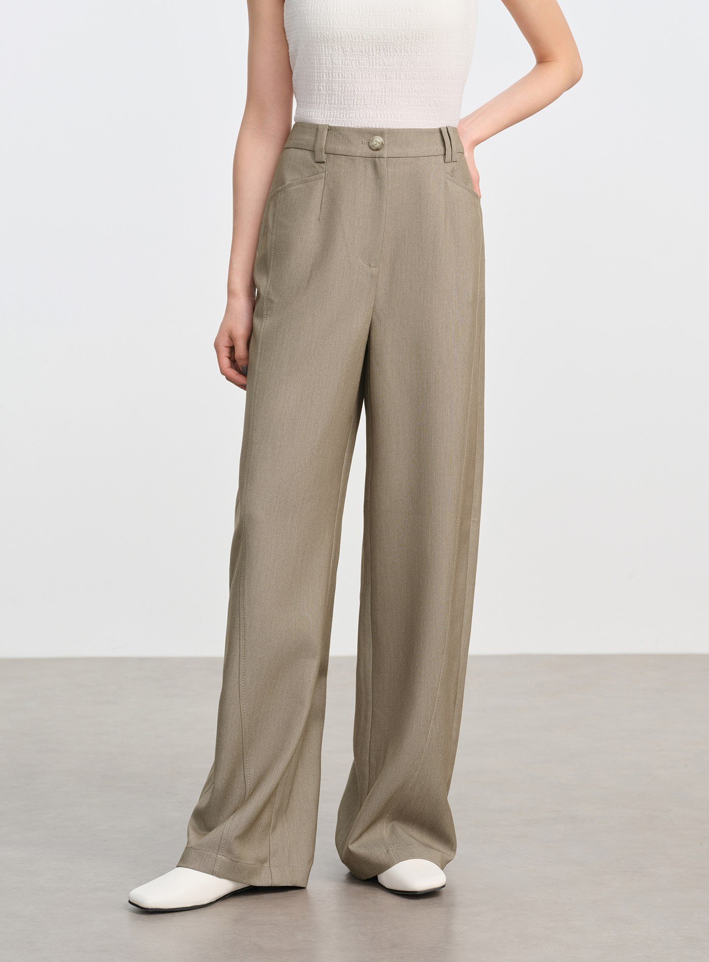 • 彎刀褲型前片弧形分割線勾勒立體輪廓,修飾腿型、顯瘦塑形