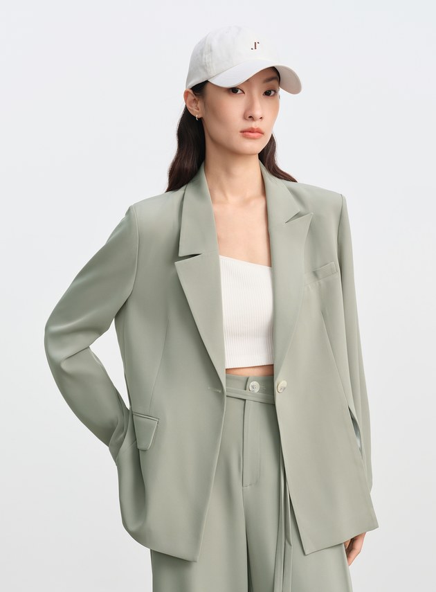 - 採用經典微彈霧面西裝面料,具備 UPF 50+ 防曬與涼感機能,擁有良好垂墜度不易起皺變形