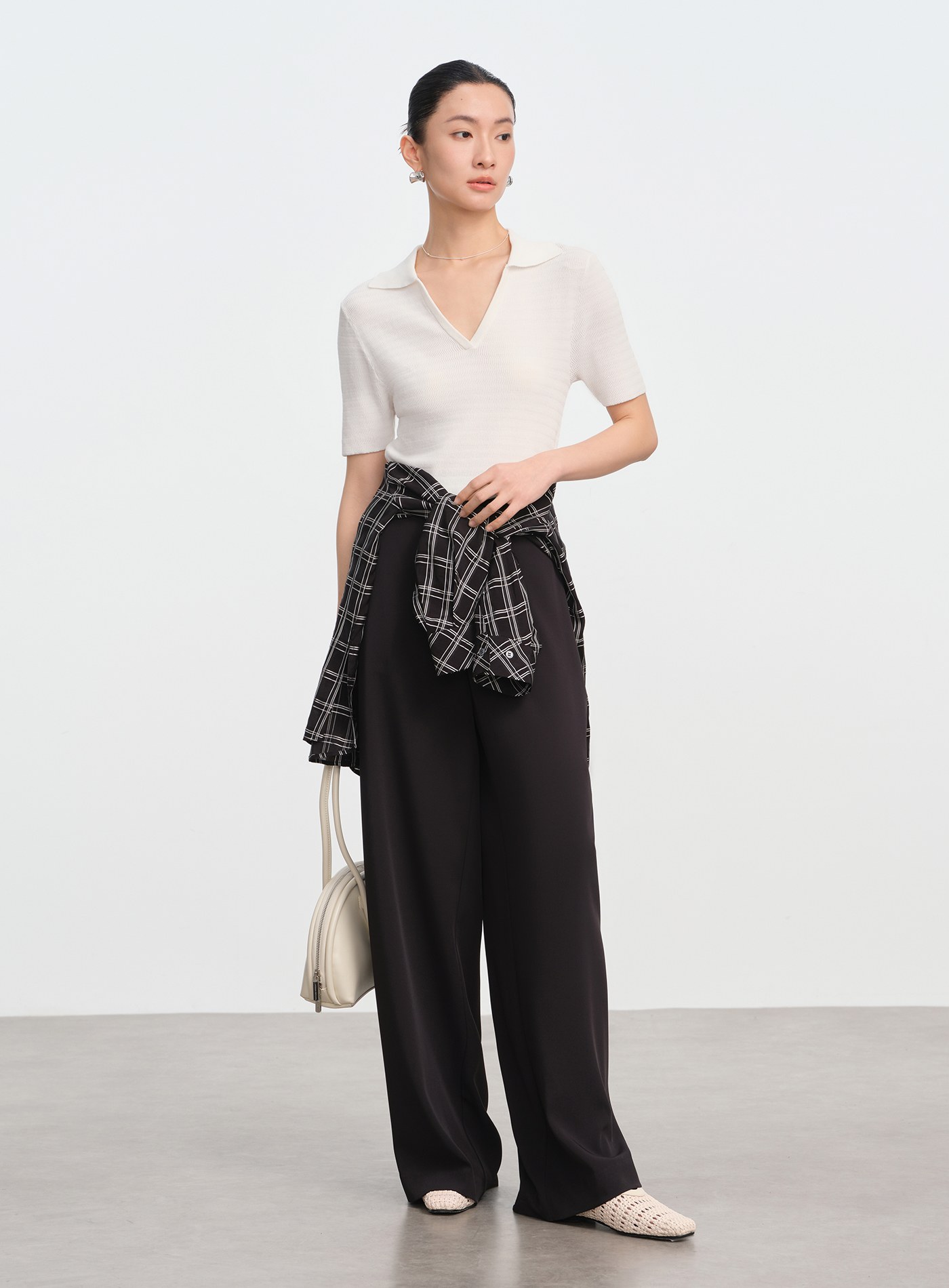 - 高腰闊腿剪裁有效拉長腿部比例,視覺顯高顯瘦,對多種身形皆友好