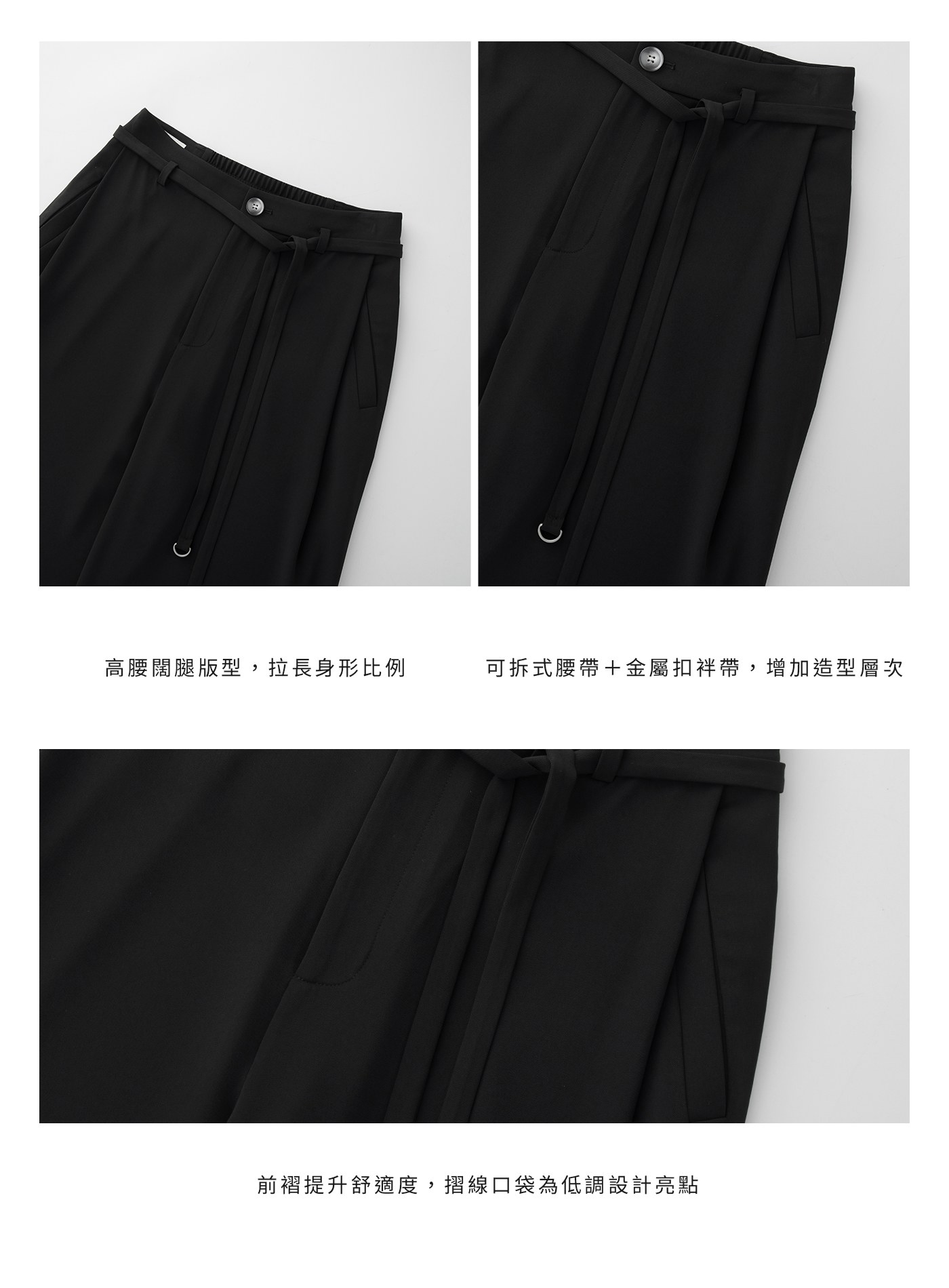 - 可拆式腰帶結合金屬扣袢帶設計,可強調腰線裝飾為造型增添層次