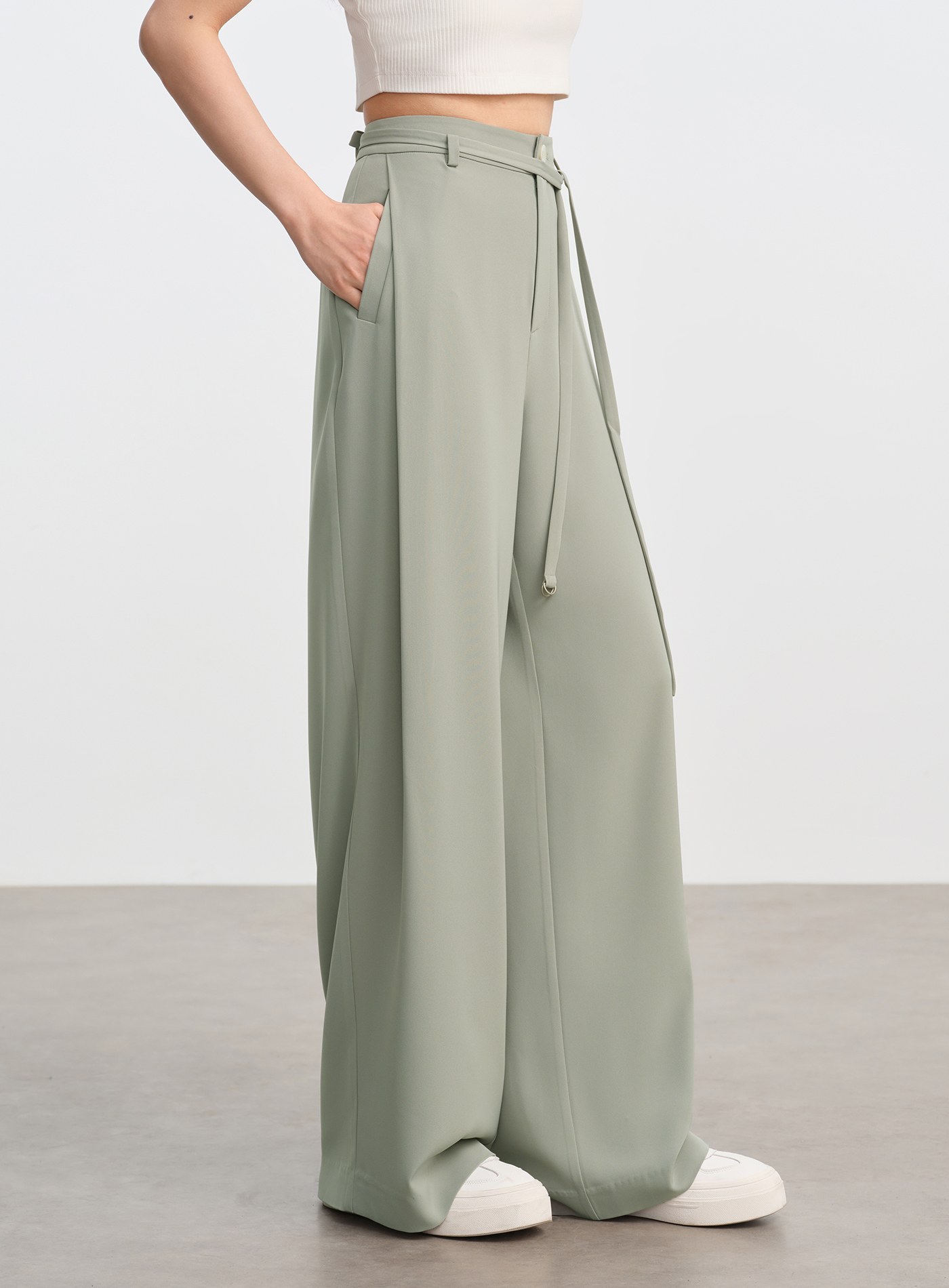 - 高腰闊腿剪裁有效拉長腿部比例,視覺顯高顯瘦,對多種身形皆友好