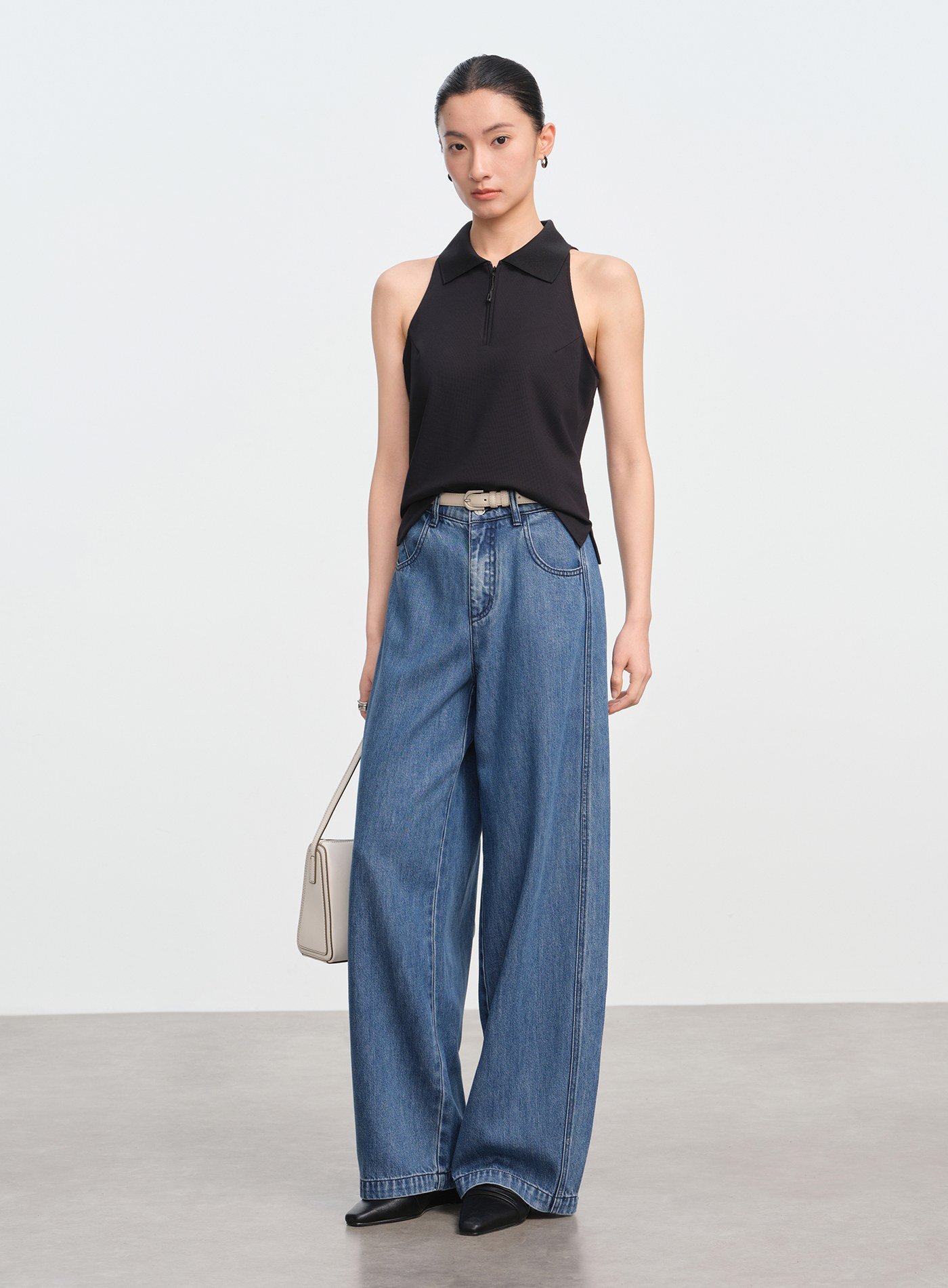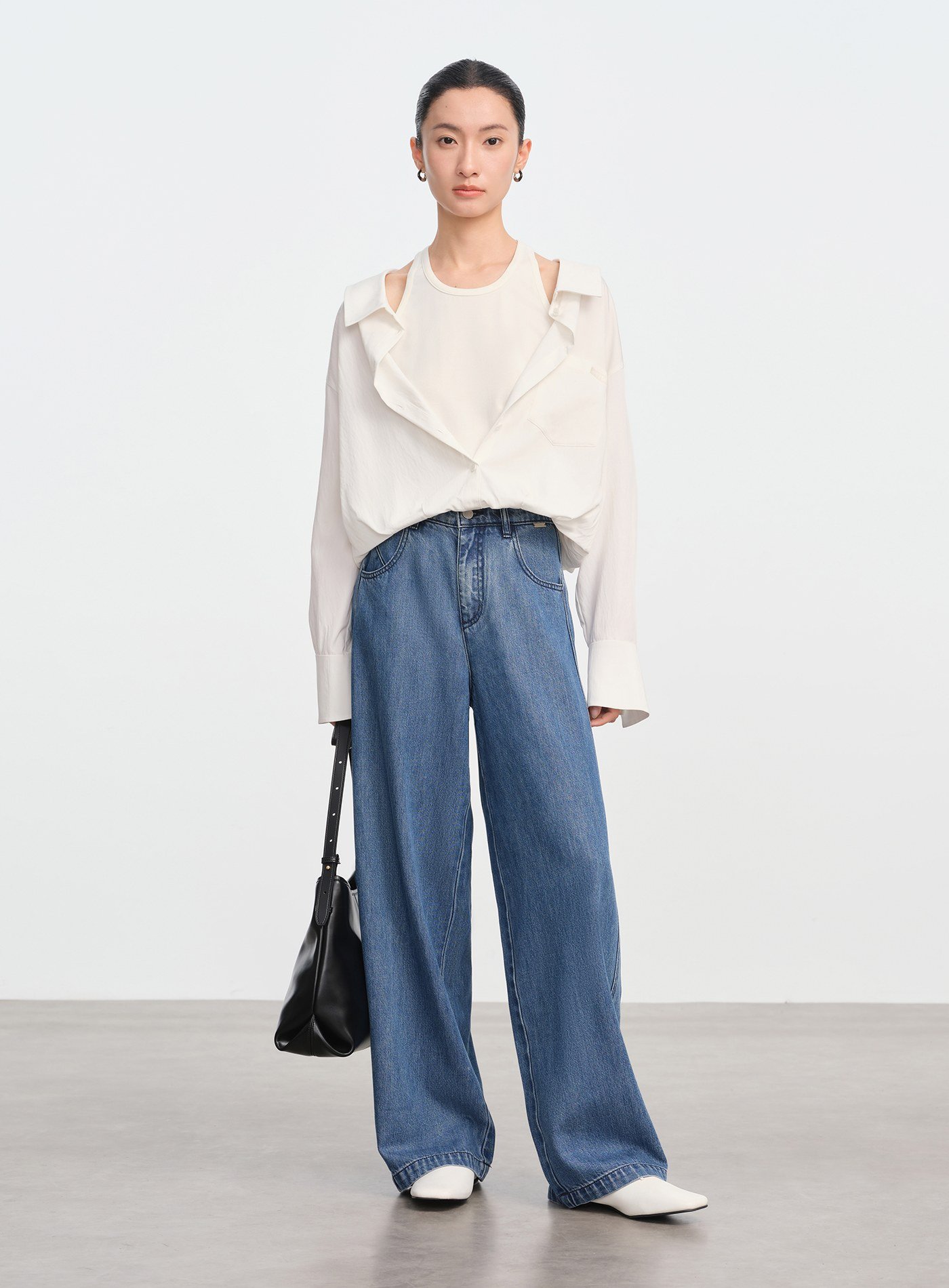 - 彎刀式闊腿剪裁自然勾勒腿型曲線,寬鬆廓形兼具慵懶與俐落感
