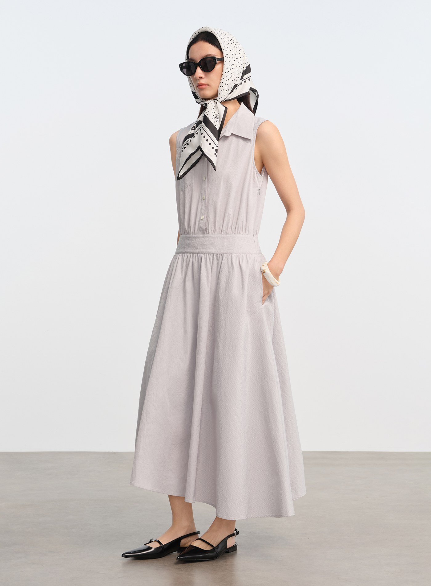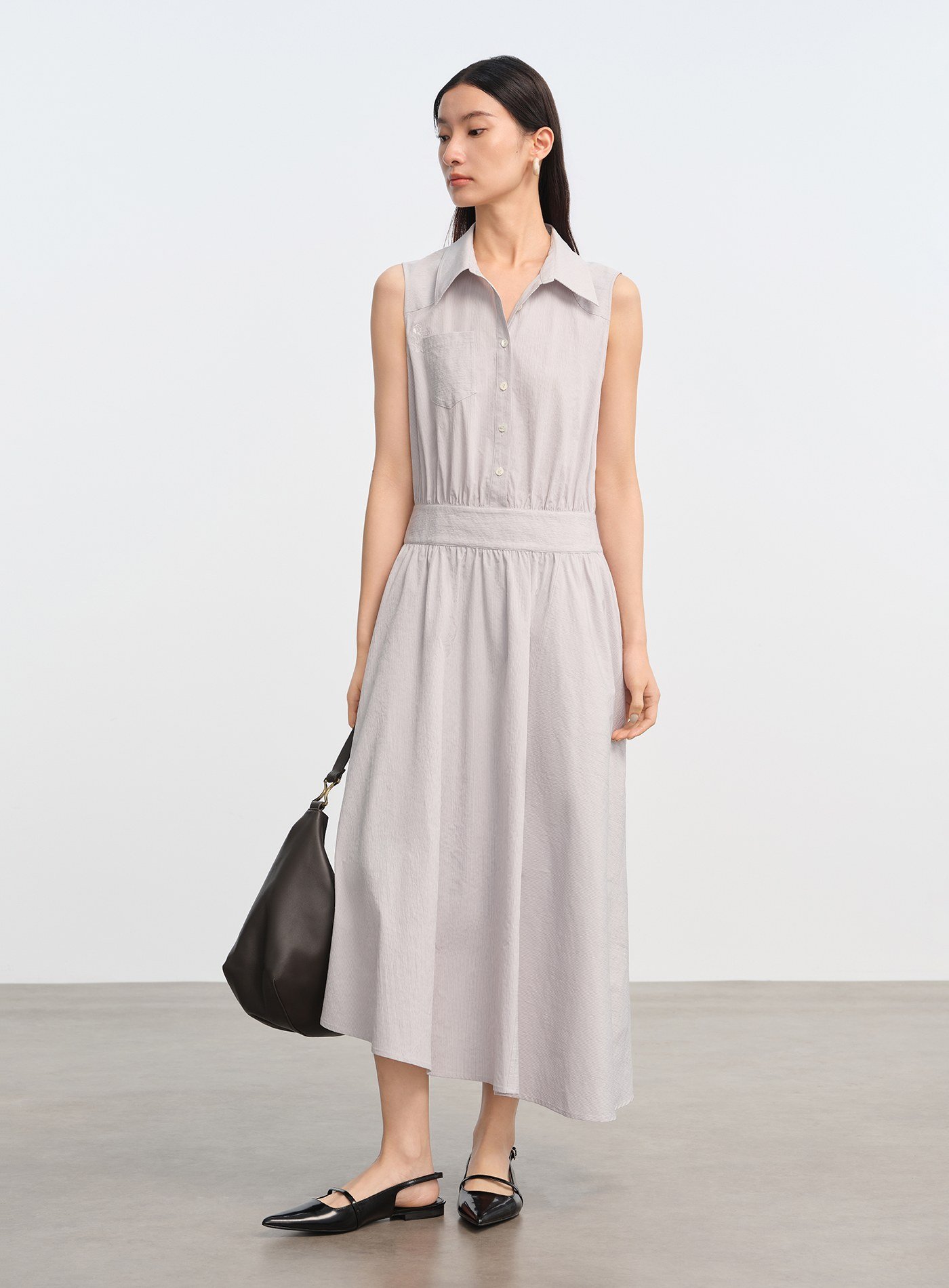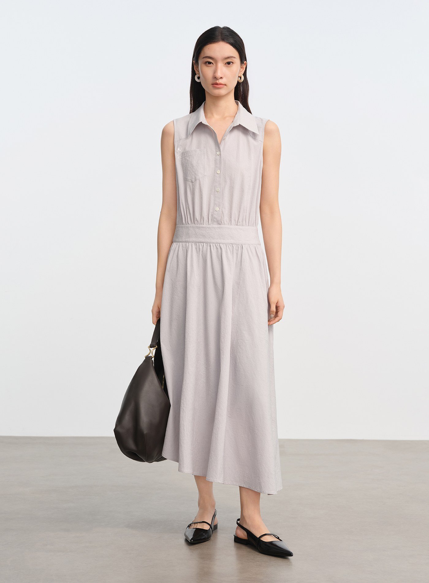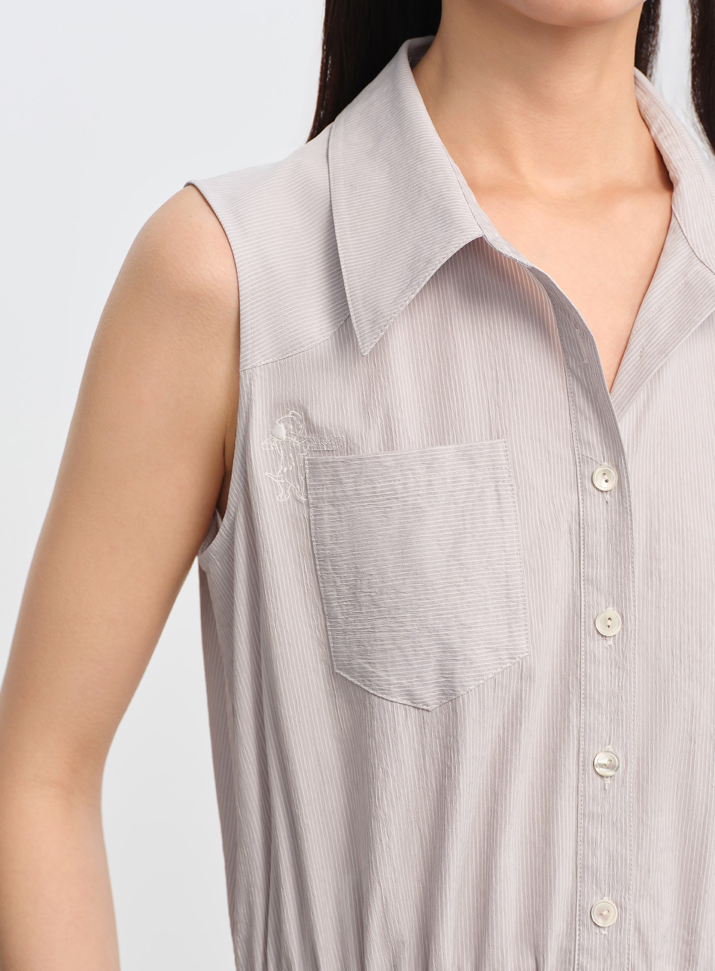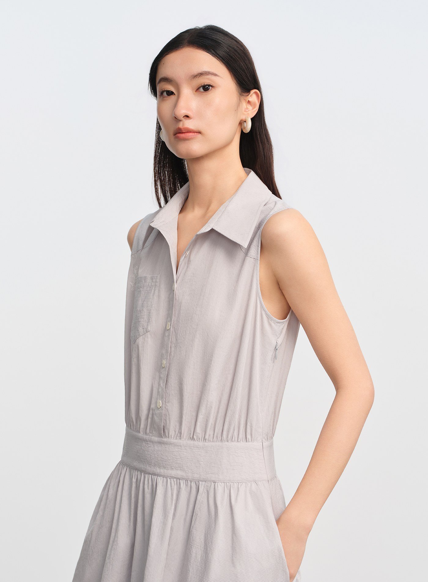 - 無袖襯衫式剪裁清爽俐落,單穿即有造型感,也適合搭配輕薄外套延伸穿搭季節
