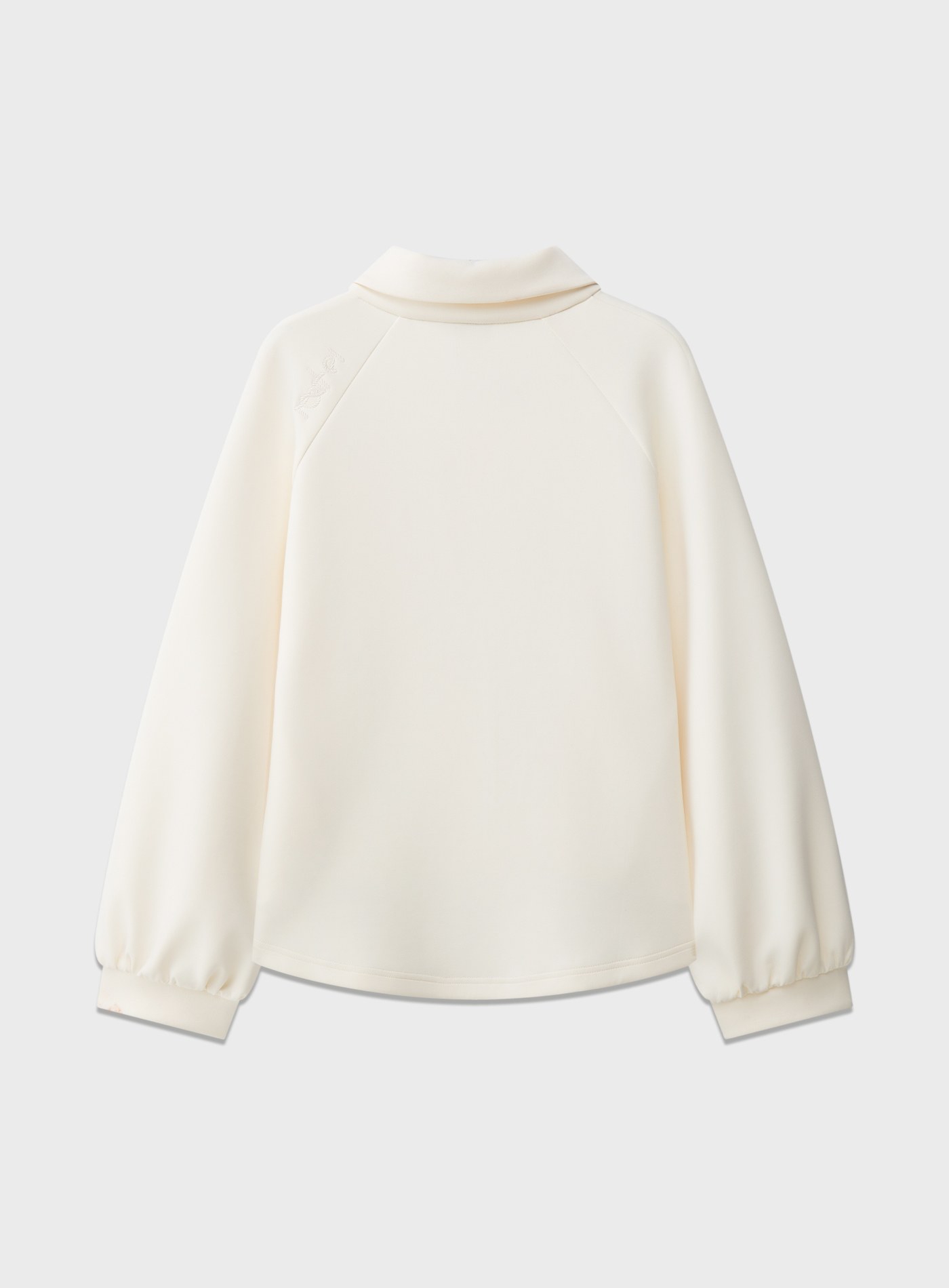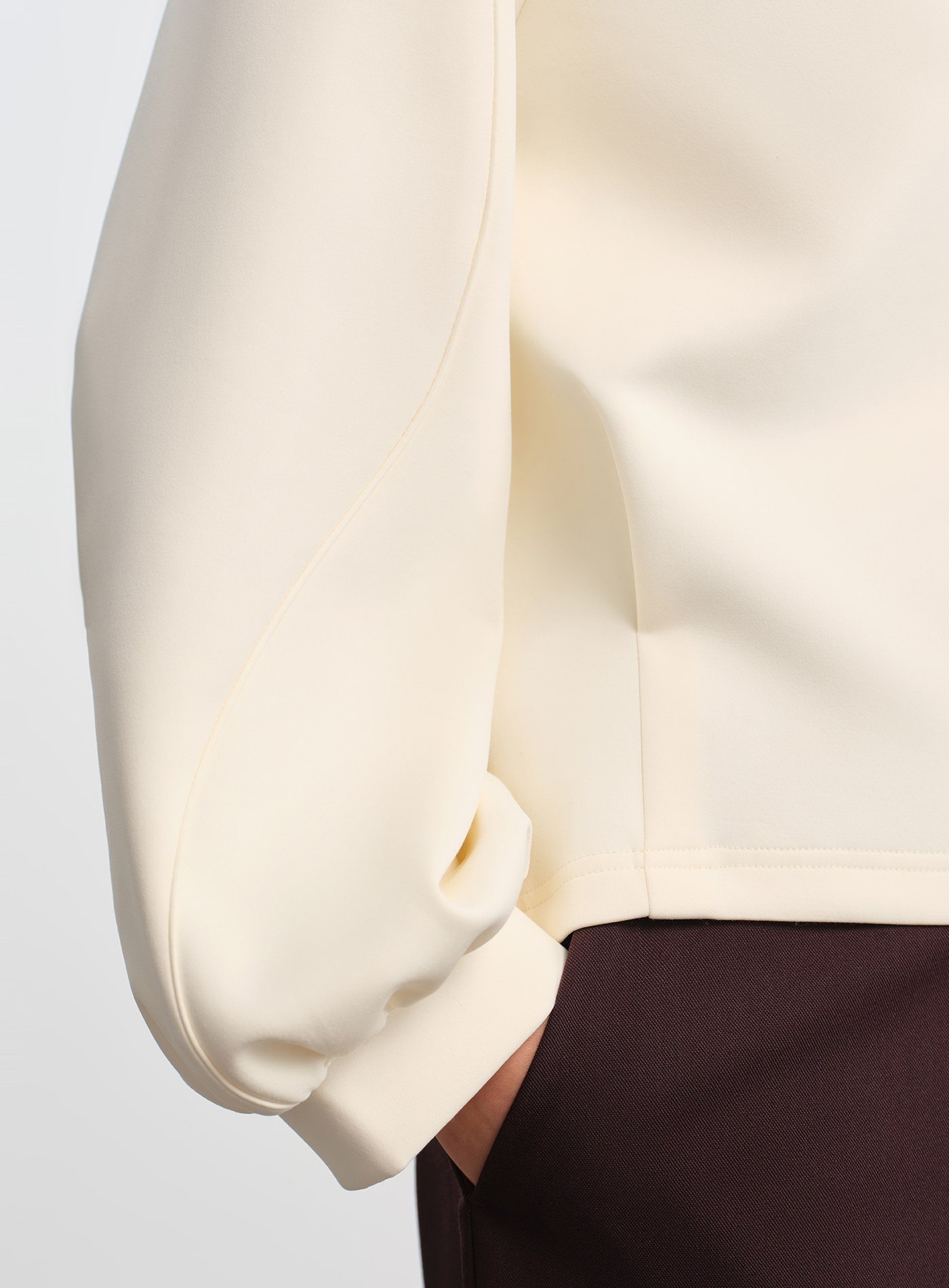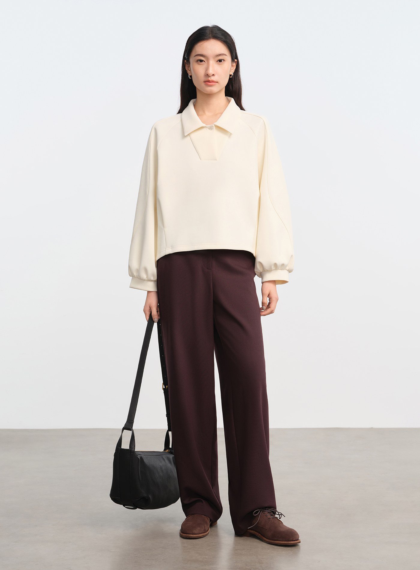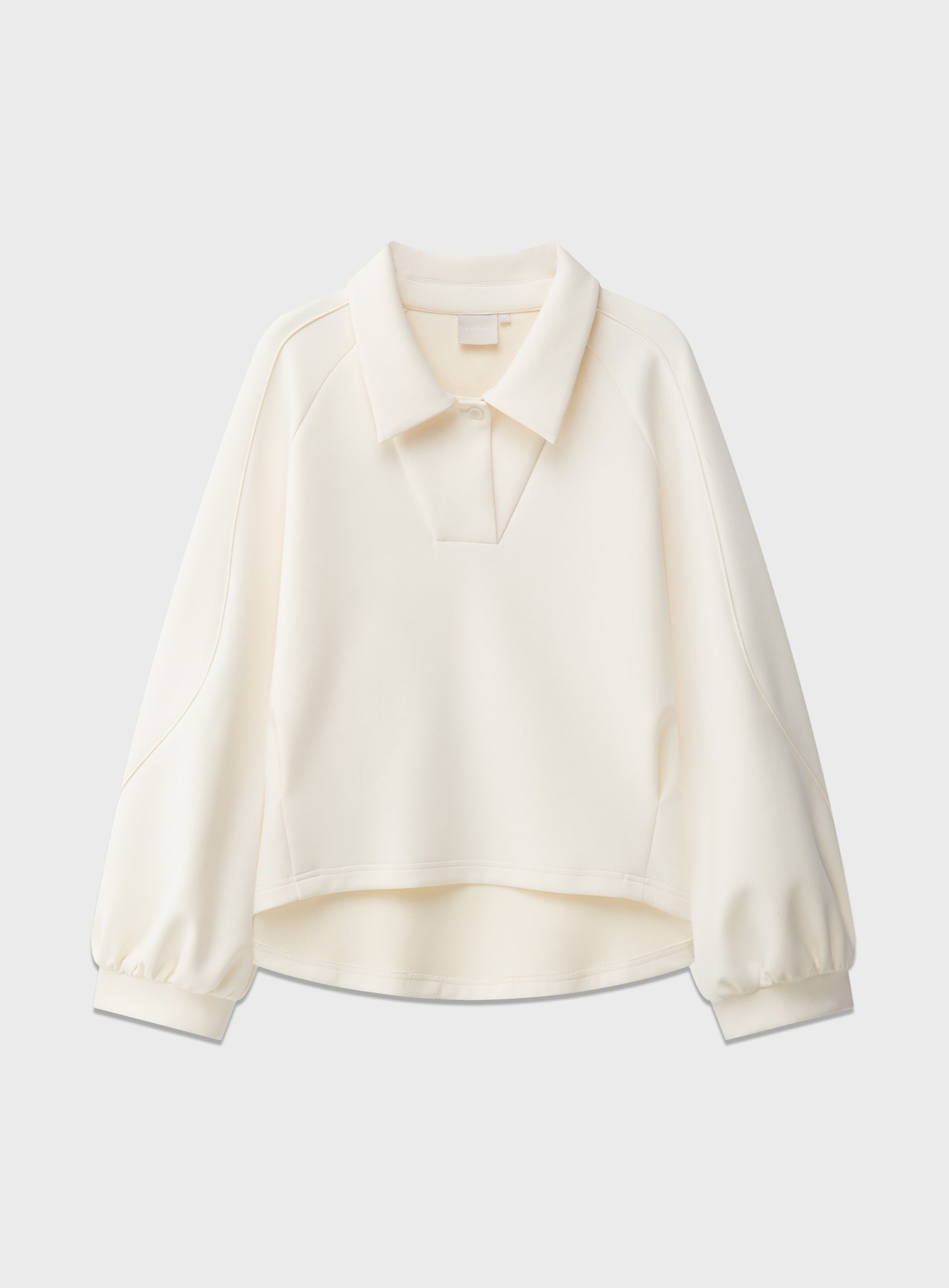 - 燈籠袖營造復古蓬鬆感,袖側白線延伸視覺