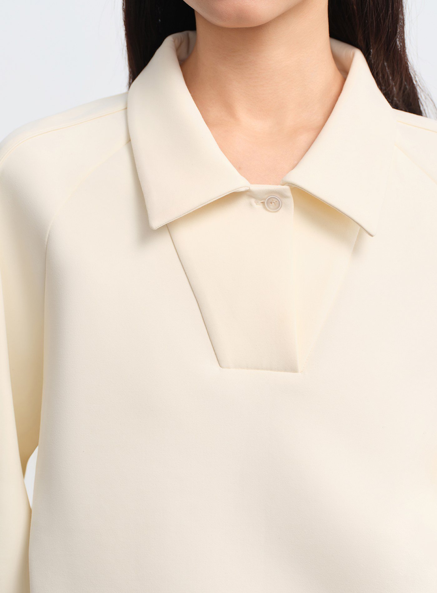 - 肩部韁繩與 Logo 刺繡,半開襟 POLO 領可調節開合