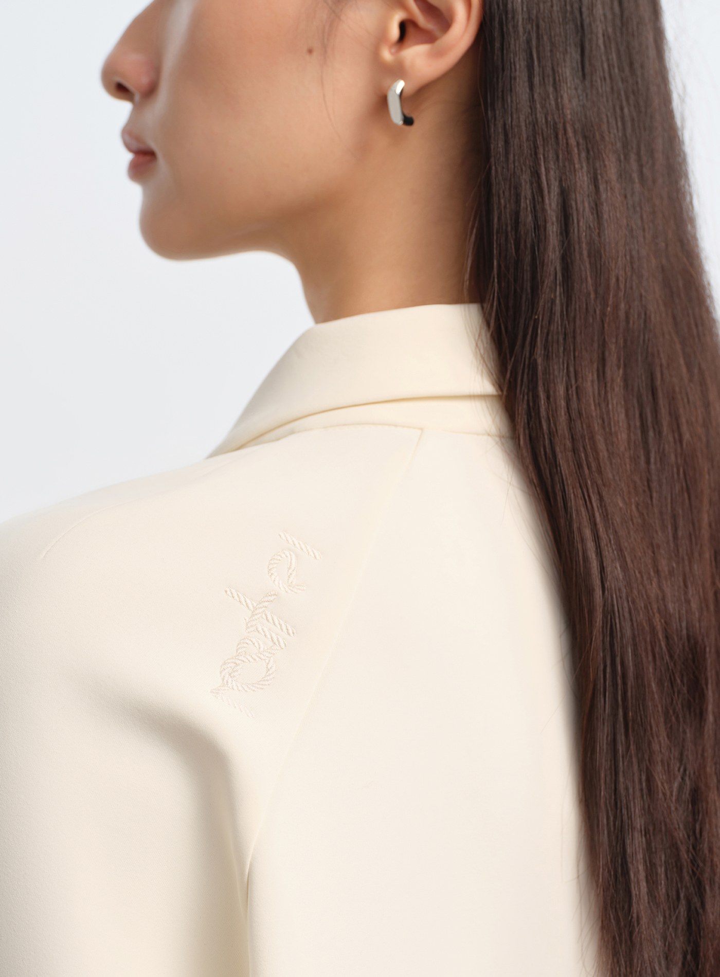 - 打造「直角肩」與「小鳥臂」,前短後長下擺行走有層次