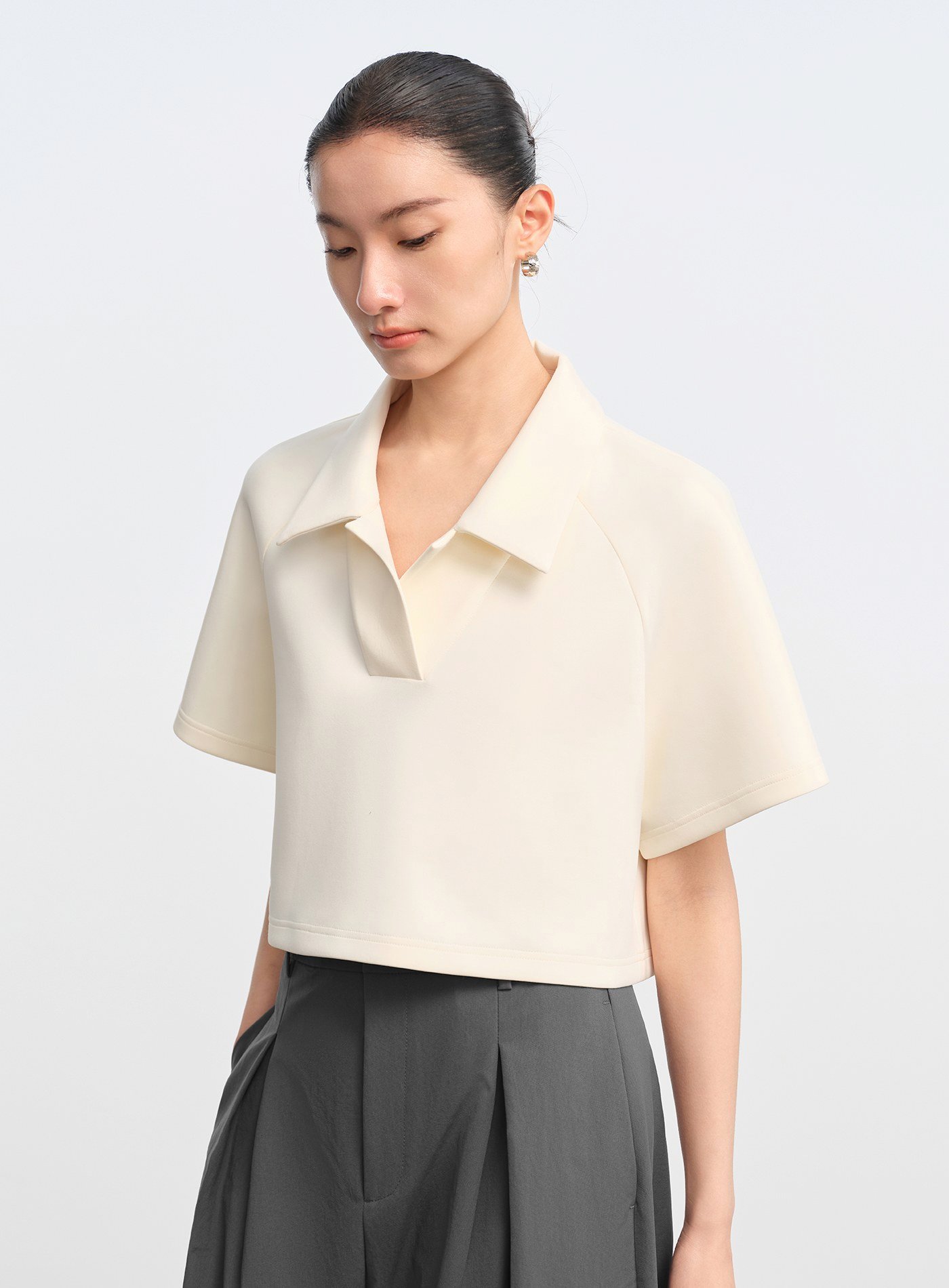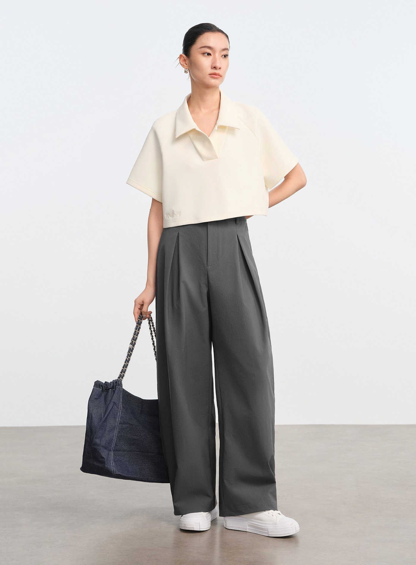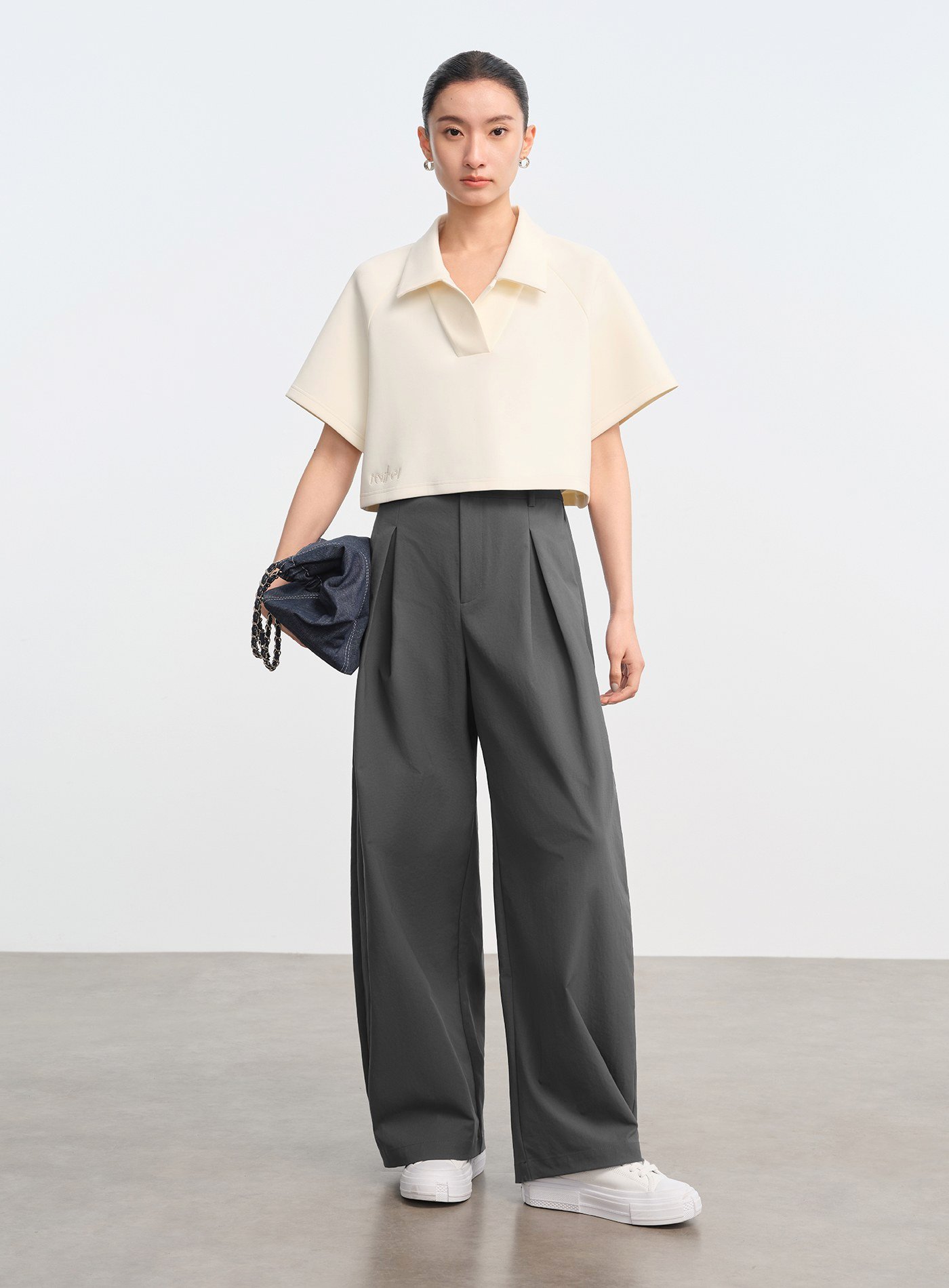 - 韁繩與 Logo 刺繡細節,POLO 領與短版高腰剪裁設計