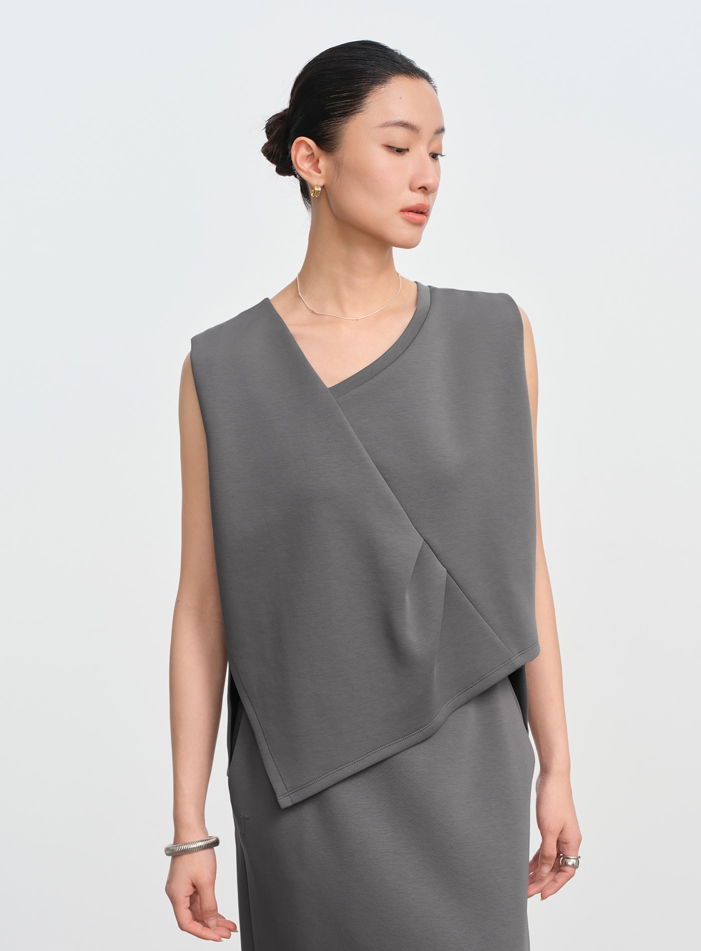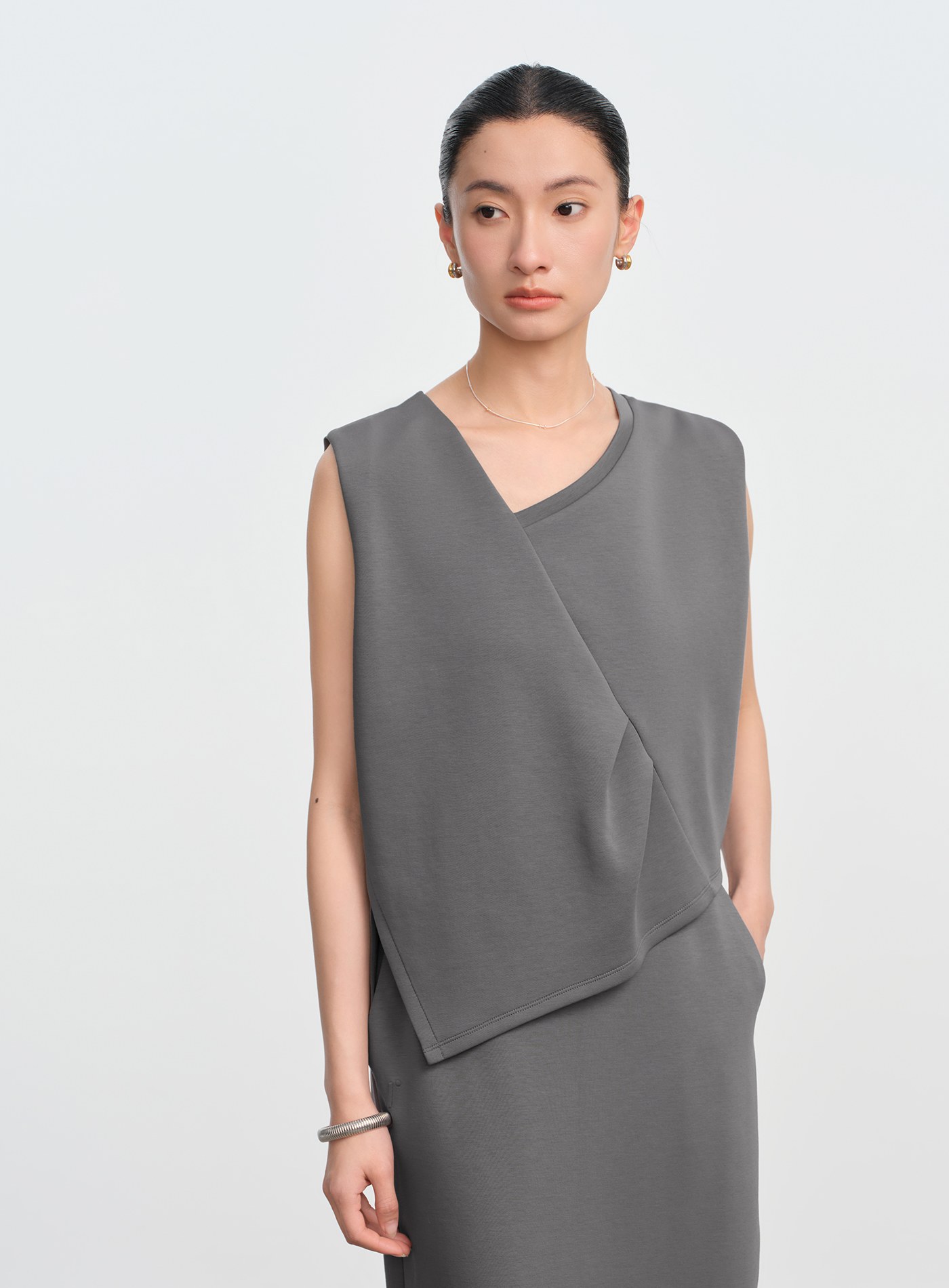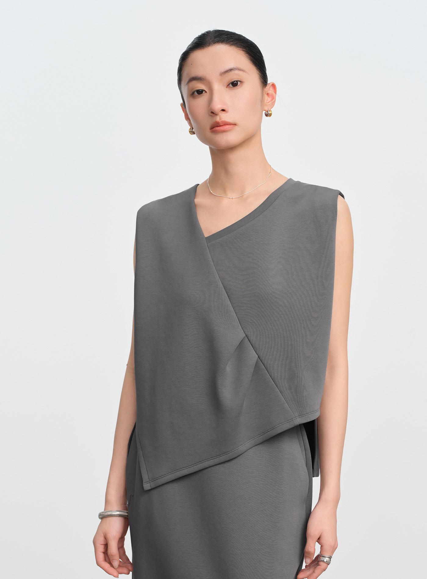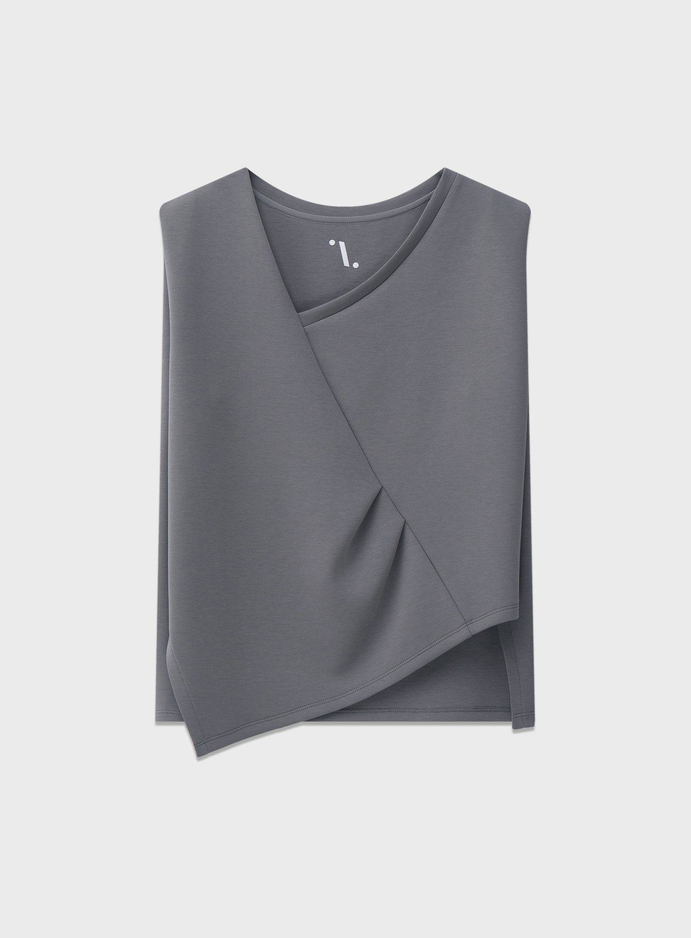 不對稱領彈力綁帶長袖襯衫$63 USD